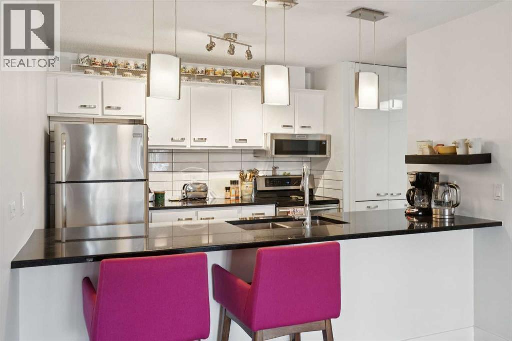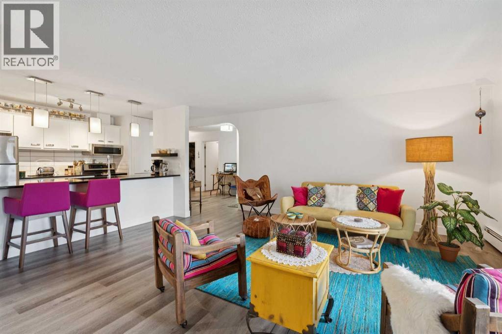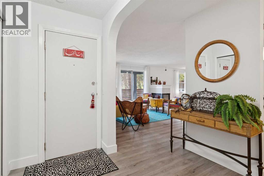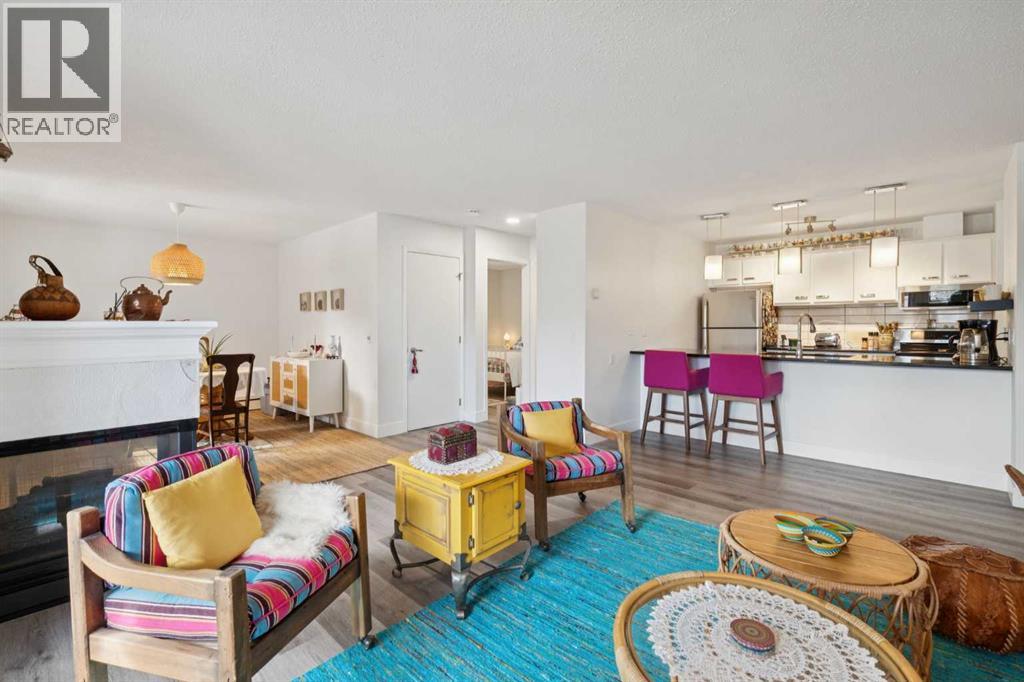 Welcome to this bright, expansive two bedroom condo in the heart of Marda Loop. Outside your door, the neighborhood delivers coffee shops, local restaurants, fitness studios, boutique shopping, and everyday conveniences along 33 and 34 Avenue SW. Enjoy quick access to River Park and Sandy Beach with off leash paths and bike routes, plus easy transit and a short drive to downtown and Mount Royal University. Inside, the home has been thoughtfully updated in recent years with light fixtures, luxury vinyl plank flooring, fresh paint and stainless steel appliances. Generous living and dining rooms are ideal for entertaining and are separated by a triple sided gas fireplace. The kitchen opens to the living area and features high gloss white cabinetry, granite counters, and a built in pantry. Enjoy a private south facing balcony off the living room, plus a second south facing balcony off the primary bedroom. The spacious primary offers a full wall of built in shelving and an updated 3 piece ensuite. The second bedroom includes a large walk in closet with custom organizers and is served by a 4 piece bath. All closets include upgraded built ins for maximum storage. Prefer a flex space instead of two bedrooms? The layout easily accommodates a home office, library, or lounge. A large in suite laundry room with full size stacked machines adds everyday convenience. This boutique 7 unit, self managed building offers peace of mind. This is the only residence on the main level and it enjoys both front and back entrances for easy access and privacy. One assigned parking stall and a separate storage unit are included. Please note: 18+ building. Do not miss this opportunity. Book your viewing today. (id:53676)