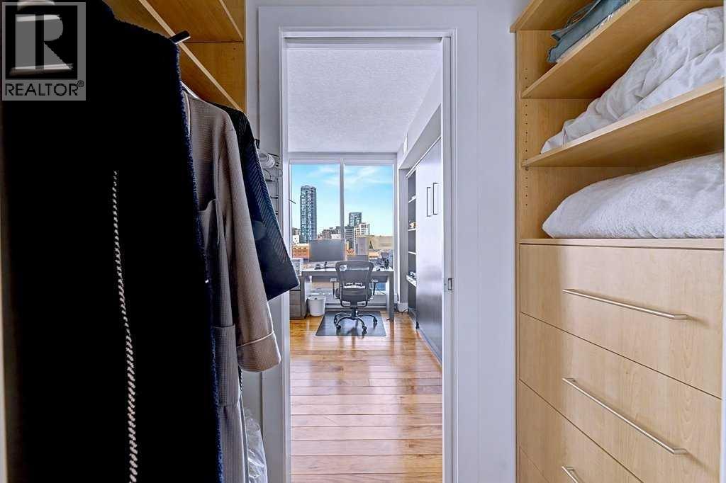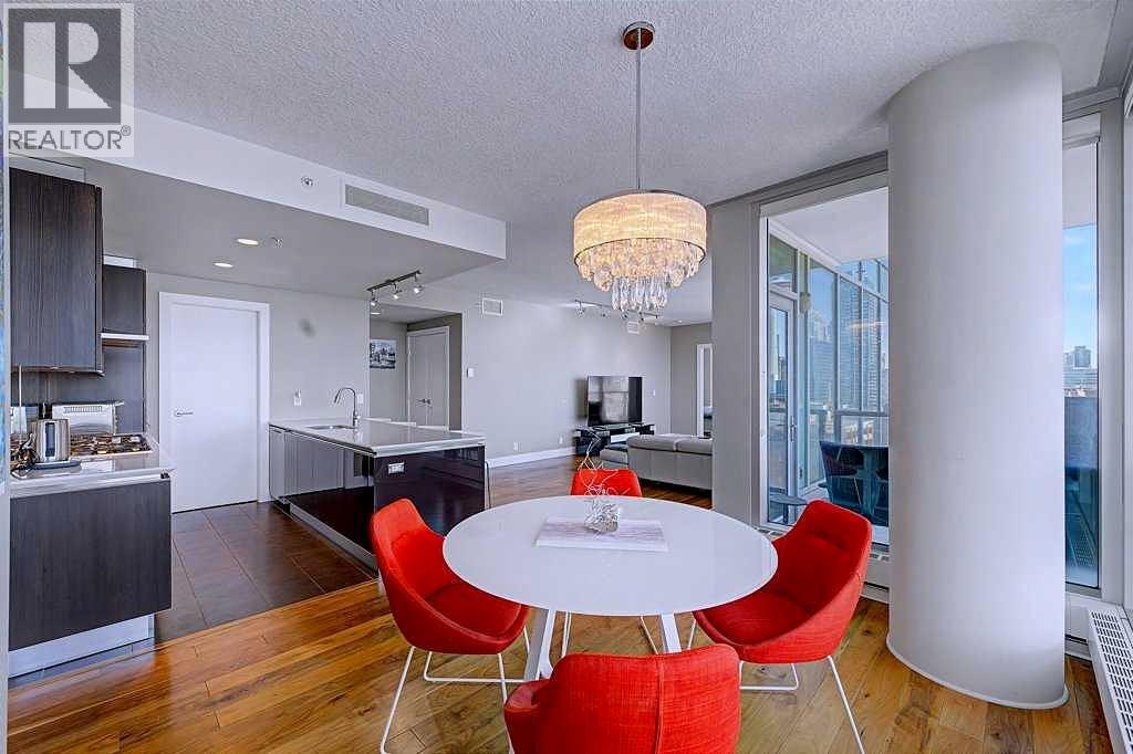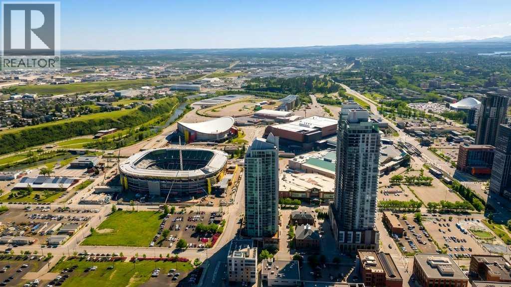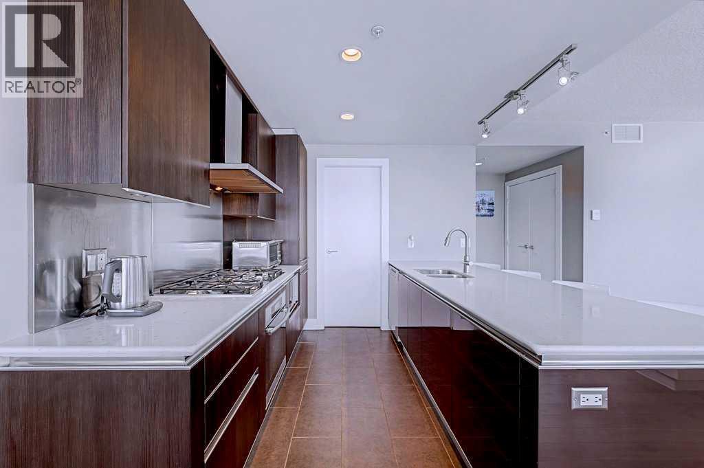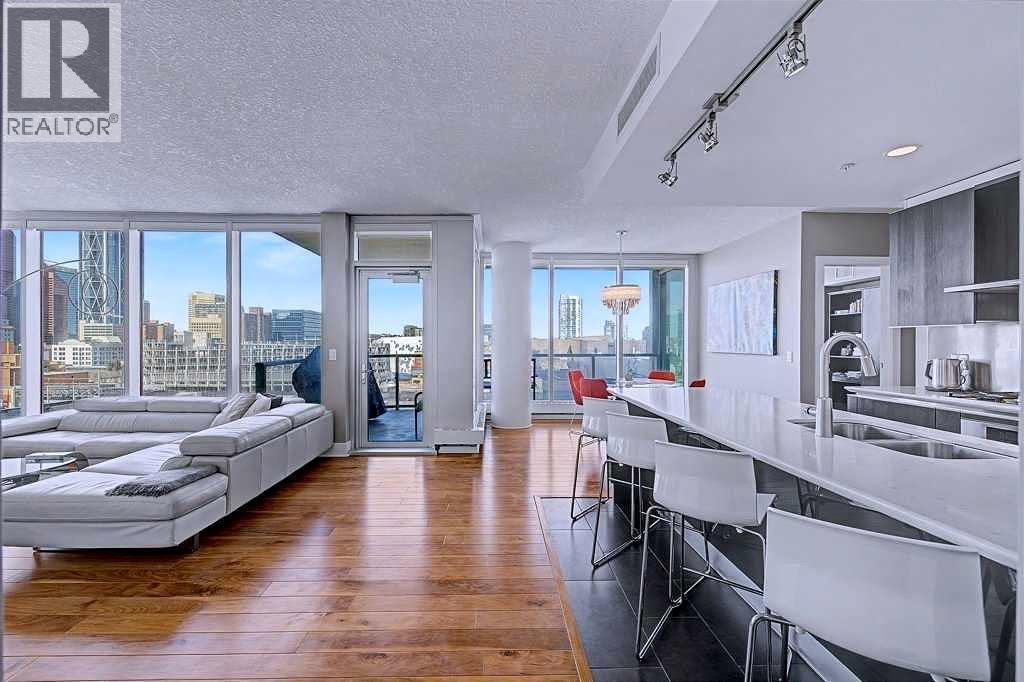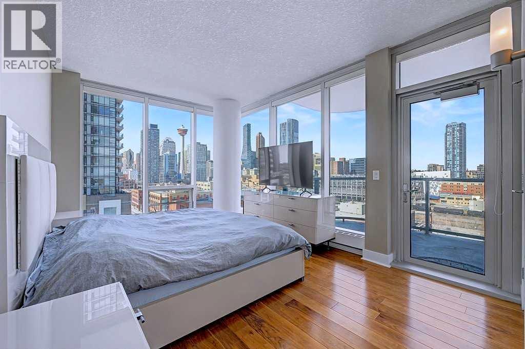 Welcome to Arriva, one of Calgary’s premier high-rise addresses. Prime corner location on the 10th floor with northwest exposure, this beautifully appointed residence offers over 1,200 square feet of refined urban living and spectacular downtown and city views. Offering 2 bedrooms, 2 full bathrooms, 2 titled underground parking stalls, assigned storage, and central air conditioning.The open-concept living, dining, and kitchen area is bright, spacious, and designed for comfortable everyday living and easy entertaining. Floor-to-ceiling windows make an immediate impression, flooding the home with natural light and showcasing the skyline from every room. Rich hardwood and tile add warmth and sophistication throughout.The contemporary Snaidero kitchen is both stylish and functional, featuring quartz counters, a large island, generous pantry space, and a premium Miele appliance package including a 5-burner gas cooktop. The primary bedroom offers excellent space, a custom walk-through closet, a 4-piece ensuite with separate shower and soaker tub, and access to one of two private balconies. The second bedroom is flexible and thoughtfully designed, ideal as a guest room, office, or both, complete with a built-in Murphy bed/storage dresser.With two separate balconies, a stunning lobby, full-time concierge/security, guest suites, and an outstanding location close to downtown, new convention center and arena, restaurants, fitness, and entertainment, this is an exceptional opportunity to own a beautifully finished home in one of Calgary’s most sought-after buildings. (id:53676)