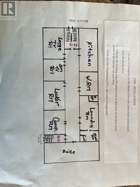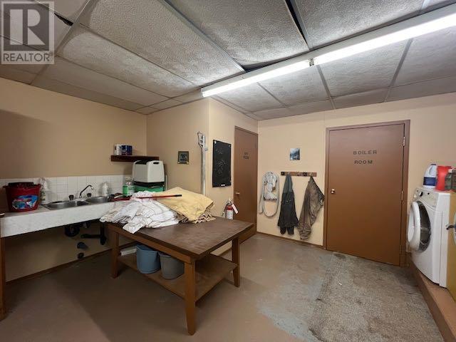 Discover a unique investment opportunity with this two-story rooming house, formerly a CN bunkhouse, on the south side of Wainwright. Situated on an expansive 100 ft X 566 ft parcel of land, this substantial property includes 49 individual rooms on 2 floors, each designed to accommodate tenants comfortably. Centrally located on each floor are shared washroom facilities, along with ample storage space. The third level houses a forced-air furnace and air conditioning system, ensuring consistent climate control for added tenant comfort. The lower level is thoughtfully designed with a communal kitchen, laundry facilities, 2 tv lounges, a secure locker storage area, an on-site office, and a self-contained two-bedroom manager's suite. With its size, layout, and existing infrastructure, this property presents excellent potential for continued use as a rooming house or reimagined for alternative residential or commercial purposes. A rare opportunity for savvy investors looking to tap into Wainwright's rental market. (id:53676)