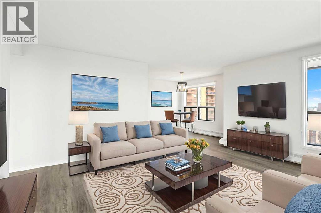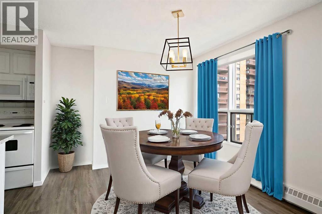 Welcome to this bright and spacious 928 sq. ft. condo, fully renovated in 2022–2023. Located on the 10th floor, this southeast CORNER unit features a large wrap-around balcony with stunning city views and includes a heated underground parking stall. The open-concept layout offers laminate flooring throughout, a modern kitchen with ample cabinetry and updated dishwasher, a roomy dining area, and a generous living space filled with natural light. The unit also includes in-suite laundry with newer washer and dryer, two well-separated bedrooms, and a 4-piece bathroom. This 18+ adult building offers excellent amenities including a welcoming lobby, parcel locker, social room with library and coffee station, and a fitness room. Condo fees conveniently include all utilities—electricity, heat, water, sewer, parking, and access to building facilities. Perfectly located at Macleod Trail and Southland Drive SW, you are steps from the C-Train, shopping, restaurants, and services, with quick access to Chinook Centre, South Leisure Centre, and the parks and pathways along the Elbow River and Glenmore Reservoir. This move-in ready home combines comfort, convenience, and style—check out the 3D tour and book your showing today! (id:53676)