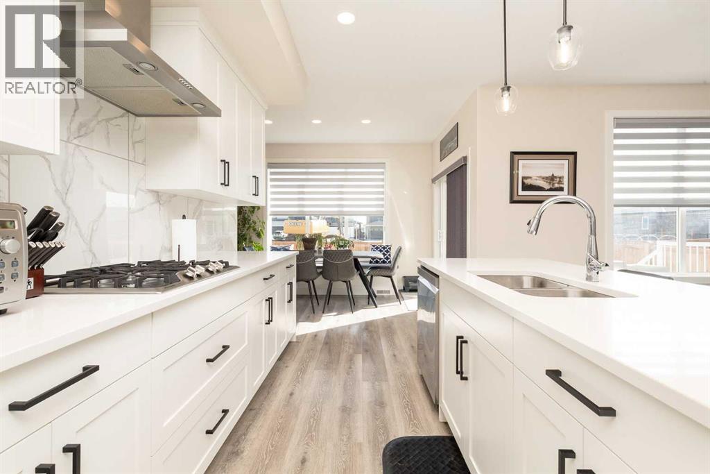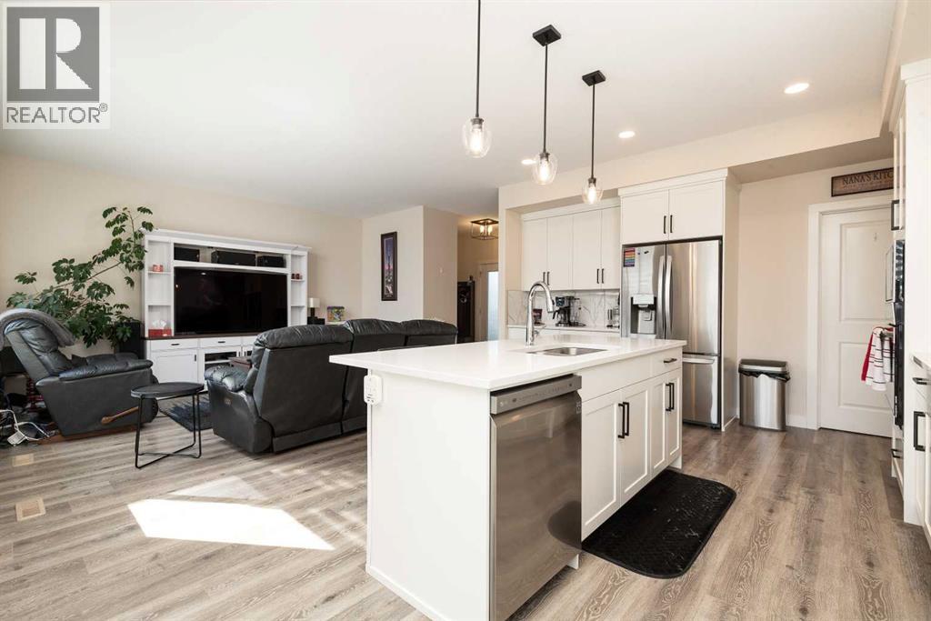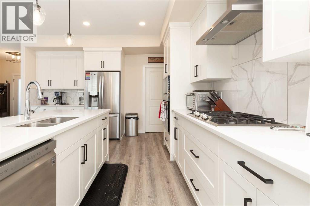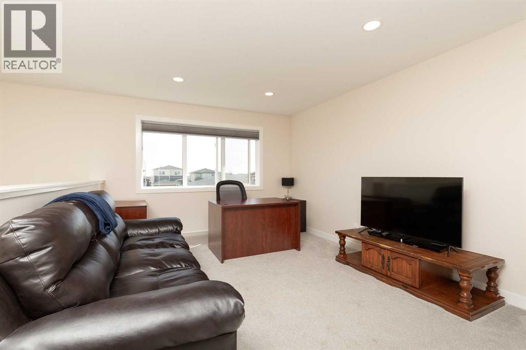 Welcome to 1009 Atlantic Lookout West. This Cedar Ridge Daisy model offers the space buyers are looking for with a rare triple garage and a fully finished home from top to bottom inside and out. The main floor features a bright open concept layout with a spacious kitchen, large dining area, comfortable living room, and welcoming entry. It is a great setup for both everyday living and entertaining guests. Upstairs you will find a beautiful Master Bedroom retreat complete with a dual vanity ensuite and a large walk in closet. Two additional bedrooms, a full bathroom, and a generous loft style bonus room create the perfect upper level for families who want extra living space. The basement has now been fully developed and adds even more value with an additional bedroom, another full bathroom, and a comfortable family room that works perfectly for movie nights, teenagers, or visiting guests. Outside is where this property really stands out. The yard is fully fenced and landscaped with underground sprinklers already installed. The deck creates an excellent entertaining space and makes the backyard ready to enjoy from day one. A nice bonus feature is the installed Home One LED soffit lighting system which lets you customize exterior lighting year round. Whether it is game night, holidays, or special occasions, this feature makes the home stand out on the street and adds a fun personality to the property. Watch the neighborhood light up as your team scores! Located in the Crossings community, you are close to shopping, restaurants, schools, parks, and the ATB Centre. Homes with this combination of triple garage, finished basement, and completed yard rarely come available in this area. (id:53676)