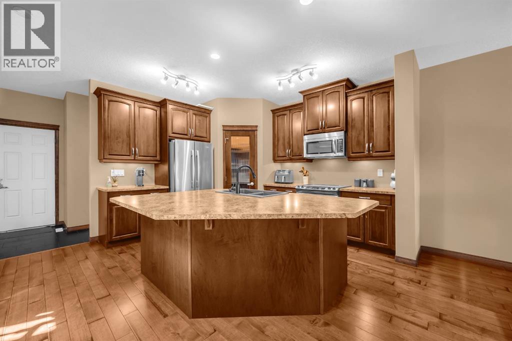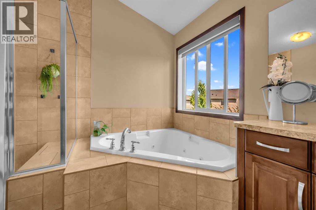 Welcome to this impeccably maintained 4 bed / 3.5 bath fully finished home, located in the heart of Kings Heights— pride of ownership is definitely evident! From the moment you step inside, you’ll notice the attention to detail and care that’s gone into every inch of this home. The main level shines with a bright, open-concept layout featuring a large kitchen island, ample cabinetry, stainless steel appliances, walk-in pantry, and hardwood flooring throughout. Cozy up around the stone gas fireplace with custom built-ins, or entertain effortlessly in the spacious living and dining areas. Pot lights and thoughtful design create a warm and welcoming atmosphere. Step outside to the sunny, beautifully landscaped backyard where you’ll find a custom partially covered deck, mature greenery, and plenty of space to relax or entertain. Stay comfortable year-round with central air conditioning—a must-have on those hot summer days! Upstairs, the floating open-riser staircase leads to a thoughtfully designed upper level. The primary retreat is a true highlight, featuring vaulted 9’9” ceilings, a generous walk-in closet, and a 4-piece ensuite complete with a tiled shower and deep soaker jet tub. Two additional spacious bedrooms are located near the second full bathroom, while the bonus room boasts soaring 10’6” vaulted ceilings and is perfect for relaxing or gathering. An upstairs laundry room adds everyday convenience. The professionally finished basement is ideal for movie nights or hosting guests. Enjoy the theatre-style family room with surround sound, an electric fireplace, custom built-ins, and a bar setup. The fourth bedroom features its own ensuite with a tiled shower, and the furnace/storage room offers additional space and functionality. The basement ceiling has been soundproofed with insulation for added comfort and privacy. The oversized garage is designed with efficiency in mind, offering custom hanging storage. Prime location, thoughtful upgrades, and meticulo us maintenance throughout. Homes like this are rare—schedule your showing today! (id:53676)
