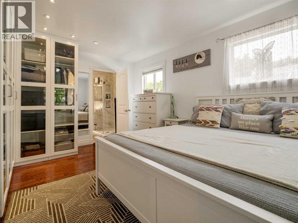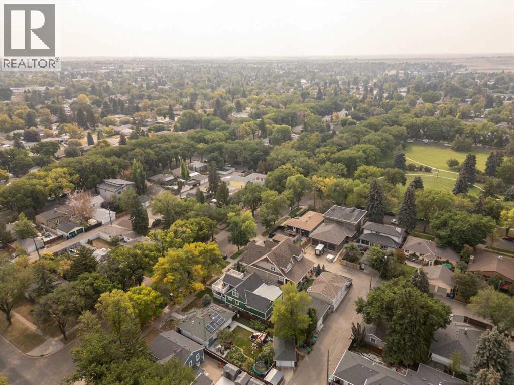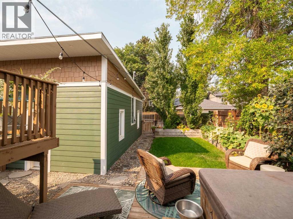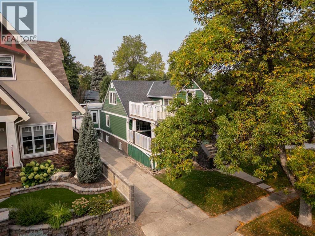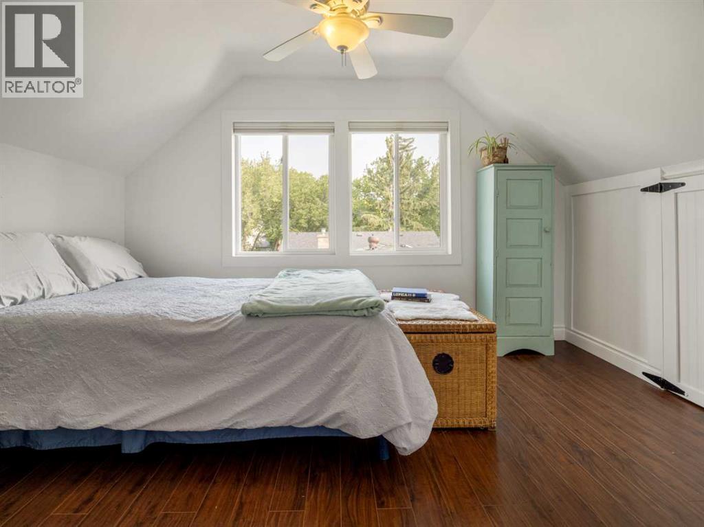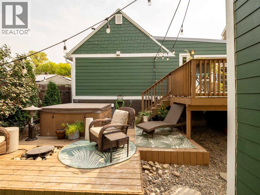 Nestled in a picturesque neighborhood, this stunning 1.5 storey character home offers the perfect blend of modern updates and timeless charm. Located just minutes from the hospital and close to Gyro Park, this home sits on a beautiful tree-lined street, offering a serene and welcoming atmosphere. Step inside to discover a meticulously renovated interior featuring character ceilings, stunning hardwood flooring, and elegant wainscoting. The open-concept layout is perfect for entertaining, boasting a spacious dining area with vaulted ceilings and skylights. The gourmet kitchen is a chef’s dream, featuring granite countertops, a large island, updated cabinetry, and two pantries. The main floor also includes a luxurious primary bedroom with a five-piece ensuite, featuring a soaker tub and a curved wall for added elegance. Upstairs, you’ll find a cozy sitting area, two additional bedrooms, and a three-piece bathroom. The beautifully finished basement offers a comfortable family room with pot lights, a gym area, and a four-piece bath with a jetted tub. Additional features include new electrical, high-efficiency furnace, hot water on demand, and underground sprinklers. Outside, enjoy a spacious rear deck perfect for outdoor living, mature landscaping, and a charming covered front porch. The property also features a detached garage with Hardy Board siding and a long driveway. This home truly offers a blend of comfort, style, and convenience. Don’t miss the opportunity to make it yours! (id:53676)