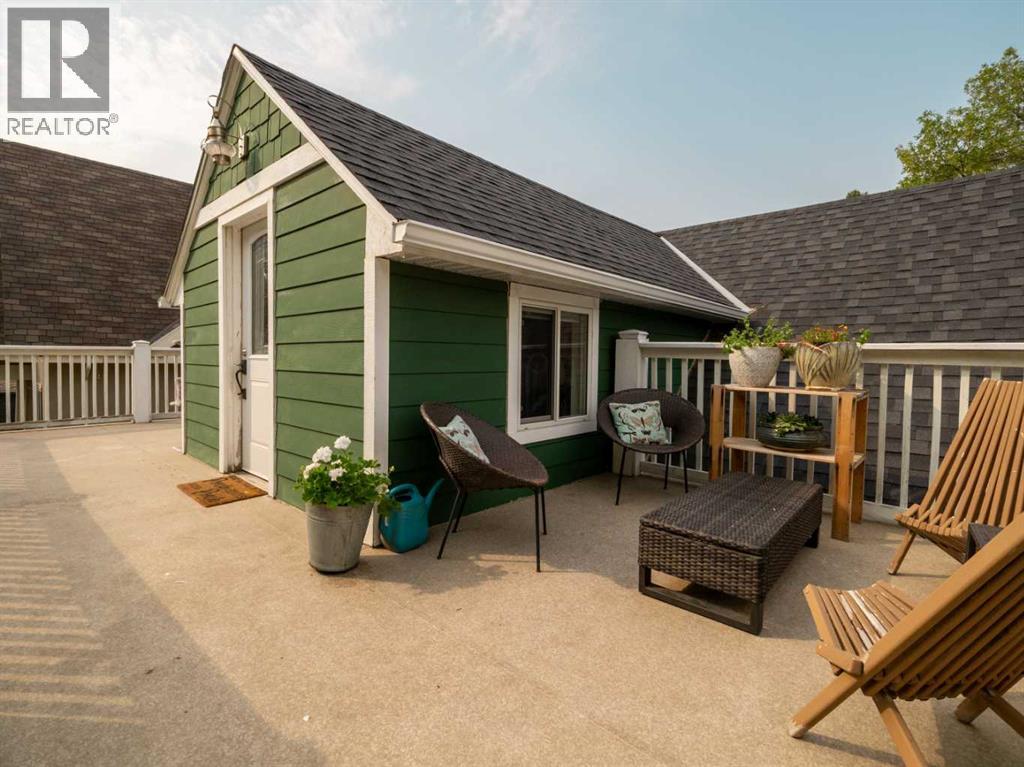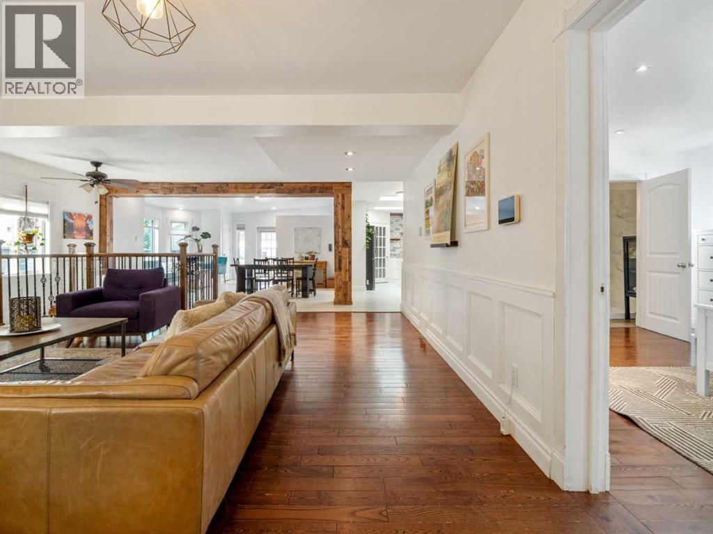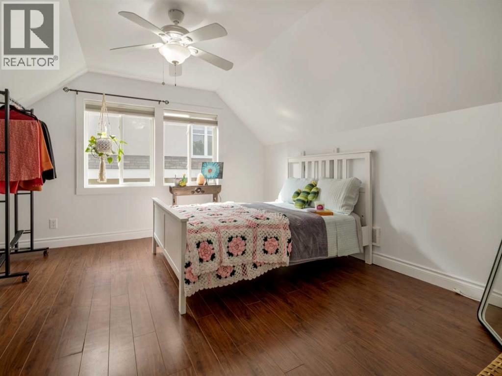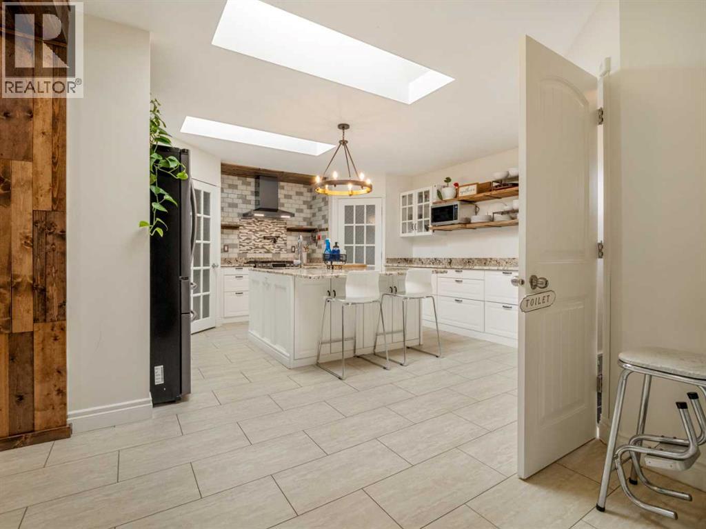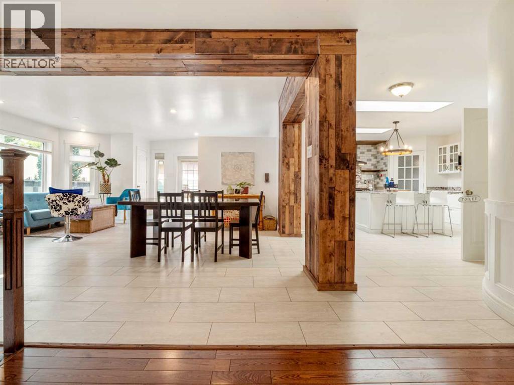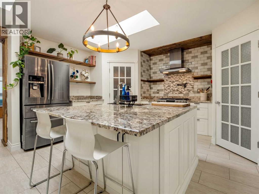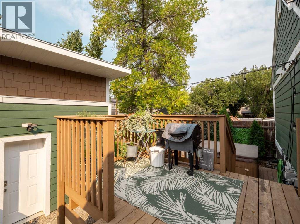 Nestled in a picturesque neighborhood, this stunning 1.5 storey character home offers the perfect blend of modern updates and timeless charm. Located just minutes from the hospital and close to Gyro Park, this home sits on a beautiful tree-lined street, offering a serene and welcoming atmosphere. Step inside to discover a meticulously renovated interior featuring character ceilings, stunning hardwood flooring, and elegant wainscoting. The open-concept layout is perfect for entertaining, boasting a spacious dining area with vaulted ceilings and skylights. The gourmet kitchen is a chef’s dream, featuring granite countertops, a large island, updated cabinetry, and two pantries. The main floor also includes a luxurious primary bedroom with a five-piece ensuite, featuring a soaker tub and a curved wall for added elegance. Upstairs, you’ll find a cozy sitting area, two additional bedrooms, and a three-piece bathroom. The beautifully finished basement offers a comfortable family room with pot lights, a gym area, and a four-piece bath with a jetted tub. Additional features include new electrical, high-efficiency furnace, hot water on demand, and underground sprinklers. Outside, enjoy a spacious rear deck perfect for outdoor living, mature landscaping, and a charming covered front porch. The property also features a detached garage with Hardy Board siding and a long driveway. This home truly offers a blend of comfort, style, and convenience. Don’t miss the opportunity to make it yours! (id:53676)