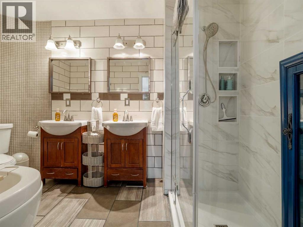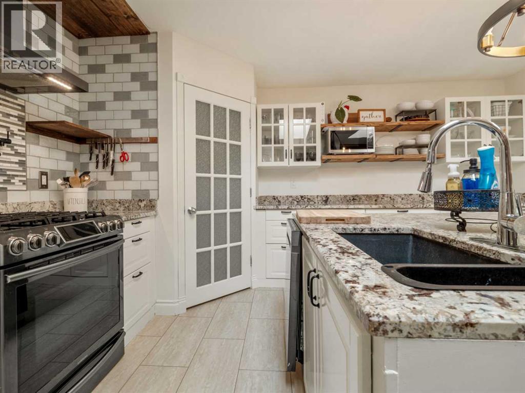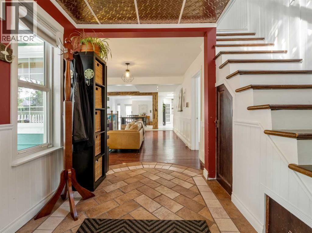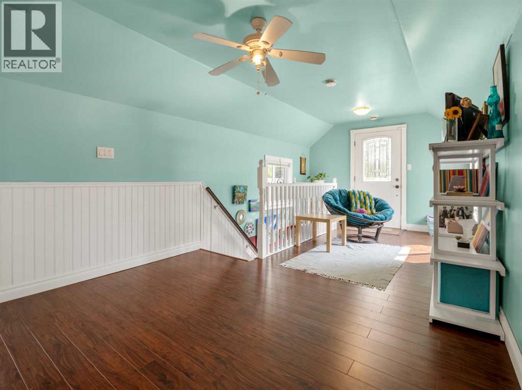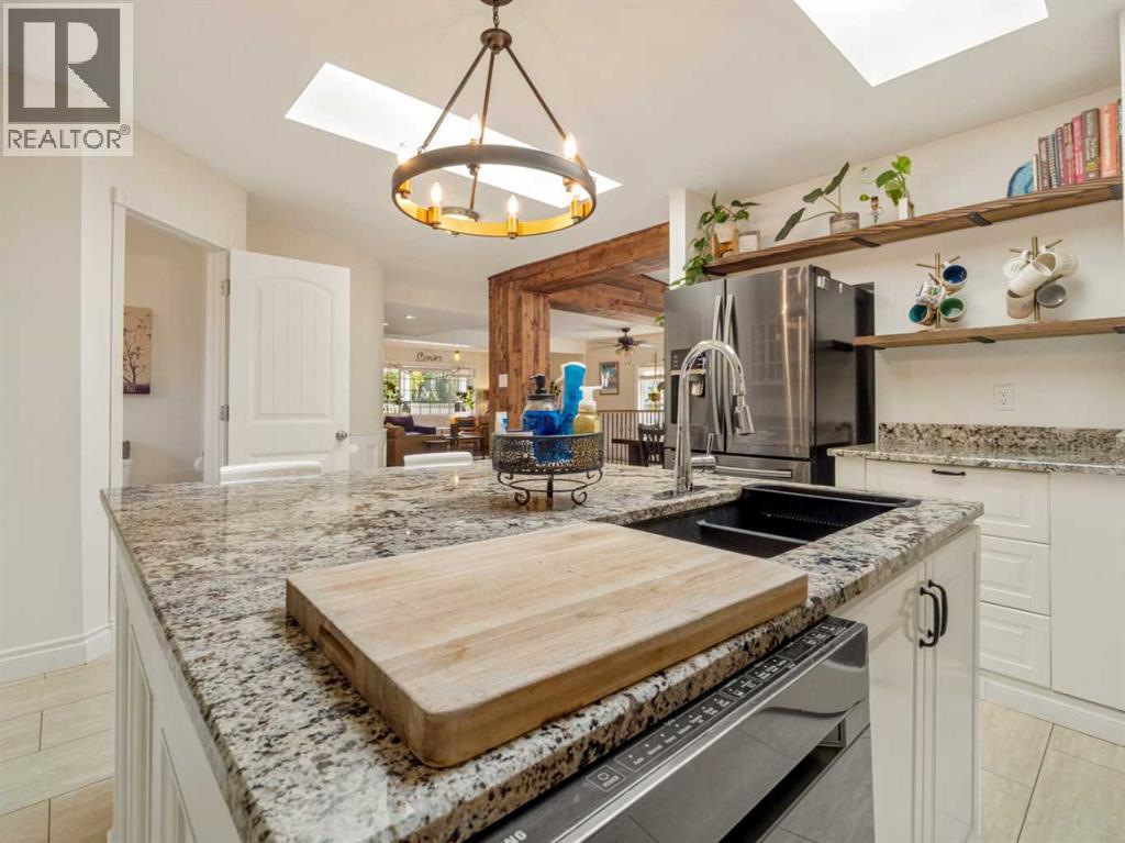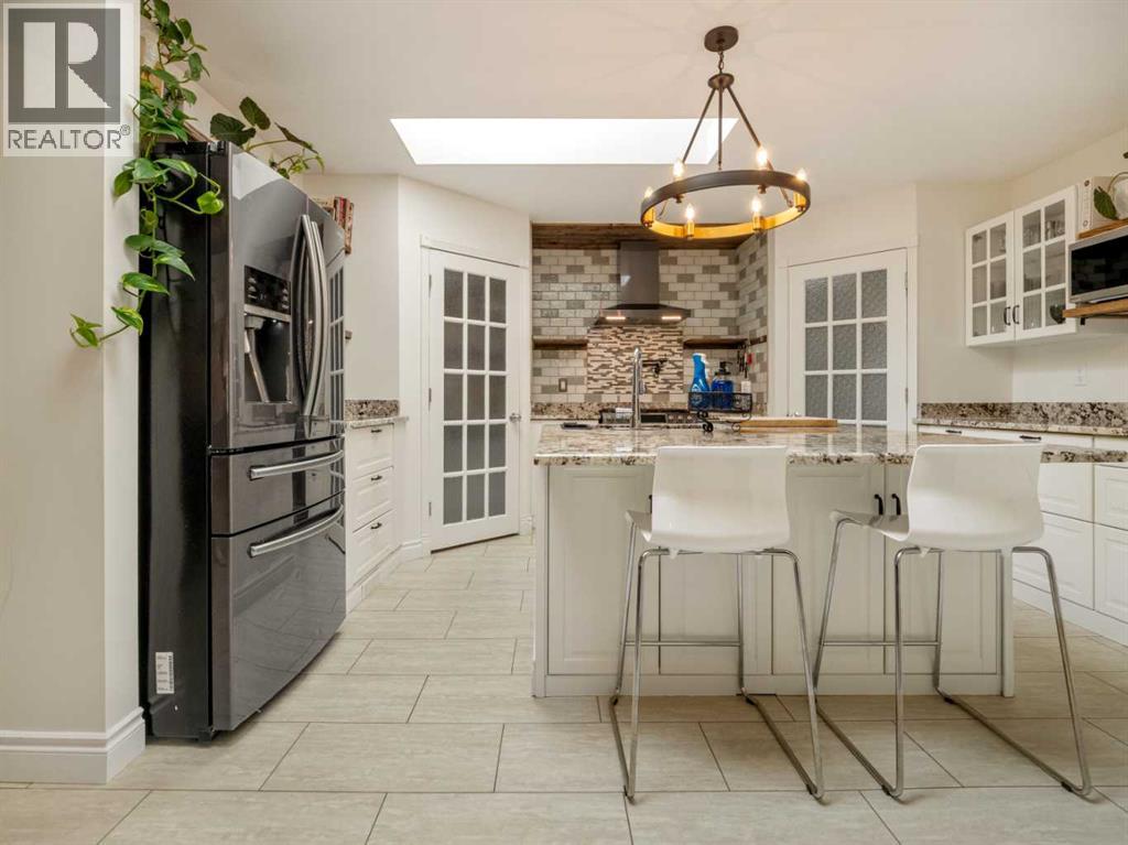 Nestled in a picturesque neighborhood, this stunning 1.5 storey character home offers the perfect blend of modern updates and timeless charm. Located just minutes from the hospital and close to Gyro Park, this home sits on a beautiful tree-lined street, offering a serene and welcoming atmosphere. Step inside to discover a meticulously renovated interior featuring character ceilings, stunning hardwood flooring, and elegant wainscoting. The open-concept layout is perfect for entertaining, boasting a spacious dining area with vaulted ceilings and skylights. The gourmet kitchen is a chef’s dream, featuring granite countertops, a large island, updated cabinetry, and two pantries. The main floor also includes a luxurious primary bedroom with a five-piece ensuite, featuring a soaker tub and a curved wall for added elegance. Upstairs, you’ll find a cozy sitting area, two additional bedrooms, and a three-piece bathroom. The beautifully finished basement offers a comfortable family room with pot lights, a gym area, and a four-piece bath with a jetted tub. Additional features include new electrical, high-efficiency furnace, hot water on demand, and underground sprinklers. Outside, enjoy a spacious rear deck perfect for outdoor living, mature landscaping, and a charming covered front porch. The property also features a detached garage with Hardy Board siding and a long driveway. This home truly offers a blend of comfort, style, and convenience. Don’t miss the opportunity to make it yours! (id:53676)