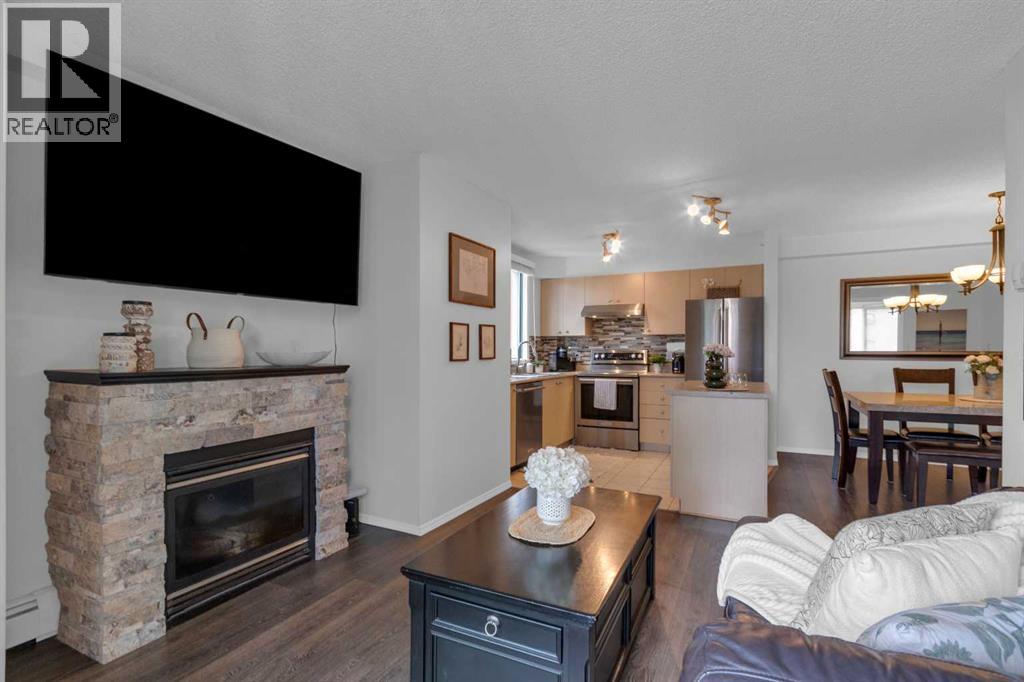 Welcome home to the best priced, 2 bedroom condo in desirable TARJAN PLACE - ALL UTILITIES INCLUDED in your condo fee! This bright END UNIT enjoys north, east & south exposure—so you can enjoy sunrise morning coffee AND sunny afternoons on your balcony with BBQ gas hookup, yes please! Packed with upgrades you’ll love the easy-care vinyl plank flooring, cozy gas fireplace and roomy kitchen with newer KITCHEN AID, STAINLESS STEEL appliances and convenient island for extra prep space. Both bedrooms are well-sized, the 4-pc bath is tidy and functional, and there’s FULL SIZED, in-suite laundry for the win. The building itself adds to your comfort with the convenience of a full-time concierge and the security of a heated underground parking stall. You'll also love the secured package delivery room, bike storage and fitness centre. Step outside and you’re just minutes from the C-Train, Bow River pathways, coffee shops/restaurants and all the energy of Calgary’s downtown core. Additional highlights include a freshly renovated lobby, low condo fees and the cherry on top - FRONT ROW SEATING on your own balcony for the Calgary Stampede Parade every July!Whether you’re starting out, downsizing, or simply looking for a place with personality and warmth in a premier west-end location boasting quick access in/out of downtown, this fantastic condo is ready to welcome you home. Don't miss the virtual tour under the film reel in the top left corner - call your favourite Realtor and book your private viewing today! (id:53676)