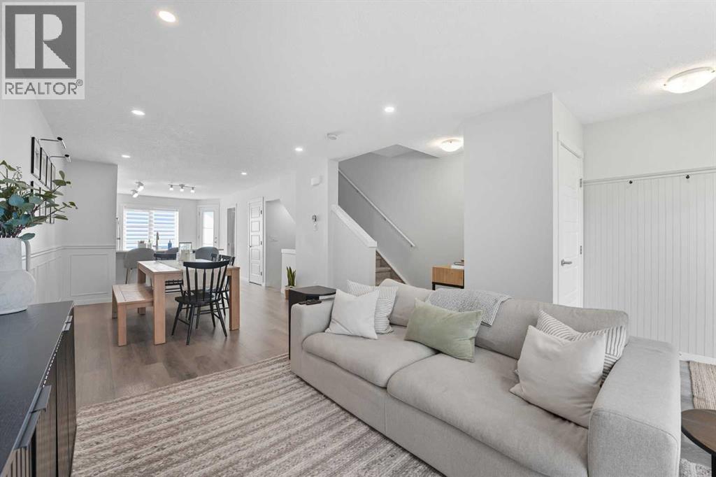 Welcome to 102-474 Seton Circle Se. This beautifully designed 2-bedroom, 2.5-bath townhouse offers modern living at its finest, perfectly located just steps to the playground, dining, entertainment, and more.Step inside to an open-concept main floor featuring neutral-toned flooring, a bright and airy living space, and a chef-inspired kitchen complete with crisp white quartz countertops, sleek cabinetry, and a large island — perfect for entertaining.The spacious primary suite includes a private ensuite for your comfort and convenience, while a second bedroom and additional full bathroom provide room for family or guests.Upstairs, a stunning third-level loft awaits — ideal as a lounge, home office, or bonus space — featuring a wet bar and direct access to a private rooftop patio with unobstructed mountain views. Whether it's morning coffee or evening cocktails, this is the ultimate place to unwind. During the summertime heat, let your A/C keep the house cool for comfort and enjoy having a tandem 2 car garage to protect your vehicle from the elements.Don’t miss out on this opportunity to call this home. (id:53676)