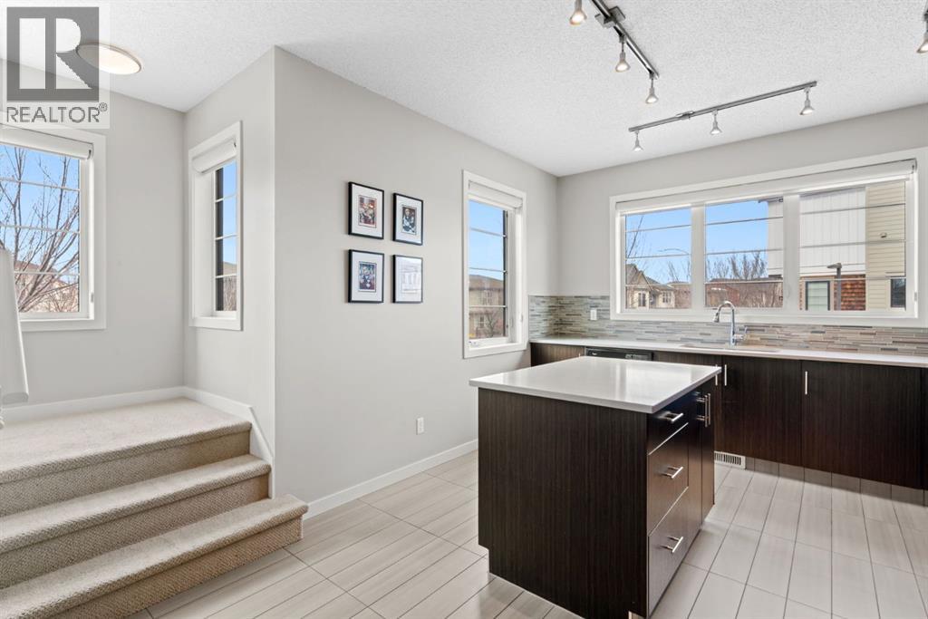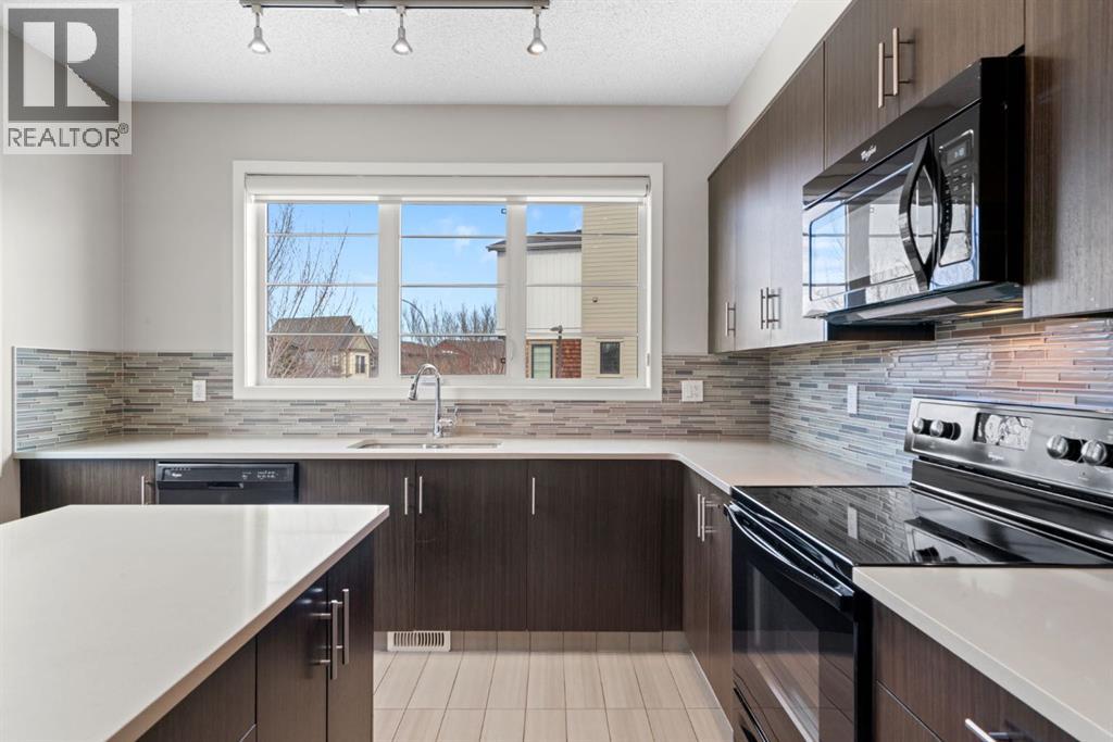 Experience the perfect blend of modern style and functional design at 102 Walden Circle SE, a stunning end-unit townhome that offers the privacy and natural light of a detached home with the convenience of low-maintenance living. This residence welcomes you with an open-concept main floor defined by 9' ceilings and extra side windows that bathe the kitchen and spacious living area in soft, natural sunlight. Whether you are hosting friends around the island with quartz countertops or enjoying a quiet evening on the balcony makes daily living effortless. The lower level provides incredible utility with an oversized double-car tandem garage, offering plenty of space for two vehicles or extra room for a workshop and seasonal storage, as well as a full sized driveway. Upstairs, you find the primary with ensuite and generous walk-in closet, complemented by well-appointed additional 2 bedrooms. Ideally situated just steps from the Gates of Walden shopping district, pathways, parks and offering rapid access to Macleod and Stoney Trails, this end-unit gem is a rare find for those seeking a harmonious, move-in-ready lifestyle. (id:53676)