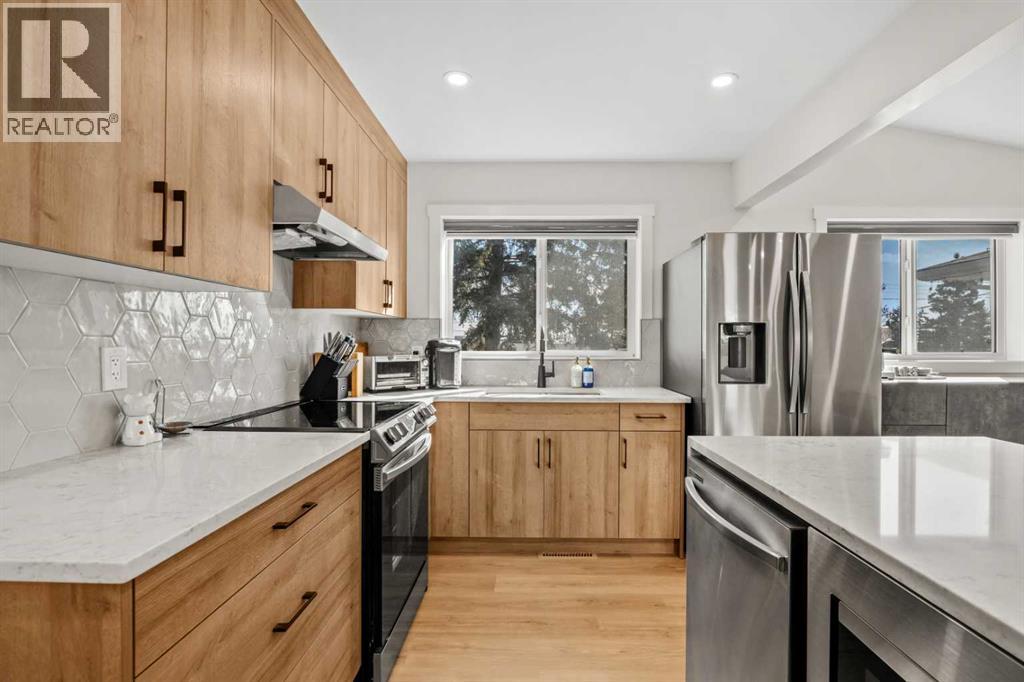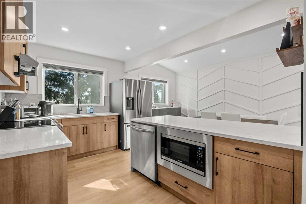 Welcome to this fully renovated bungalow in the established and highly desirable community of Southwood, offering modern design, thoughtful upgrades, and a functional layout perfect for today’s lifestyle.Step inside to a bright and inviting main floor featuring wide-plank flooring, clean lines, and a contemporary aesthetic throughout. The spacious living room is filled with natural light and flows seamlessly into the dining area, creating an ideal space for both everyday living and entertaining. The beautifully updated kitchen showcases sleek cabinetry, quartz countertops, stainless steel appliances, and a stylish backsplash, all designed with both form and function in mind.The main level offers two well-appointed bedrooms, including a comfortable primary retreat complete with its own private ensuite, along with an additional full bathroom for added convenience.Downstairs, the fully developed basement expands your living space with a large recreation area perfect for movie nights or gatherings, complete with a custom wet bar that adds a great entertaining element. This level also features two additional bedrooms, a full bathroom, and a dedicated laundry area, making it ideal for families, guests, or a home office setup.Outside, the property offers a spacious yard with plenty of room to enjoy outdoor living, along with a detached garage and additional parking.Located in Southwood, you’ll love the convenience of being close to schools, parks, transit, and major roadways, as well as quick access to shopping and amenities. This is a fantastic opportunity to own a move-in-ready home in a mature, well-connected community. (id:53676)