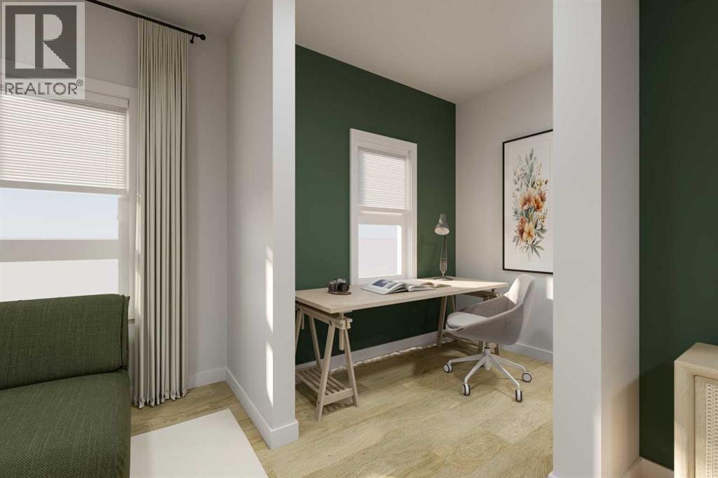 MAYBE IT’S THE SOUTHERN LIGHT—OR HOW THE KITCHEN FLOWS INTO THE REAR PATIO—BUT EVERYTHING ABOUT THIS HOME JUST WORKS. The Magnolia model at Lavender Hill in Rockland Park delivers a smart layout, timeless finishes, and a sense of space that fits real life.The curb appeal is crisp and modern, with a SOUTH-FACING FRONT that keeps the main living areas bright throughout the day. Built into the natural slope of the hill, the design gives you a ground-level TANDEM DOUBLE GARAGE below and a second floor LIVING AREA THAT WALKS-OUT TO GRADE—something rarely found in a townhome. Inside, warm flooring and a neutral palette keep the focus on light and flow. The PRIVATE FRONT ENTRY—rare for attached homes—sets the tone for a plan that values function as much as style.On the main floor, the living, dining, and kitchen connect naturally. Toasted-almond LVP runs wall to wall, grounding the space in a calm, durable texture. The kitchen pairs designer QUARTZ COUNTERS with a modern subway tile backsplash, and a CENTRAL ISLAND that works as prep space, command centre, and casual dining spot. A rear entry door leads directly to BACK PATIO—perfect for grilling, morning coffee, or catching the evening light. Between the living room and stairs, a wide pocket of space adds a smart spot for a desk, bookshelf, or bar cart without interrupting flow.Upstairs, three bedrooms maximize privacy and efficiency. The PRIMARY BEDROOM includes an ENSUITE and WALK-IN CLOSET, while two secondary bedrooms, a main bath, and UPPER-FLOOR LAUNDRY handle the rest of daily life without wasted steps.ROCKLAND PARK amplifies it all: a northwest community designed around connection, outdoor living, and everyday convenience. Scenic pathways link to parks and playgrounds, while plans for a RESIDENTS-ONLY CLUBHOUSE include an OUTDOOR POOL, FITNESS CENTRE, and courts. With mountain views to the west and quick access to both Crowchild and Stoney Trail, it’s a community that balances retreat and reach in equal me asure.Possession is ready for the end of November—a fresh start, in a brand-new home that makes practical look good. Book your showing today! • PLEASE NOTE: Photos are Virtual Renderings – fit and finish may differ on finished spec home. Interior selections and floorplans shown in photos. (id:53676)