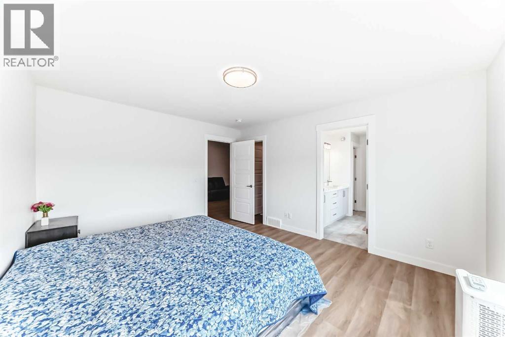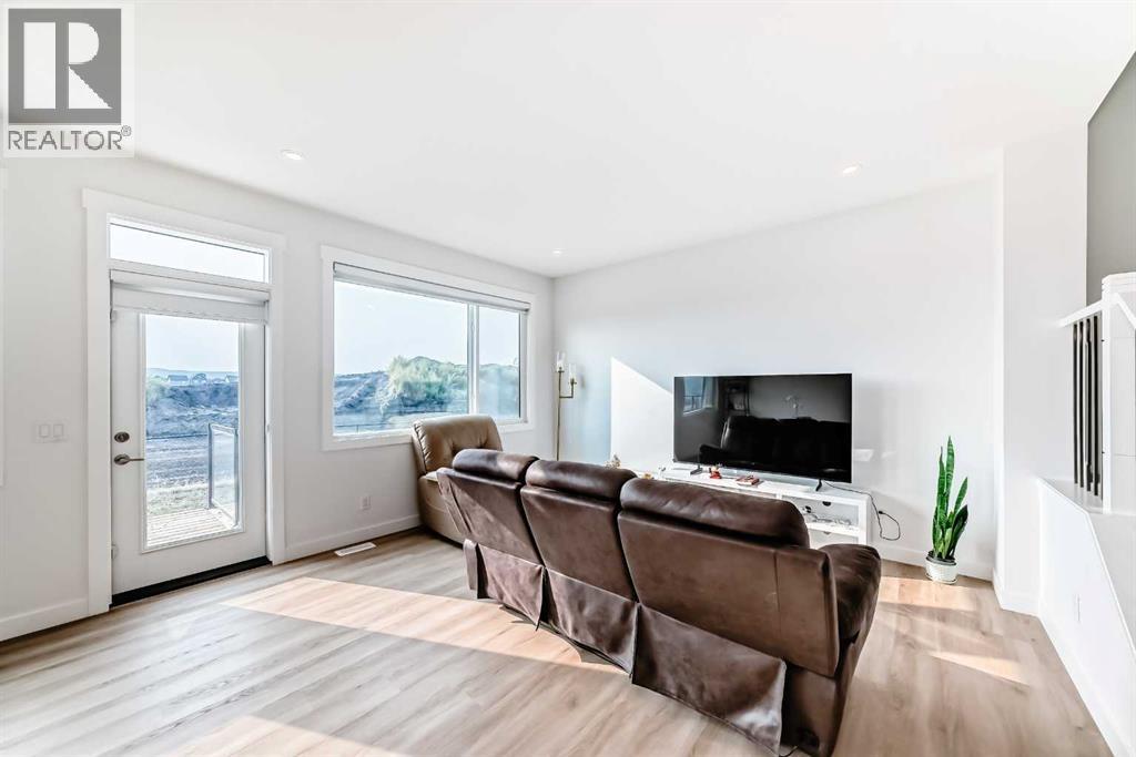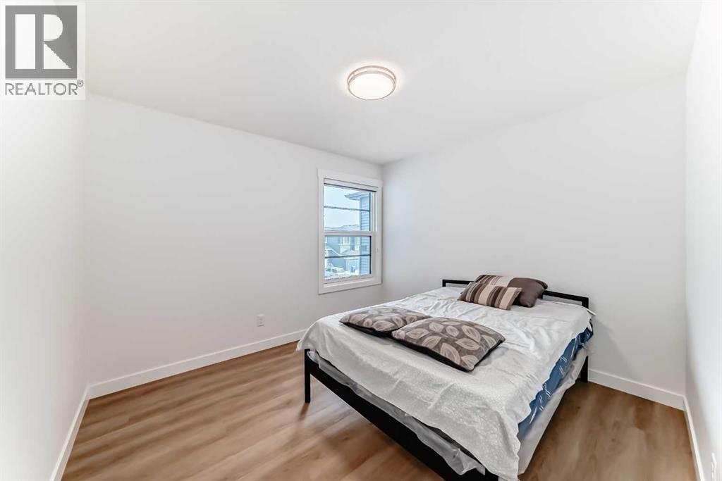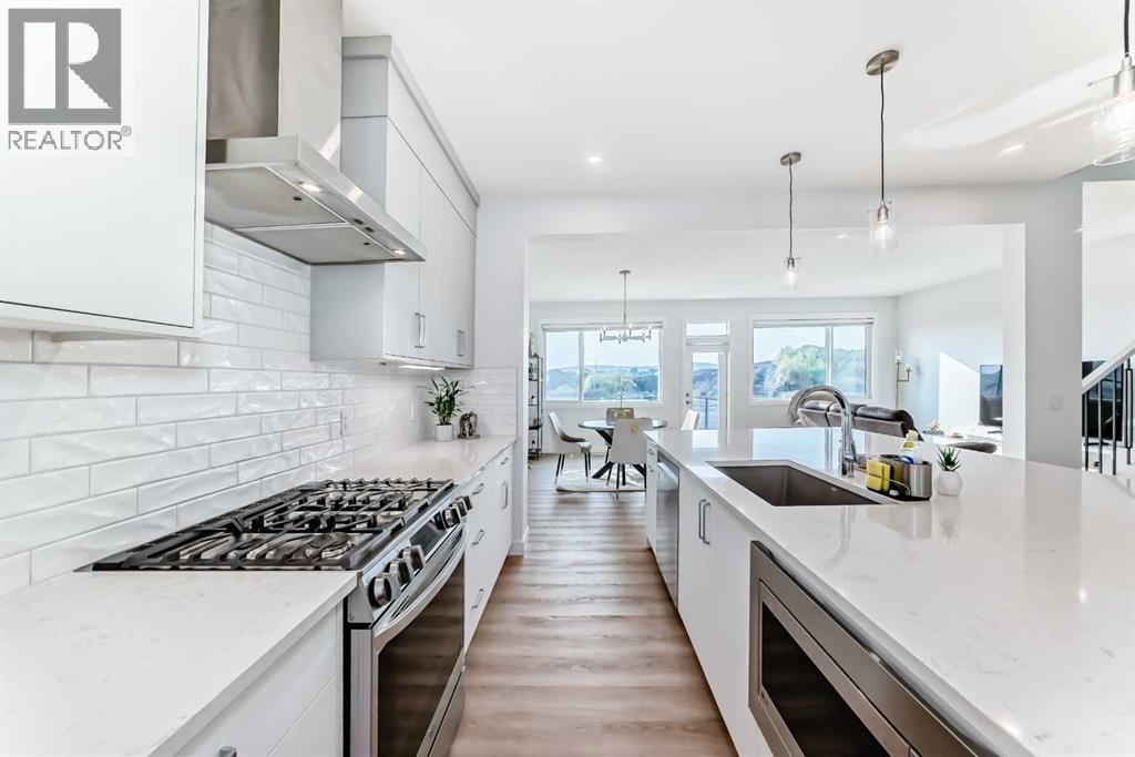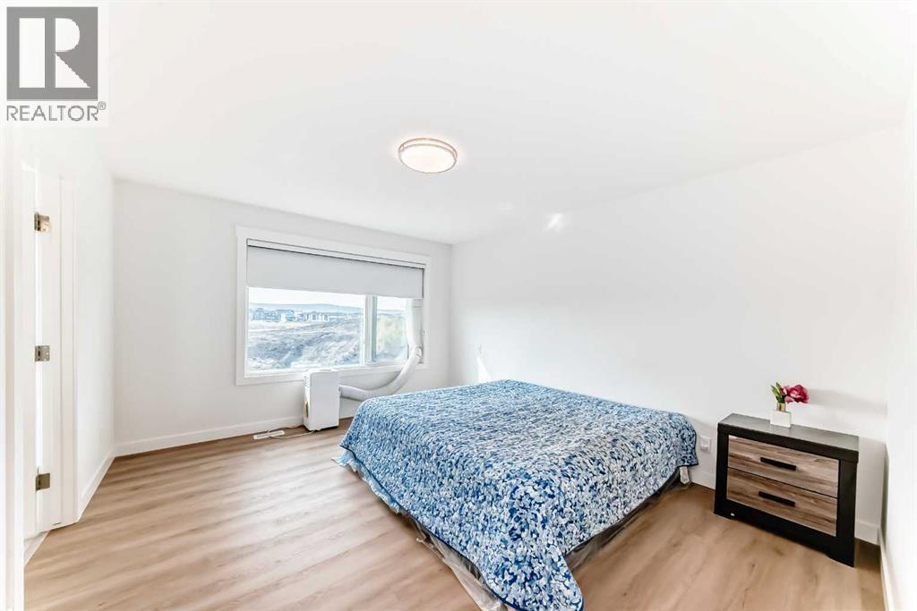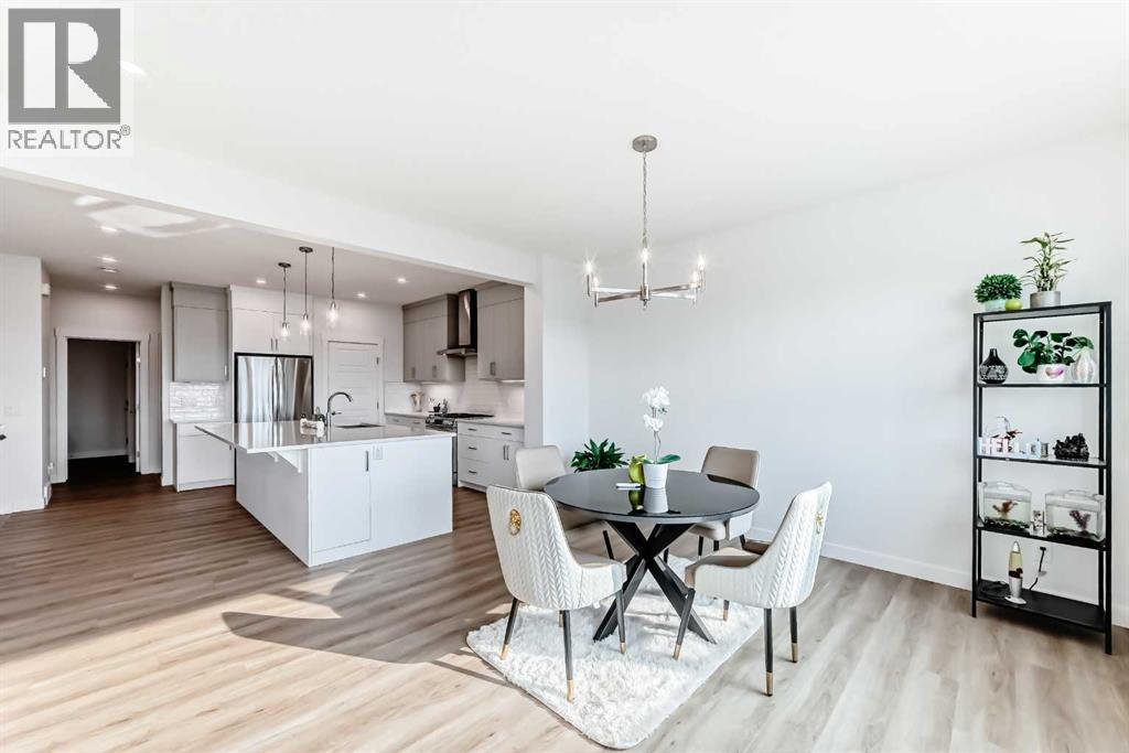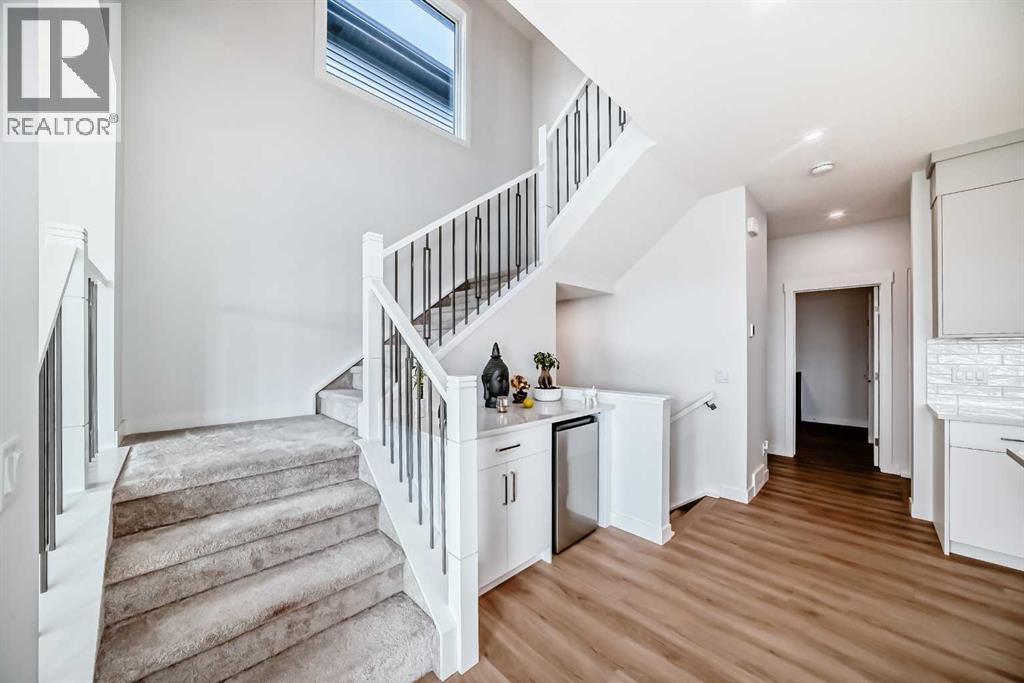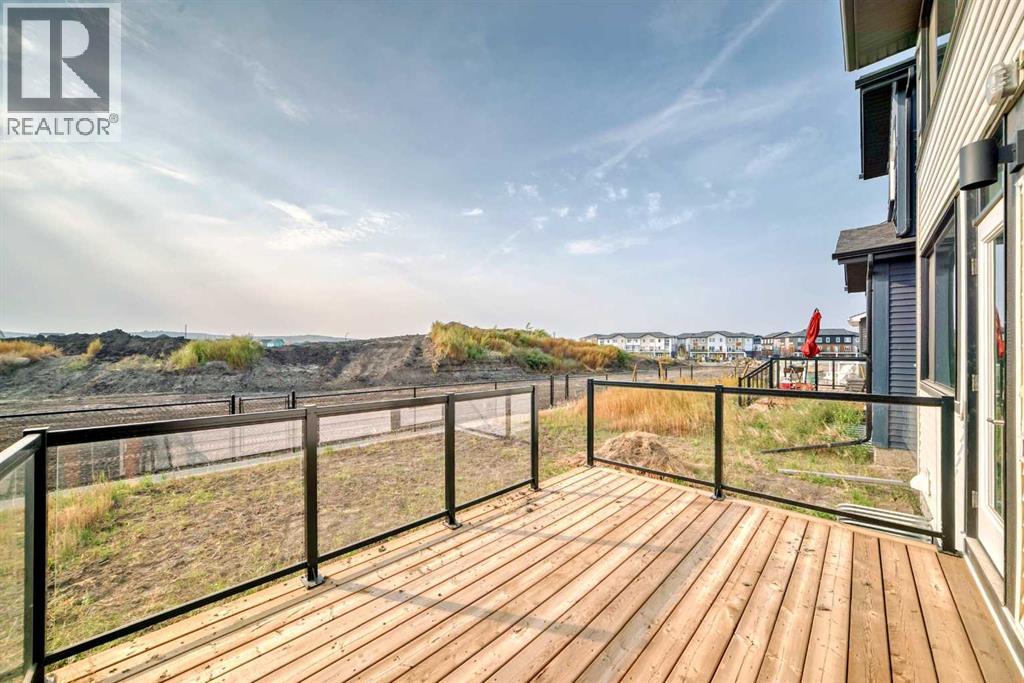 Like new home, built in 2024 and designed with both family comfort and future flexibility in mind, this contemporary 2,288 sq ft home pairs thoughtful upgrades with a versatile layout. Wide plank engineered hardwood floors extend through an open main level where a wall of windows creates a bright, inviting backdrop. The kitchen blends style and function with 2 toned full height cabinetry, quartz countertops, stainless steel appliances including a gas stove, subway tile backsplash and an undermount sink. A massive island invites family and friends to gather, while the adjacent built-in bar with beverage fridge makes entertaining effortless. Clear sightlines connect the living room, dining area and kitchen, ensuring no one misses a moment. Designer lighting accents the dining room that opens to a west-facing glass-railed oversized deck for seamless indoor/outdoor living. A 4th bedroom on this level offers flexibility for guests, a home office or multigenerational living, complemented by a convenient powder room. Upstairs, the vaulted bonus room becomes a hub for movie nights or kids’ play, while the continuation of hardwood floors means no carpet to maintain. A spacious primary retreat is enhanced by an oversized window, walk-in closet and a luxurious ensuite with dual sinks, a soaker tub and a separate glass shower. 2 additional bedrooms each with walk-in closets share a well-appointed 5 pc main bath with dual sinks designed to simplify busy mornings. Practicality is elevated with an upper-level laundry room. A separate side entrance leads to an unfinished basement offering potential for customization or future development, appealing to investors or families planning for long-term growth. An insulated and drywalled double attached garage adds convenience, while the west-facing backyard promises sunny afternoons and space to personalize. Set in Calgary’s master-planned Pine Creek community, over half of the land is dedicated to environmental reserve, creating scenic southern Alberta views. The location provides quick access to the South Health Campus, Spruce Meadows, Fish Creek Park and Sikome Lake, with everyday amenities available in nearby Silverado, Walden, Shawnessy and Legacy. Offering a balance of style, function, and future opportunity, this home is ready to grow with your family for years to come! (id:53676)
