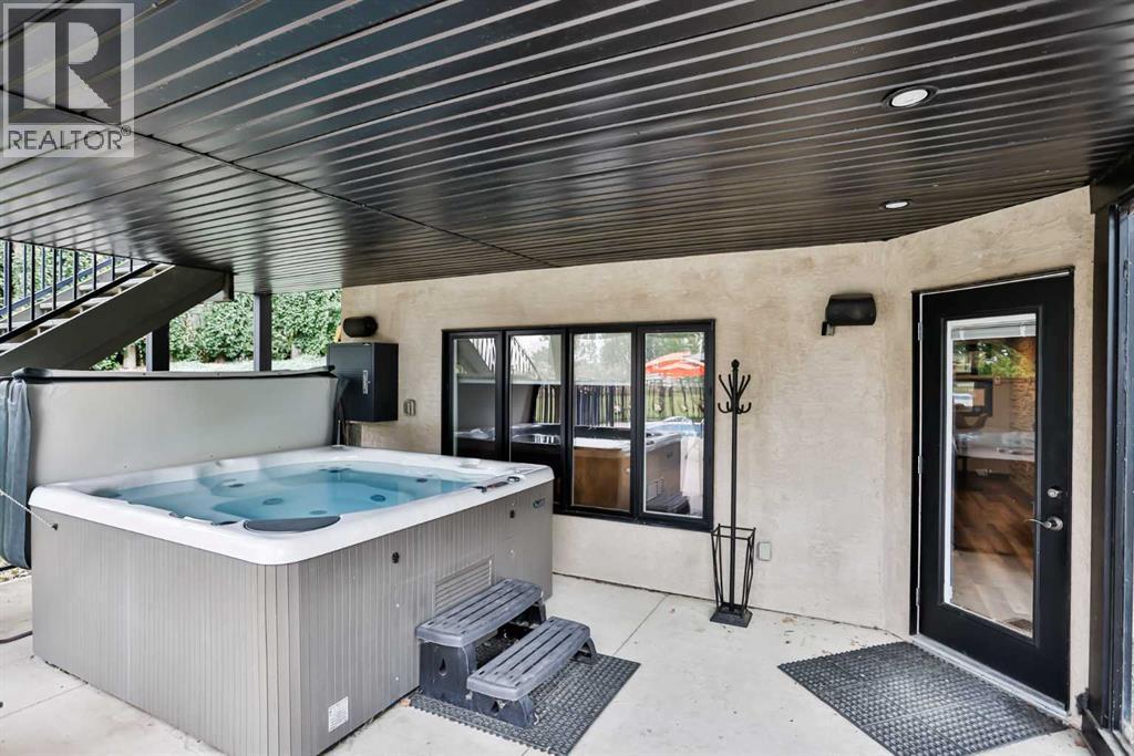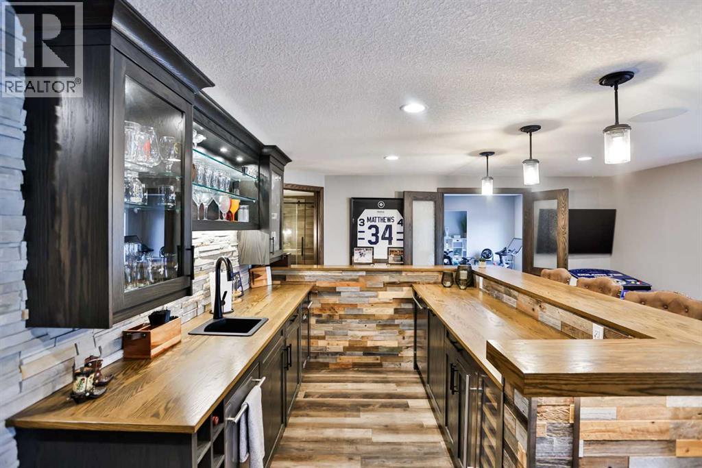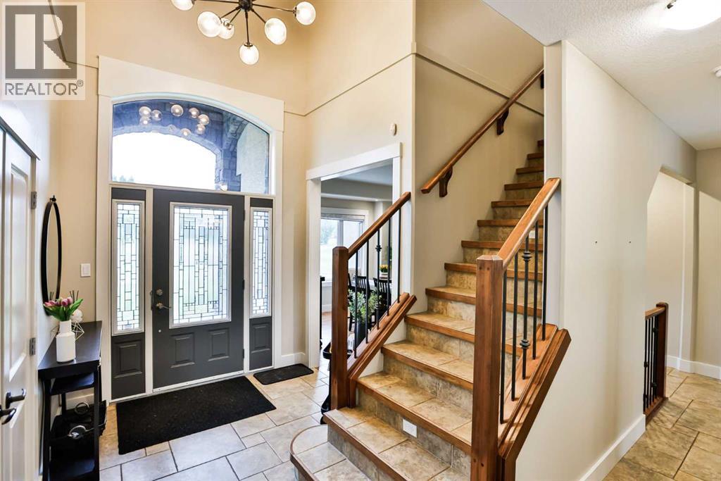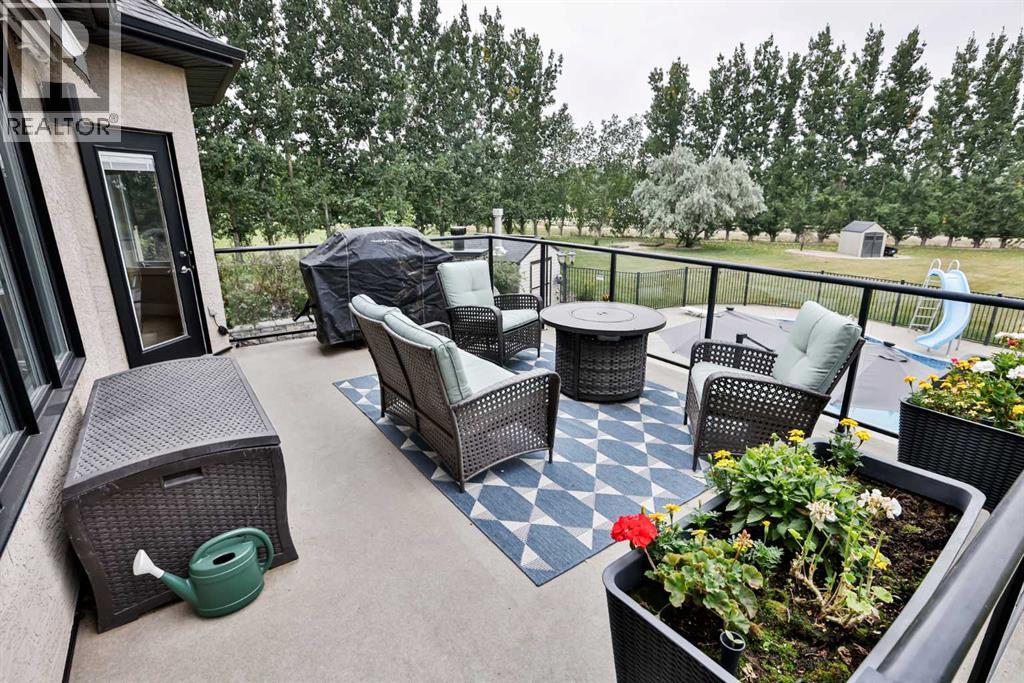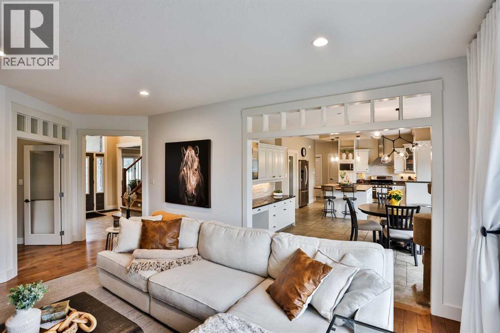 Welcome to your private country retreat just minutes from the city! This beautifully updated, fully finished home offers nearly 2,841 sq. ft. above grade plus an additional 1,531 sq. ft. in the bright walkout basement — almost 4,372 sq. ft. of developed space on 1.17 acres in a peaceful cul-de-sac.Step inside to a soaring front entry and a formal dining room with warm hardwood floors flowing into a spacious great room featuring a cozy gas fireplace and custom built-ins. Just off this gathering space, a rear patio with retractable awning and natural gas hook-up creates an ideal BBQ and outdoor dining area.The gourmet kitchen is designed for everyday life and entertaining — enjoy morning coffee in the sunny breakfast nook, prep dinner at the oversized butcher-block island, and keep organized with a built-in desk and generous walk-in pantry. Freshly refinished cream cabinetry adds timeless appeal.A dedicated home office with high ceilings and custom built-ins is perfectly positioned near the front entry. The main-floor laundry room offers abundant storage and a sink, while the mudroom connects seamlessly to the oversized, heated triple garage — a practical setup for busy families.Upstairs, the primary suite is a true retreat with a tray ceiling, expansive custom walk-in closet, and spa-inspired ensuite featuring a soaker tub and multi-jet tile shower. A maple spindle railing hallway separates the primary from three additional bedrooms. The main bath offers dual sinks and a separate shower/toilet area for easy shared use.The walkout basement was made for entertaining — bright with natural light and anchored by a freshly renovated wet bar with sleek wood countertops, stunning cabinetry, and high-end appliances (dishwasher, ice maker, wine & beverage fridges included). A beautiful feature wall with built-ins and custom rockwork creates the perfect game-day space. Three versatile rooms provide endless options: home gym, guest suite, or music room. A new ly updated bathroom with tiled shower and floating vanity adds style and convenience.Step outside to your own backyard oasis: a heated inground saltwater pool for April–October swims, a six-person hot tub with built-in audio, and an 800 sq. ft. composite deck with outdoor fireplace for cozy prairie nights. In winter, the adjacent pond transforms into your private skating rink.Extras include in-floor heating on every level, full-property irrigation (even planters), and built-in audio indoors and out. The pool area is fully fenced, and Gemstone lighting sets the perfect evening glow.Located in Vista Meadows, you’ll enjoy in-town services — including septic and water treatment — with an out-of-town feel. School bus pickup is right at your door, and city amenities like restaurants, coffee shops, and greenhouses are just minutes away. Best of all, this home is move-in ready so you can start enjoying it from day one. (id:53676)