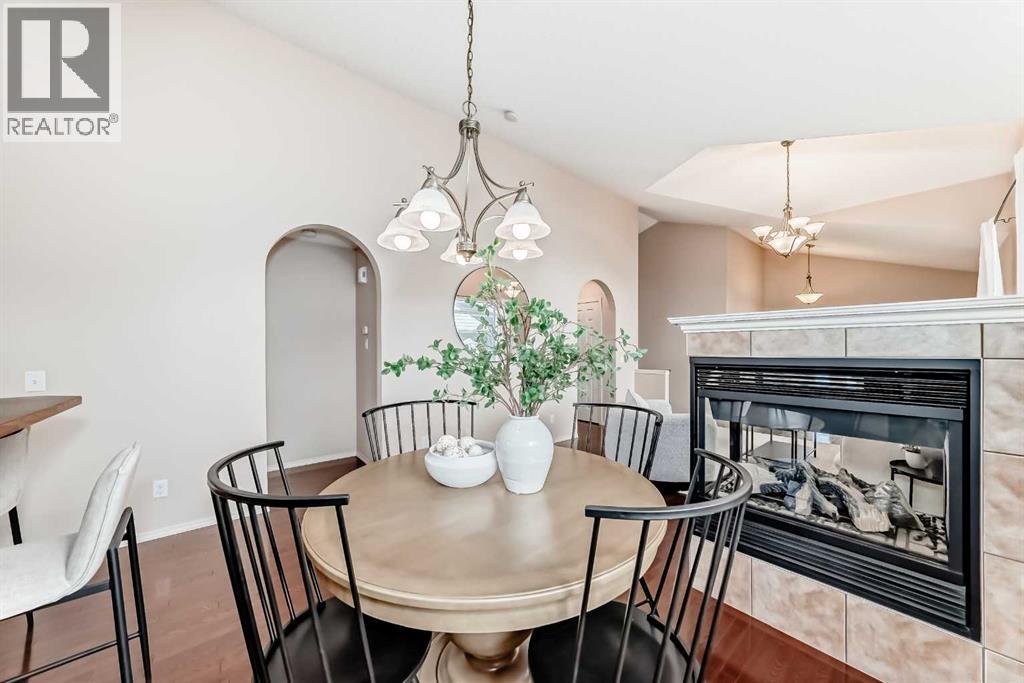 Hello Gorgeous! Welcome home to this beautifully maintained 3 bedroom, 3 bathroom property offering over 1943 sq. ft. of fully developed living space. From the moment you step inside, you’ll love the bright, welcoming atmosphere, highlighted by vaulted ceilings, hardwood floors, and an open-concept main floor designed for modern living. The inviting living room features a three-sided gas fireplace, creating a cozy ambiance that connects seamlessly to the kitchen and dining areas. The spacious primary bedroom offers a walk-in closet and four-piece ensuite, while a generous flex room on the main floor provides the perfect space for a home office, guest suite, or creative studio — the possibilities are endless! Downstairs, the fully finished basement expands your living space with a large recreation area, second gas fireplace, additional bedroom, full bathroom, laundry room, and ample storage. Step outside to your private backyard oasis with a freshly stained, two-tier deck — perfect for entertaining, barbecues, or simply relaxing. Additional features include air conditioning for year-round comfort. Nestled on a quiet, family-friendly street, this home is ideally located close to schools, parks, shopping, and Airdrie’s extensive walking path system. This home truly has it all — space, comfort, and a welcoming charm you’ll feel the moment you walk in. (id:53676)