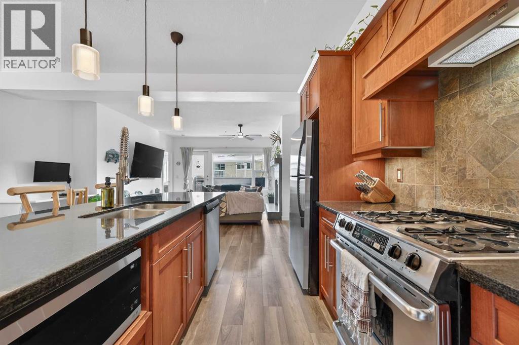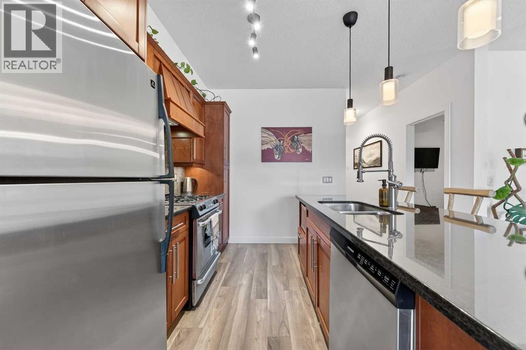 Welcome to Lower Mount Royal—one of Calgary’s most sought-after inner-city spots—where walkability, energy, and character all come together.This bright and stylish condo offers over 1,064 sq. ft. of open living space, elevated by 9-foot ceilings that make everything feel bigger, lighter, and more inviting. With two spacious bedrooms and two full bathrooms, the layout just works—especially the primary suite, complete with a walk-in closet and a spa-inspired ensuite featuring dual vanities, a deep soaker tub, and a separate glass shower.The living space is a standout, anchored by a stone-faced fireplace with a mantle that brings serious character. Big windows overlooking the balcony flood the room with natural light, and the open flow into the dining area makes it perfect for hosting or just enjoying everyday life. The kitchen delivers on both style and function with granite countertops, stainless steel appliances (including a gas range), and plenty of storage.Step outside and you’re moments from 17th Avenue—restaurants, cafés, shops, and nightlife—but far enough away to actually enjoy some peace and quiet when you want it.In-suite laundry, titled underground parking, and a separate storage locker round it all out, plus a well-maintained building with major exterior updates already done.Inner-city living done right. (id:53676)