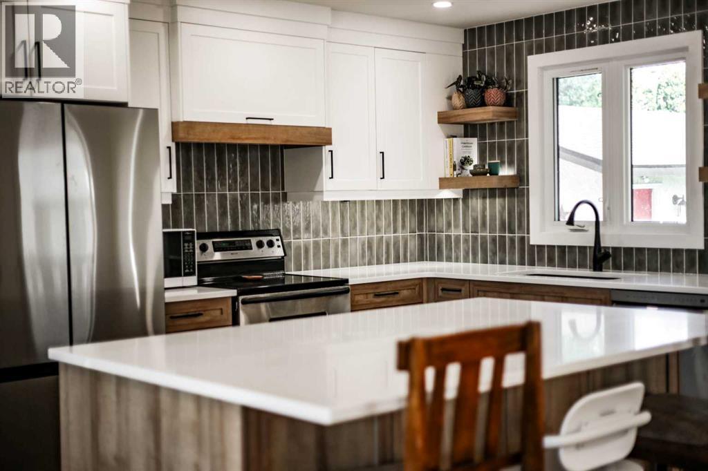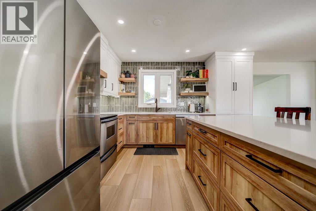 Step through the front door and experience the fresh, modern updates throughout this stunning, multi-level home. The open concept design features two-tone cabinetry in white and wood grain, complemented by white quartz countertops, a custom-built hood fan, pots and pan drawers, undermount sil granite sink and floating shelves accented by back lighting. New vinyl plank flooring, paired with custom registers, beautifully ties together the space together.This spacious four-level split home is filled with natural brightness from oversized windows and highlighted by plenty of pot lights. At the rear of the home, you'll discover a sunken playroom or tranquil plant sanctuary that leads to the backyard. The outdoor area features a concrete patio, a large composite deck, a gas line ready for your barbecue or fire pit, raised garden beds, a garage, and a grassy area perfect for kids to play.On the top level, three fully renovated bedrooms showcase the continuation of the vinyl plank flooring even on the stairs, and both bathrooms have been also fully refreshed with white oak cabinets, solid surface counters paired with a undermount sink, and beautiful tile work utilizing the “Wedi” system in both the tub/shower and the custom ensuite shower with tile floors and a glass door.The third level offers a walk-up area with large new windows that bathe the space in natural light. Here, you'll find the third family living space, a fourth bedroom, a convenient laundry area with built in storage, and a third bathroom featuring an oversized shower. On the fourth level, additional living space, a storage room, and mechanical areas complete this home.Additional updates include a recently updated furnace with zoned heating to ensure extra comfort throughout the home. Located in a wonderful neighborhood close to amenities on the south side of Lethbridge, this property is a must-see for those seeking a blend of modern design and classic charm perfect for your family! (id:53676)
