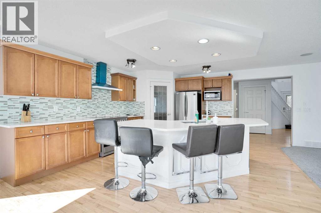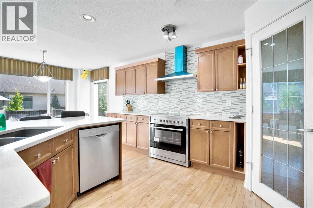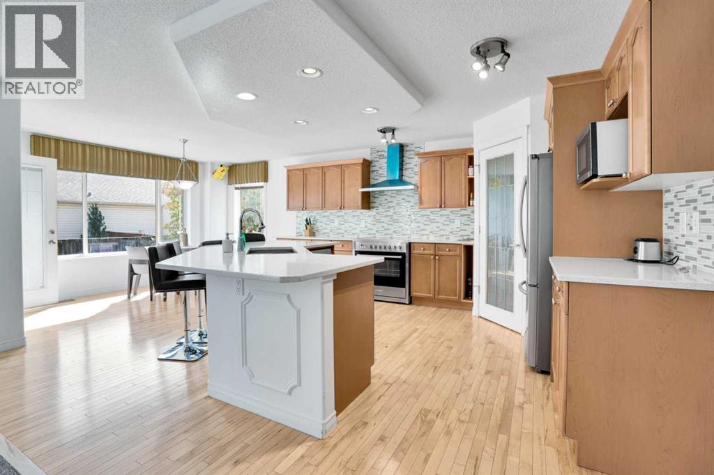 Welcome to Lakeview Landing in Chestermere!This beautiful detached home sits in the heart of an exquisite community, just steps away from Chestermere Lake and close to all amenities. Offering over 2,400 sqft of thoughtfully designed living space, this property is perfect for families seeking comfort, convenience, and modern living.As you enter, you’re greeted by a spacious foyer with an open-to-above design that creates a grand first impression. To the left, a versatile den offers the ideal space for a home office or additional living area. The open-concept main floor features a bright living room with a cozy gas fireplace and large windows, filling the space with natural light. The modern kitchen is complete with stainless steel appliances, a walk-in pantry with direct garage access, and an island that overlooks the dining and living areas—perfect for entertaining. A convenient 2-piece bathroom completes the main level.Upstairs, you’ll find a spacious bonus room with large windows, two generously sized bedrooms sharing a 4-piece bathroom, and a private primary retreat. The primary suite includes a walk-in closet and a luxurious 5-piece ensuite with dual sinks, a soaker tub, and a separate shower.The partially finished basement offers a fourth bedroom and plenty of storage, giving you the opportunity to customize the space to your needs. Outside, enjoy a fully fenced backyard with an oversized deck—ideal for summer evenings and BBQs.Additional highlights include: Central A/C, central vacuum, heated garage, and dual furnaces for year-round comfort.This home truly combines elegance, functionality, and location. Don’t miss your chance to experience lakeside living at its finest! (id:53676)