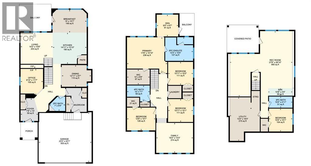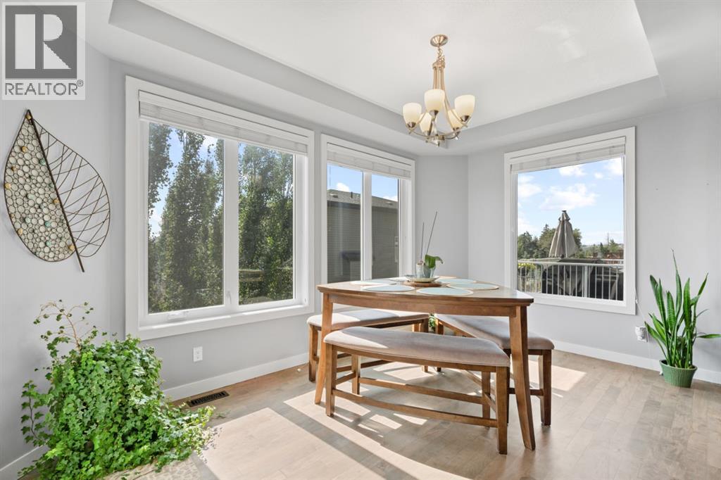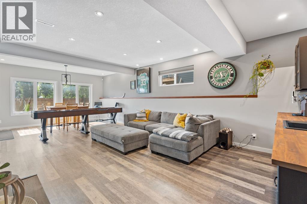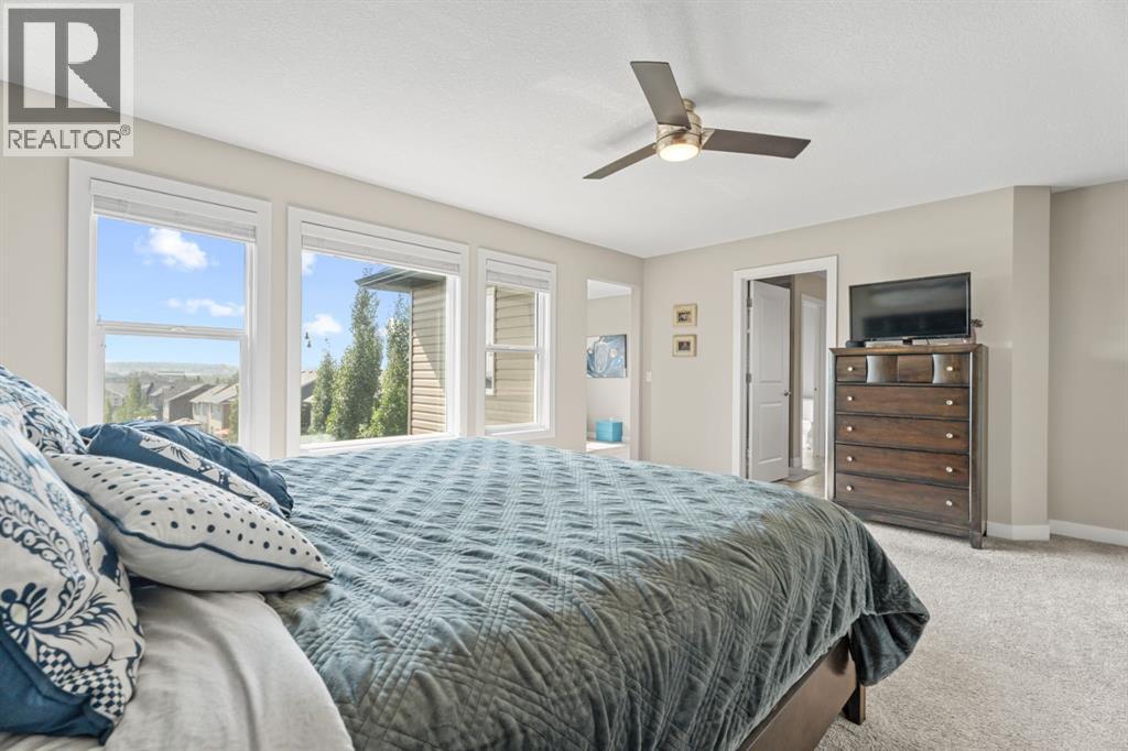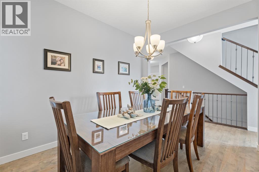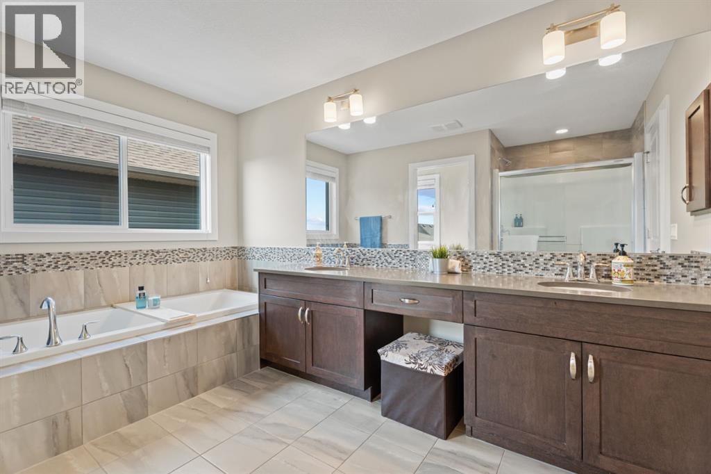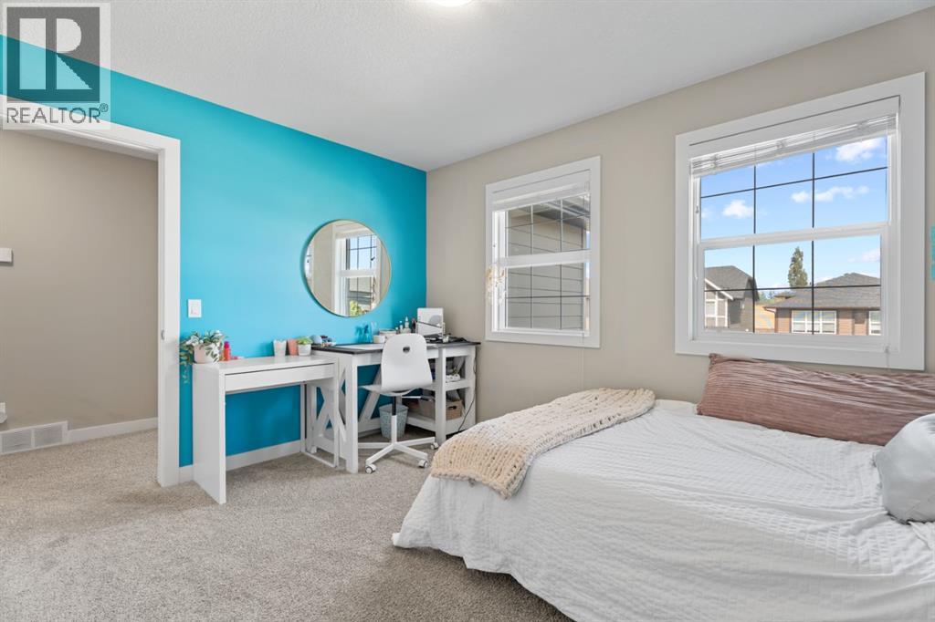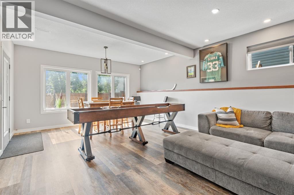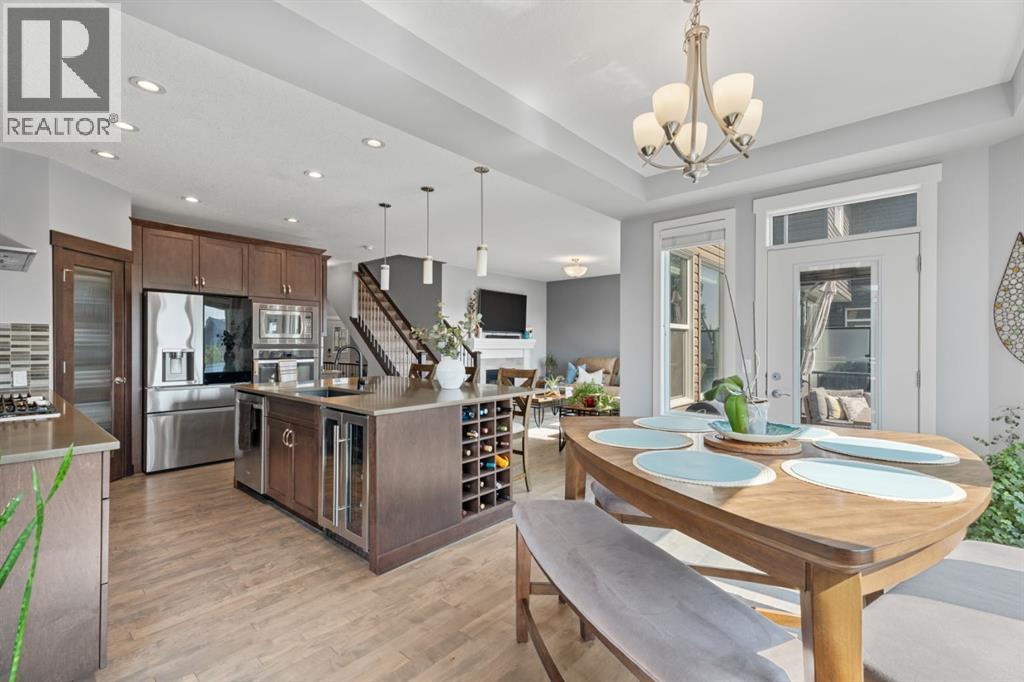 This is the only home for sale in stunning Mountainview! This home truly has it ALL. With over 4,000 sq. ft. of developed living space, a walkout basement, mountain views, and upgrades at every turn- this Sterling built stunner delivers the full package. Add in an oversized, heated double garage, executive finishes, and a layout that’s as functional as it is fabulous-check, check, check! The tiled foyer with built in bench welcomes you in, while the front office with its double sided gas fireplace sets the tone for style and warmth. A formal dining room is ready for your most memorable holiday gatherings. Then there’s the kitchen… and wow, is it a showstopper. Think massive quartz island, gas cooktop with feature hood, built in oven & microwave, brand new upgraded fridge, wine fridge, pantry, and oversized windows framing those Rocky Mountain views. The bright breakfast nook leads to your south facing, west view deck, where sun and scenery collide. The adjoining living room, anchored by the fireplace, flows seamlessly- perfect for family living or entertaining and highlighted by refinished hardwood floors and a layout that’s an easy 10/10. The large mudroom off the garage is fantastic for storage, plus even the main floor powder room is upgraded. Upstairs, the vaulted bonus room is a versatile space, and with four bedrooms up, everyone gets their own space. The primary suite is a true retreat..oversized windows, a huge walk-in closet, and a private den with its own balcony and more mountain views. Whether it’s your office, nursery, yoga spot, or reading nook, this extra space is the ultimate bonus. The ensuite is equally impressive with dual sinks, a makeup station, walk in shower, and tiled soaker tub. The fully developed walkout basement brings the wow factor even further: a full wet bar, large rec room, 5th bedroom, full bathroom, and access to the landscaped yard. There is plenty of space for multi-gen living! Picture evenings under the covered patio, garden bo xes in bloom, and maybe even a soak in the negotiable hot tub. Extras? This home has them all: oversized heated garage, A/C (under contract), water softener, year round trim lighting for curb appeal and holiday lighting. From top to bottom, this home blends luxury, function, quality and family friendly design. It’s move in ready, 'mountain view' magic waiting for you. Check out the virtual tour! (id:53676)