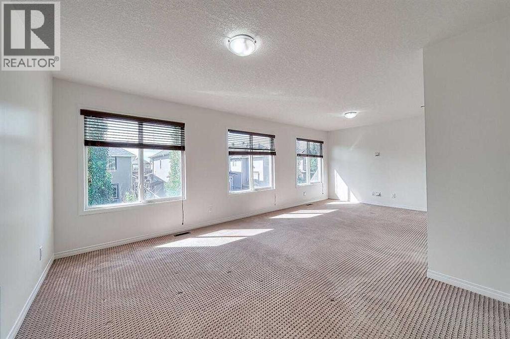 WOW! Fully developed 2 storey with over 2700 sq. ft. Totally upgraded with New Roof Shingles/Eaves/Flooring/Freshly painted/Baseboards and Shows like New. Located in the special Enclave of SAGE MEADOWS of Sage Hill, where all the Detach Homes are Stucco. MAIN FLOOR - 9' Ceilings, Flex room as you enter, Family room with Fire place, Big Kitchen with Island & Pantry and Granite Counters, Dining area and door to the Deck, Den (could be used as Bedroom), 3 pcs Bathroom and Laundry room. UPPER - 3 good size Bedrooms, Bonus room, Full Bathroom. Master Bedroom is Huge with full 5 pcs Ensuite and a walk in closet. BASEMENT - Large Rec Room with wall to wall cabinets, Den, storage and 3pcs Washroom. OTHER - Garage is all drywalled and painted, Good size Deck, Stucco/Stone siding, Nice Yard with storage shed. Vacant for immediate possession. Please review the Virtual/photos/3d walk thru and much much more to get the full glimpse of this Home. (id:53676)
