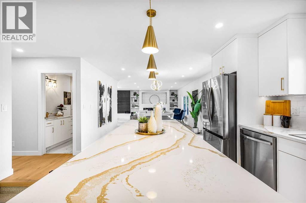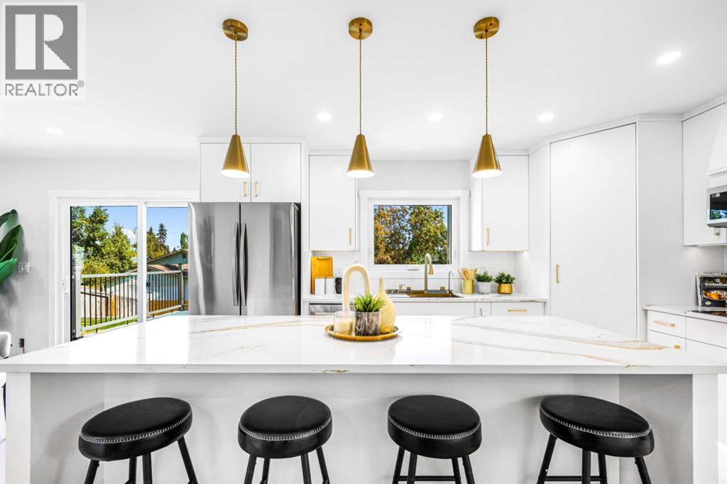 Welcome home to this full renovated bungalow in the mature community of Cedarbrae! This home is ready for all of life’s stages! Upon entering the home you will be greeted by beautiful engineered hardwood floors and a stunning open concept layout featuring a fireplace and cozy living space with built-ins and an abundance of natural light. Adjacent to the living room is a beautiful dining room that provides you access and views of the backyard with a convenient large glass sliding door and large windows. Connect the dinning room is the kitchen where you can find an abundance of counter space. The kitchen includes a large island, beautiful counter tops with gold coloured accents throughout and gold hardware to match. The kitchen is complete with a double wall oven and stainless steel appliances. This kitchen is perfect for your cooking, hosting, and baking needs! Concluding the main floor is the master bedroom with a captivating 5 piece ensuite, a beautiful secondary bathroom, and two more bedrooms. As you make your way to the fully finished basement you will notice the gorgeous glass railing that is truly a head turner. This basement was made for entertaining! You are greeted by a large media room and walk-up wet bar that sets the tone for an inviting space to entertain or perfect for a family night in! The final touches are the 2 spacious basement bedrooms and an additional 4 piece bathroom. The interior of this home is brand new from the electrical system and plumbing to the flooring, doors, and paint. Finishing off this home is your stunning huge backyard composite deck and backyard fireplace area! Perfect for summer nights! This homes exterior is complete with brand new hardy board siding, a new roof, all new windows, and new composite front porch! No detail was spared in this renovation! Book a listing today! (id:53676)