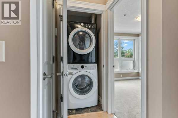This inviting 2-bedroom, 1-bathroom condo offers approximately 738 sq. ft. of well-designed space combining functionality with style.Step inside to discover slate tile flooring in the entryway and kitchen, setting a warm tone throughout. The kitchen features stainless steel appliances, granite countertops, and a practical U-shaped layout with a raised breakfast bar and pantry for extra storage—perfect for everyday cooking and entertaining.The open-concept living area separates the bedrooms for added privacy. Enjoy the rich hardwood floors and a cozy gas fireplace with a stylish slate surround. From the living room, access your covered patio — an ideal spot to relax or entertain outdoors.The spacious primary bedroom is filled with natural light and offers ample closet space. The second bedroom is bright and welcoming, with large windows to let in plenty of sunshine.Additional comforts include in-floor heating, a built-in humidifier, and in-suite laundry cleverly tucked into a closet for convenience.One covered parking stall is included. Residents also enjoy access to a community rooftop patio with beautiful city views.Located just steps from the Bow River pathways, parks, and the shops and restaurants of Bridgeland, you’re minutes from the Calgary Zoo, Prince’s Island Park, downtown, and convenient transit right outside your door.Experience the perfect blend of urban convenience and cozy comfort. Schedule your private tour today! (id:53676)