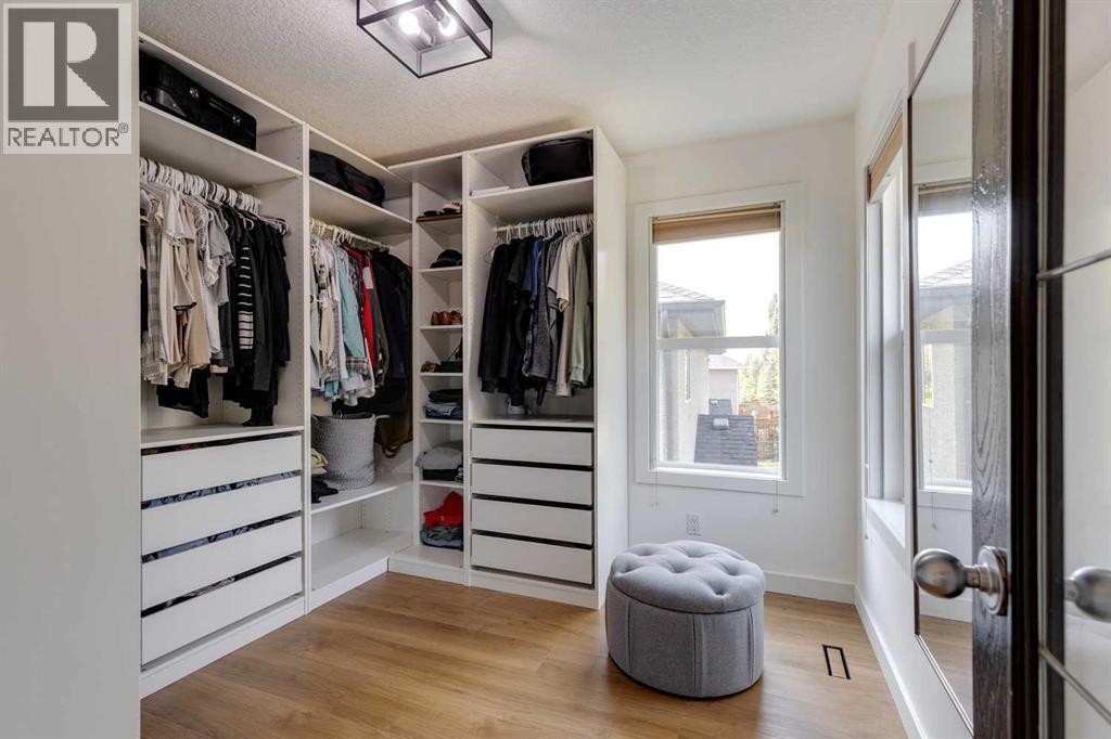 Welcome to this incredible family home in the prestigious community of Aspen Woods. With over 3,200 square feet of meticulously designed living space, this residence is filled with high-end features and thoughtful upgrades. The main floor is bright and open, beginning with new wide-plank LVP flooring. The flexible layout flows seamlessly from the dining area to a spacious, light-filled living room featuring a stunning stone gas fireplace—perfect for cozy gatherings. The gourmet-style kitchen is a chef’s dream, equipped with new appliances, granite countertops, and a large island that overlooks a sun-filled breakfast nook. A beautifully updated two-piece bathroom completes this level.Upstairs, a spacious bonus room with vaulted ceilings and built-in shelving provides a versatile space for a media room or a quiet retreat. The primary suite is a true sanctuary, boasting a massive walk-in closet with custom built-ins and a spa-like ensuite bathroom. The ensuite features dual vanities, a large corner tub, a separate walk-in shower, and a second walk-in closet with new tile flooring. This floor also includes two more generous bedrooms, a full bathroom, and a conveniently located laundry room.The fully developed basement offers even more living space, with a versatile recreation room that can be used as a home gym, playroom, or media room. A second stone-framed gas fireplace creates a warm, inviting atmosphere, while a fourth bedroom and full bathroom make this level ideal for guests or older children. Step outside to a truly exceptional outdoor living experience. The private backyard is a rare find, nearly twice the size of other yards in the area, and is the perfect oasis for relaxation and entertaining. A spacious deck overlooks beautiful tiered sandstone landscaping and mature trees. Situated on a quiet street, this home offers an unbeatable location just steps from walking paths and a playground. It's also within easy walking distance of excellent schools and a wi de range of amenities. For a closer look at this stunning home, be sure to click the 3D virtual tour! (id:53676)