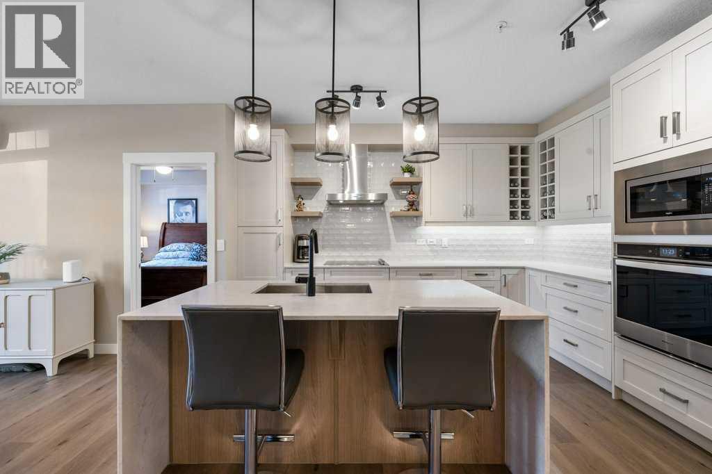 **OPEN HOUSE Sunday Oct 26 - 11AM to 2PM** Experience the perfect blend of style, comfort, and convenience in this beautifully designed 2-bedroom, 2-bathroom ground-floor condo in Auburn Bay. Once a Logel Homes show suite, this home still feels brand new and offers a private walkout entrance directly to ground level—a rare feature that’s perfect for pet owners or anyone who loves easy, everyday access. Flooded with natural light, the spacious west-facing patio includes a gas line for your BBQ, making it ideal for outdoor dining and entertaining. Inside, the open-concept layout showcases thoughtful upgrades, including waterfall-edge quartz countertops on the kitchen island, full-height cabinetry with under-cabinet lighting, a built-in wall oven and microwave, electric cooktop, and luxury vinyl plank flooring throughout. The primary suite features a spa-inspired ensuite with dual sinks, a fully tiled shower, and a custom walk-through closet with built-ins. A second bedroom and full bath provide flexible space for guests or a home office. Enjoy year-round comfort with central A/C, titled underground parking, and a secure storage locker. Pets are welcome with no size or breed restrictions, and low condo fees include heat, water, and maintenance. Located in Calgary’s sought-after lake community, residents enjoy access to Auburn Bay’s private beach, clubhouse, and pathways—just minutes from shopping, restaurants, the South Health Campus, and the Brookfield YMCA. This is stylish, low-maintenance living at its finest—this is a must see! (id:53676)