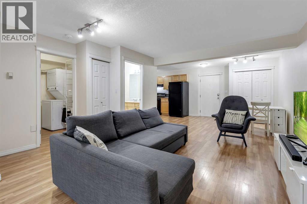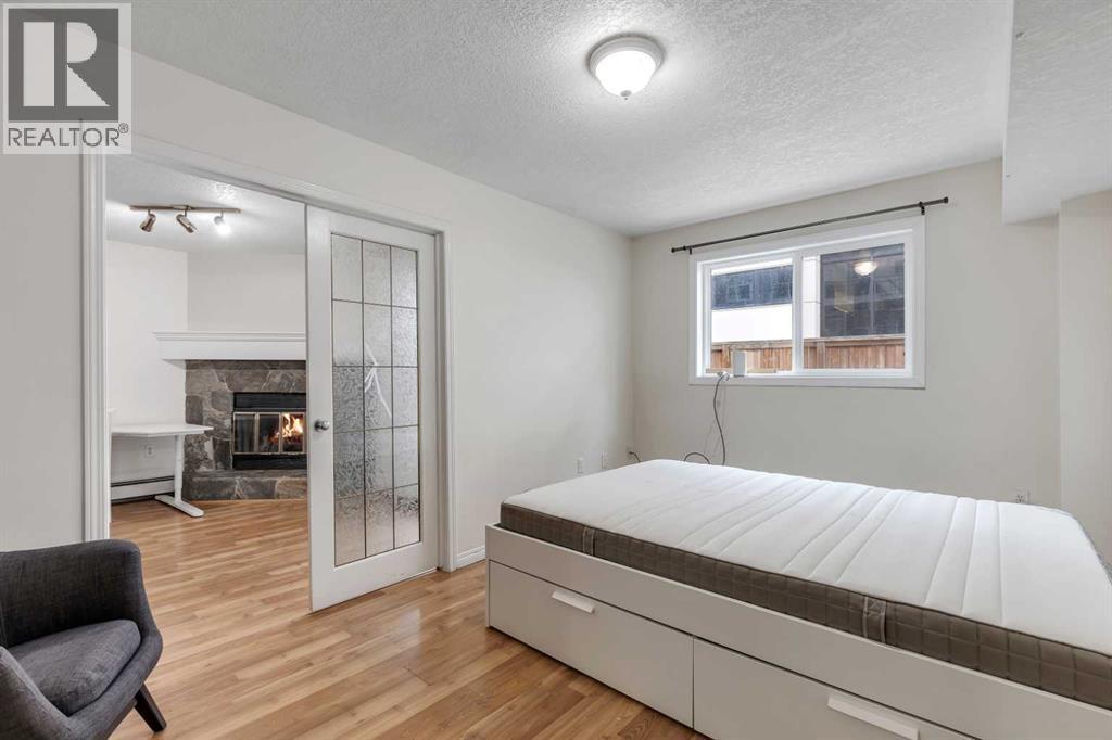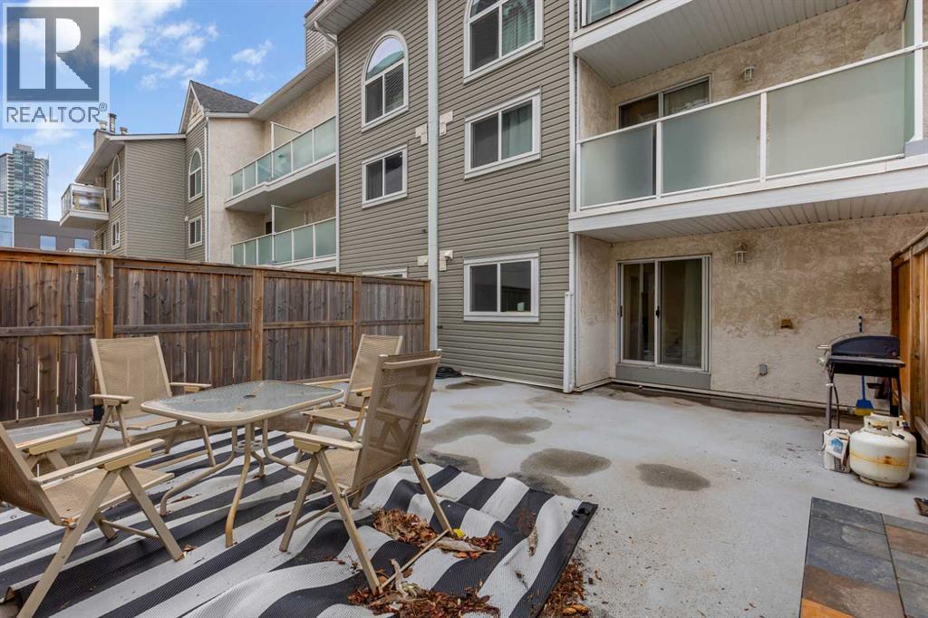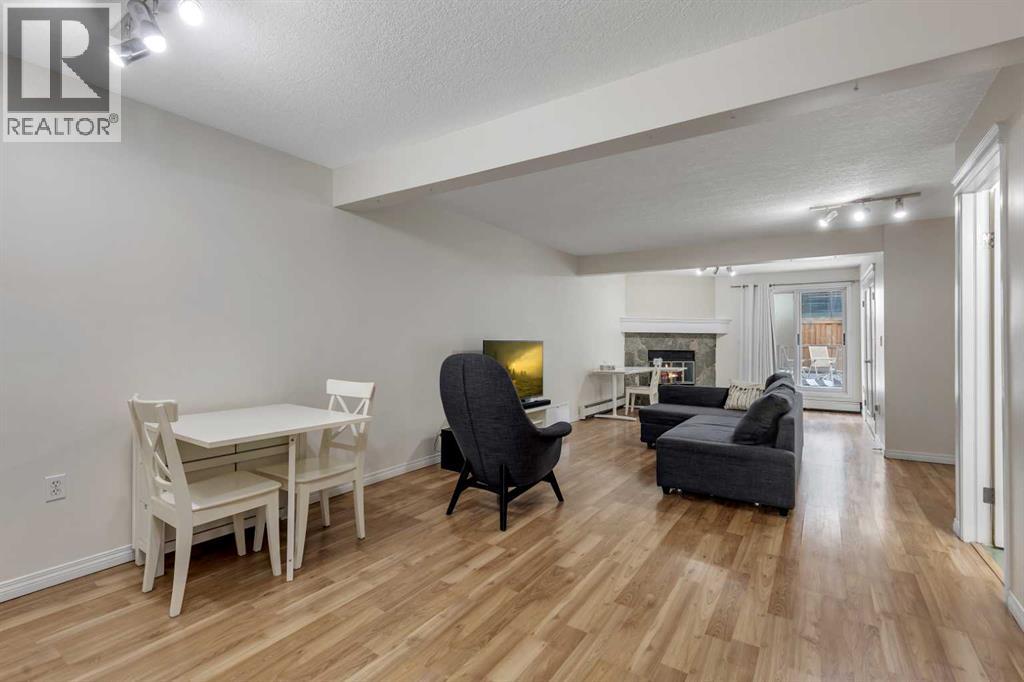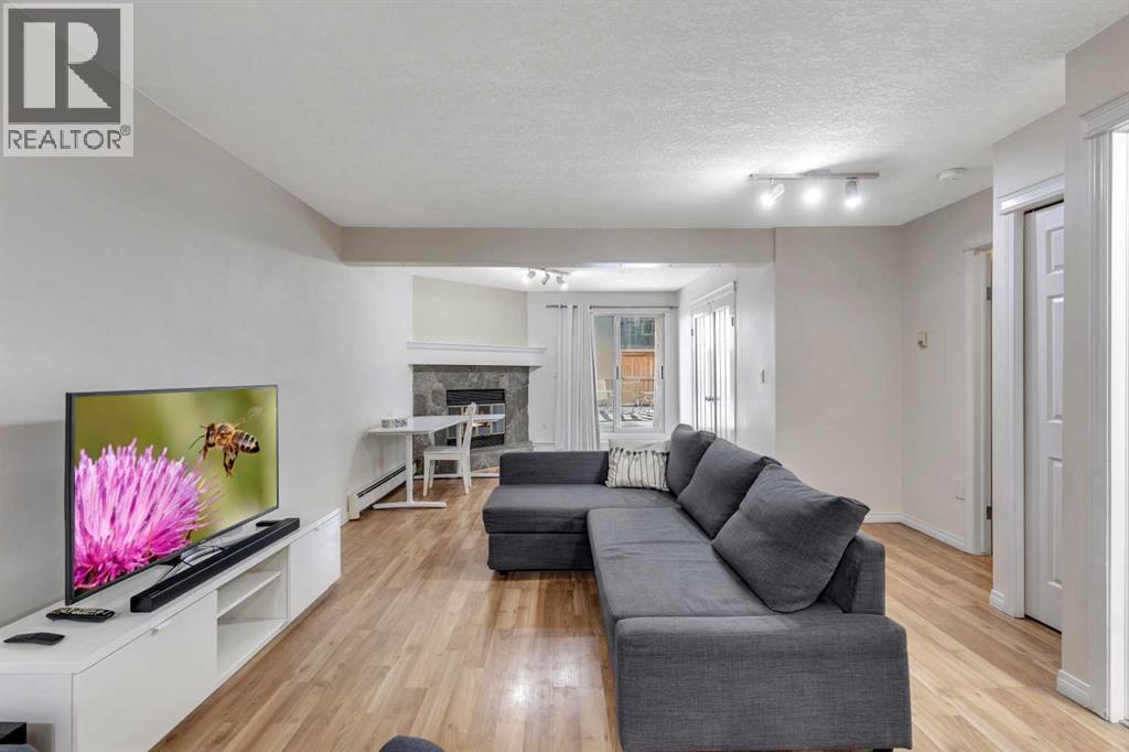 Welcome to Barcelona in Sunalta! This open plan suite offers a modern, flexible layout and massive 500+ sq ft private patio - perfect for those that enjoy the outdoors & entertaining. Beautiful laminate wood floors run throughout the space and are accented by stylish double French doors leading into the master bedroom. The spacious kitchen features maple cabinetry, and plenty of countertop space. Additional features include a 4-piece bathroom, in-suite laundry, a corner wood-burning stone fireplace & mantel, bike storage and a secured, underground parking stall. Within easy walking distance to restaurants, cafes, the Sunalta LRT station with easy access to downtown and only a half block to playgrounds & parks. (id:53676)