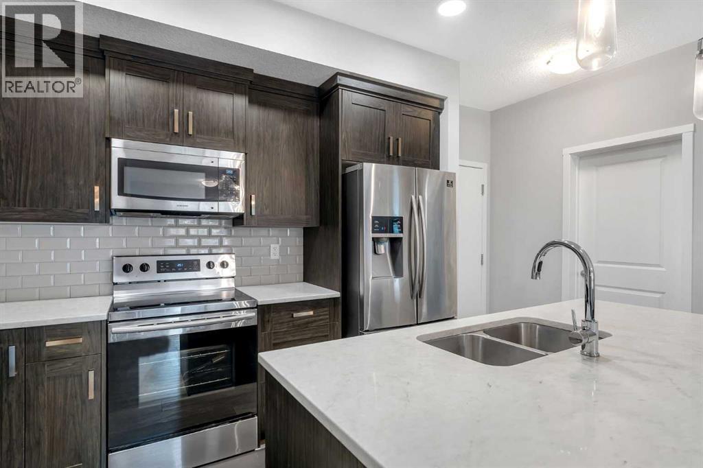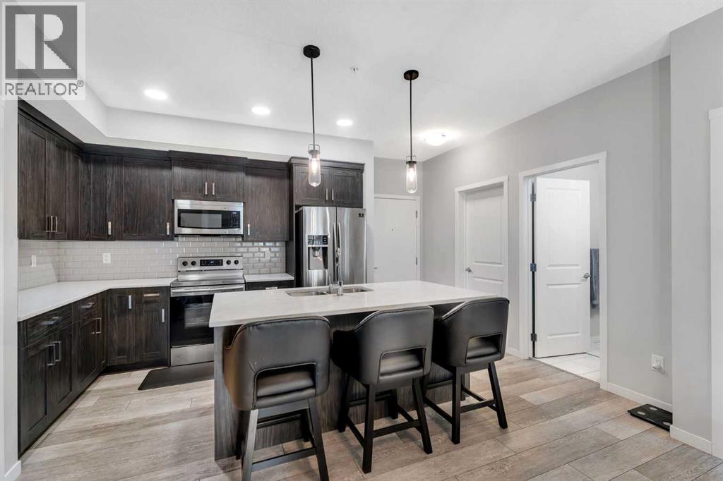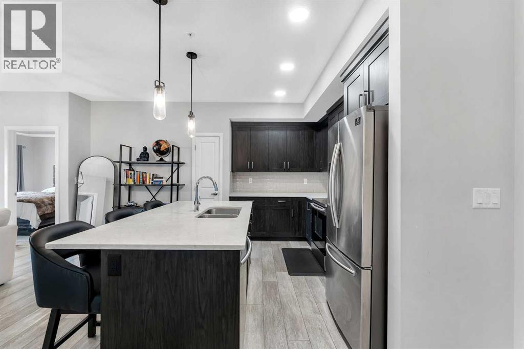 This beautifully designed 2-bedroom, 2-bathroom condo offers upscale living in one of Calgary’s most sought-after and established communities. Built in 2019, this modern unit features high-end finishes throughout, including quartz countertops, ceiling-height kitchen cabinetry, sleek stainless steel appliances, designer tile flooring, and an elegant tray ceiling that adds architectural charm and sophistication. Nestled in Harvest Hills, you’ll love the community’s blend of tranquility and accessibility. Enjoy walking paths, green spaces, and nearby ponds, all while being just minutes away from schools, shopping, restaurants, recreational facilities, public transit, and major roadways including Deerfoot and Stoney Trail. Calgary International Airport is also just a short drive away.Whether you’re a first-time buyer, downsizing, or investor, this exceptional condo checks all the boxes for style, comfort, and location. Book your showing today and experience upscale living in a vibrant community! (id:53676)