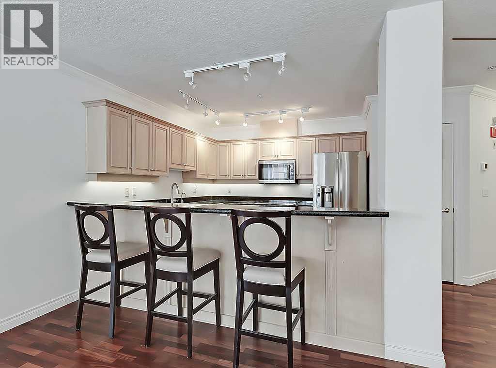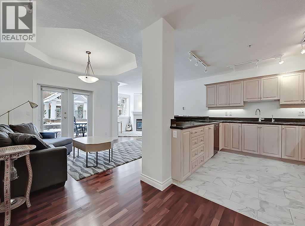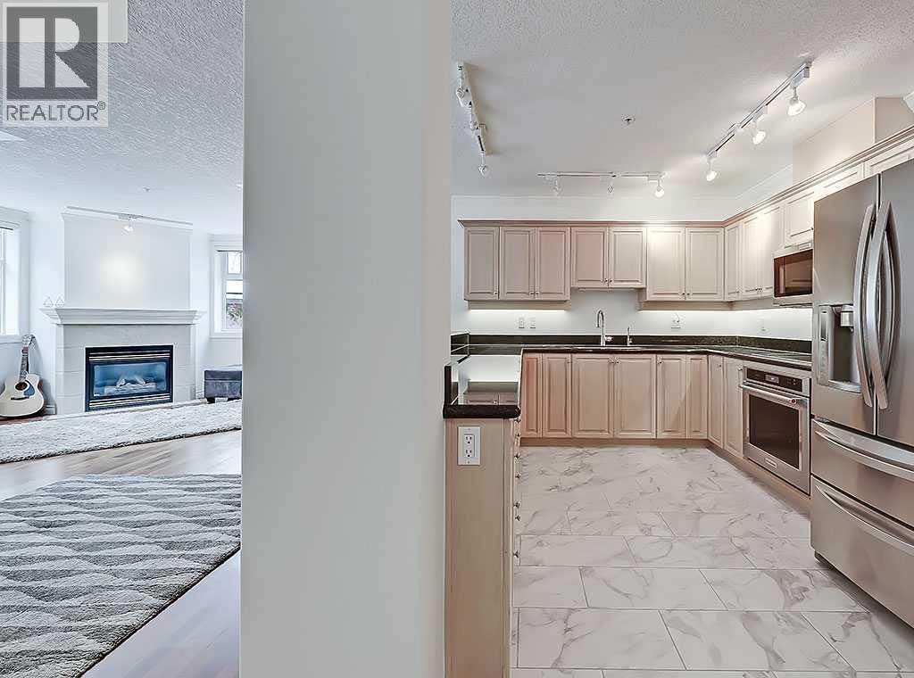 Welcome to River Grande Estate, a highly sought after condominium development in the heart of Erlton. This beautifully maintained 2-bedroom, 2-bathroom condo spans over 1,300 sq. ft.. This main-floor unit offers west-facing views into the tranquil courtyard, flooding the space with natural light. Step inside to find a spacious living room, a separate dining area, and a versatile den/nook space which is anchored by bay windows and a gas fireplace—perfect for a home office or additional living space. The large kitchen boasts abundant cabinetry, a walk-in pantry, and updated appliances. The primary bedroom features custom closet cabinetry and an upgraded ensuite with high-end fixtures. Enjoy the convenience of in-unit storage within the large laundry room, plus an oversized separate storage locker. This unit also includes secure underground parking. Building amenities include a pool table room, car wash, recreation rooms and visitor parking. Located in the heart of Erlton, you're just steps from Lindsay Park, the Elbow River, Stanley Park, the MNP Community & Sport Centre, and vibrant Mission. With quick access to downtown, this is urban living at its finest! (id:53676)