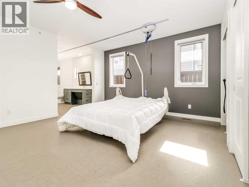 This exceptional residence truly exemplifies pride of ownership! Custom built in 2021 this fully developed bungalow is barrier free (wheel chair accessible) with an open floor plan. Spanning 1,793 square feet, this property is situated on a tranquil cul-de-sac in the desirable South Side neighborhood of Gateway Mews. . As you approach the front entrance, you'll notice the absence of stairs, leading you into a spacious foyer that greets you warmly. Venturing further into the home, you'll discover expansive rooms, including a stunning kitchen equipped with quartz countertops, a generous eat-up island, top-of-the-line appliances, a convection cooktop complete with a pot filler, and a built-in oven featuring a side door for effortless access while baking and cooking. The living room offers ample space, highlighted by a gas fireplace perfect for cozy winter evenings. The main floor hosts a sizable master bedroom, complete with custom closets designed with wheelchair-height pull-downs, built in ceiling lift that spans through to the luxurious 4 piece ensuite. This ensuite features a large roll in/walk in shower, a jetted therapy tub designed to retain warmth for those long, relaxing soaks, and elegant herringbone tile as a backsplash. For added convenience, there is a laundry room on the main floor, along with a 2-piece bathroom for guests. The home also includes an elevator for easy access to the basement. Descending to the basement, which boasts reinforced sides with piles, you will find two spacious bedrooms, a 4-piece bathroom, and a grand family room ideal for entertaining. Additionally, there is a large storage area and a utility room. The property features 9-foot ceilings that enhance its grandeur, along with 3 skylights for maximum natural light and all have remote controlled blinds, and wide doorways. This home is replete with an array of modern conveniences, including remote controlled exterior doors, automated blinds and lights that can be controlled from your smart phone, high-quality commercial-grade flooring, a fire suppression system through out, central vacuum, air conditioning, and a backup generator, also allowing you to control lighting from your smartphone. Stepping out onto the covered back deck, you'll appreciate the generously sized yard equipped gas hookups for your BBQ or fire table, wheelchair ramps allowing full access to either the paved back alley or side gate exit/ entrance. The double-heated attached garage includes a designated area for washing wheelchair wheels or muddy little feet before entering the home, complete with hot and cold water access. With its myriad thoughtful details, this home is an absolute must-see if you are currently in need of all these amazing features or if you are looking for a home that is "aging in place" making this truly your forever home. (id:53676)