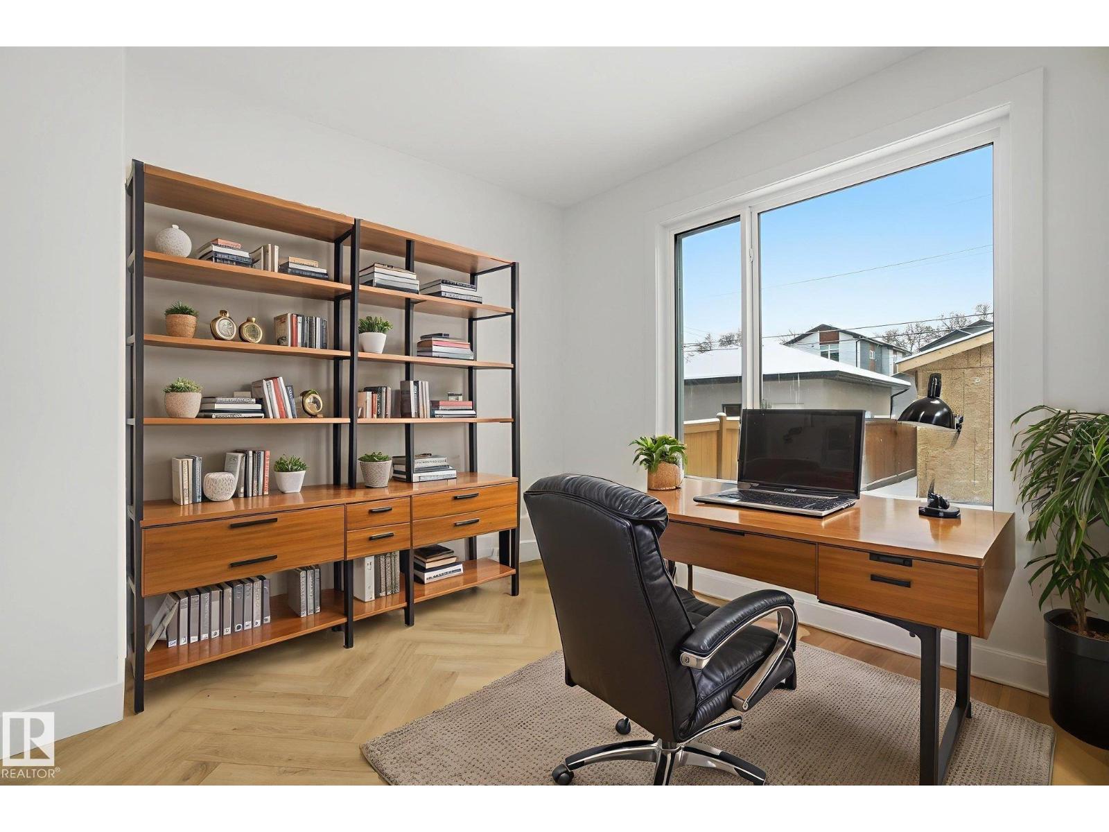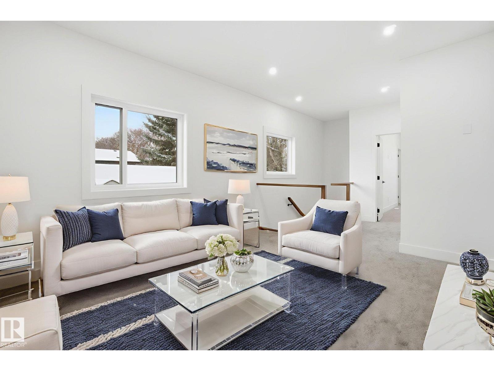 Welcome to the highly desirable neighborhood of Garneau—where modern design meets premium living in this brand new home that is a striking blend of style, comfort, and function. The main floor- 9' ceilings and luxury vinyl plank flooring set the tone for upscale living. A flex room offers versatility—ideal as a home office or guest bedroom. The open-concept living space features a gourmet kitchen with high-end finishes, seamlessly flowing into a cozy dining nook & LR with an elegant electric fireplace.Lg windows fill the space with natural light & overlook your sunny backyard.Upstairs also has 9' ceilings & a well-laid-out floor plan that includes a spacious primary suite with lg window,a balcony, 4-piece ensuite & a W/I closet.2 additional generous size bdrms, a bonus rm, a full 4-pc bthrm & convenient laundry rm complete the 2nd level.FF basement boasts a legal 2-bedroom suite with full kitchen, living room, in-suite laundry.Close to the University, Whyte Avenue, parks, schools, and all amenities (id:53676)