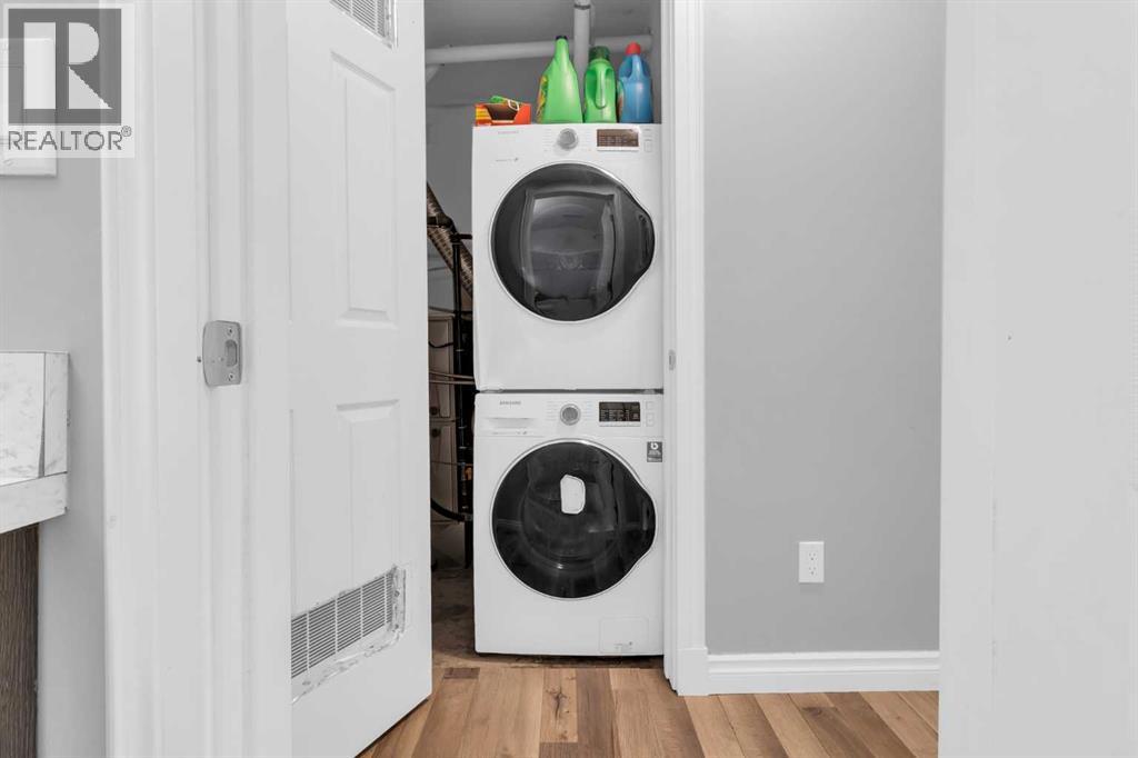 Incredible opportunity for first-time buyers, investors, or those looking to downsize. This charming 1-bedroom condo offers over 632 sq ft of living space with a private entrance and side porch. The open-concept layout flows seamlessly from the living and dining areas to a large, private, covered balcony — perfect for your morning coffee. The bright and spacious primary bedroom features large windows overlooking the balcony and generous closet space. The updated kitchen includes sleek cabinetry, newer stainless steel appliances, and a stacked washer and dryer conveniently located in the utility room. Additional upgrades includes a newer furnace and hot water tank. Enjoy the convenience of 1 Assigned parking stall*** (#11) included in condo fees. Located just minutes from downtown, schools, parks, shopping, and public transit, with quick access to Trans Canada, McKnight and Deerfoot Trail. Move-in ready with an excellent value and priced to sell — book your showing today with your favorite Realtor! (id:53676)