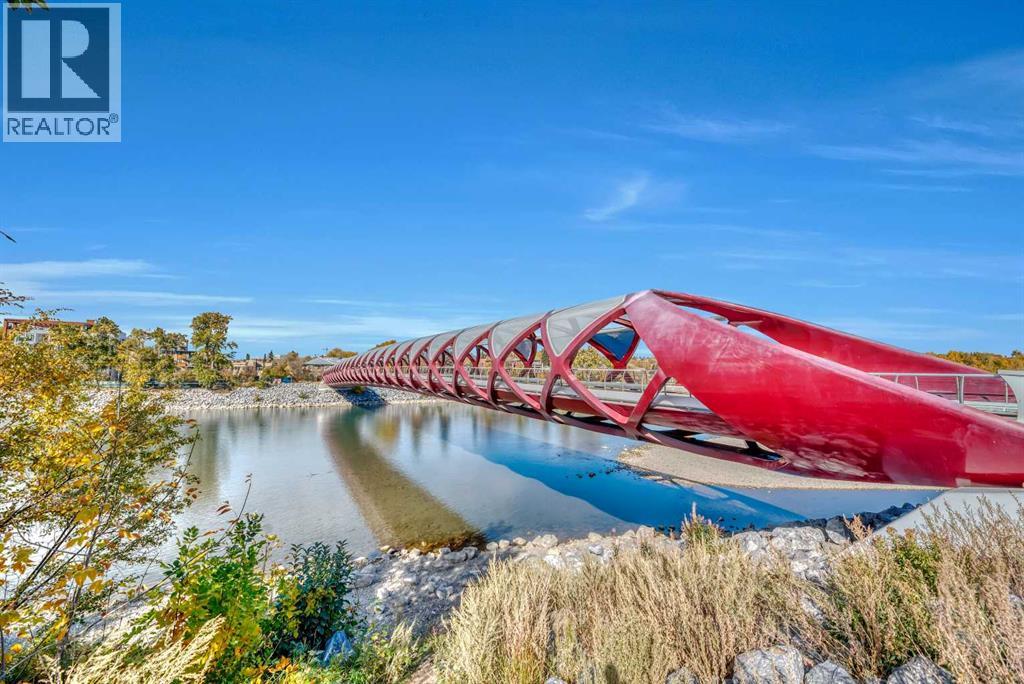 Recently updated, move-in ready, 2 bedroom end unit condo in a vibrant community just steps away from the Bow river pathway system, Eau Claire Market and Prince's Island Park plus a short walk to downtown offices. Take the elevator directly to your door and step into a spacious, bright open plan. The covered deck is private and has good views of the tree lined street(vs the back alley). Put your feet up and relax in front of the wood burning fireplace in the living room, with a great bar for entertaining and extra storage. The dining room has lots of room for hosting with a trendy light fixture and patio sliders to the balcony. The kitchen has been updated with lots of counter space and numerous white cabinets. The primary bedroom is large with a his/her closets and the second bedroom could also double as a home office. In-suite laundry, heated underground parking and additional storage locker makes this condo a WINNER in every respect. The building is well managed and is nice and quiet. Simply a wonderful, beautifully updated condo in an unbelievable location, allowing you to stroll along the river, sip coffees at the amazing nearby cafes. GREAT VALUE AND IMMEDIATE POSSESSION!! (id:53676)
