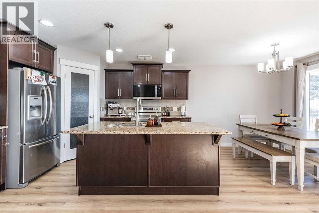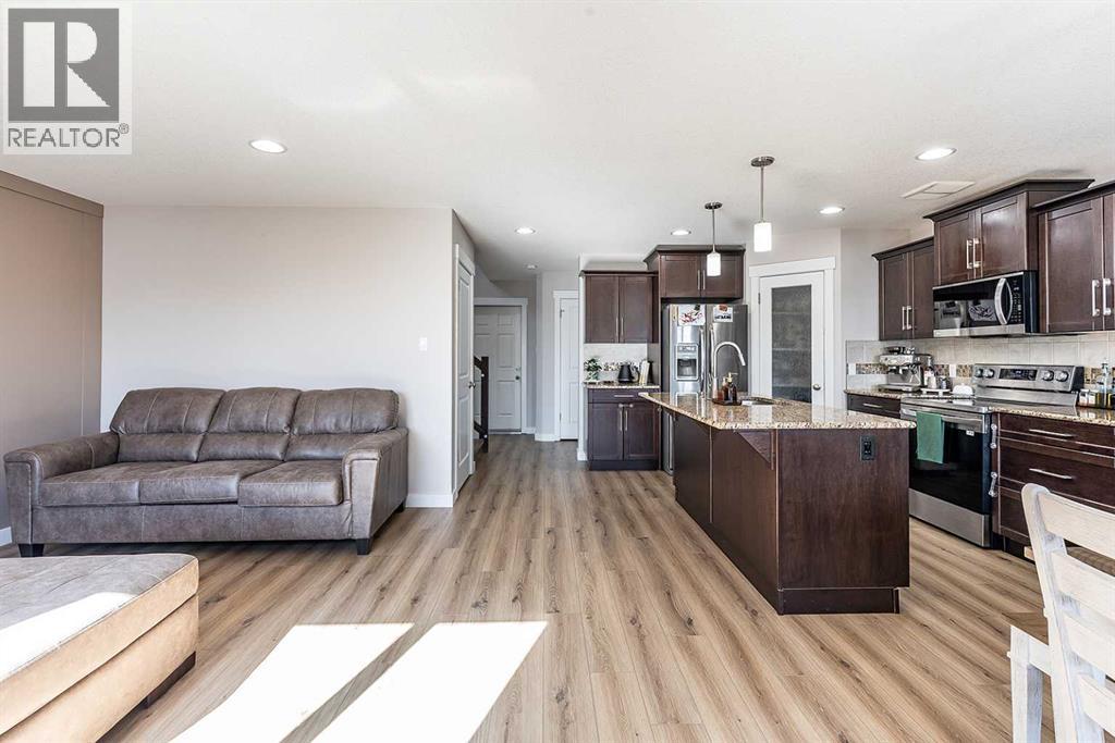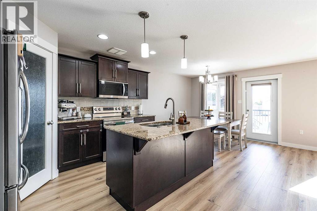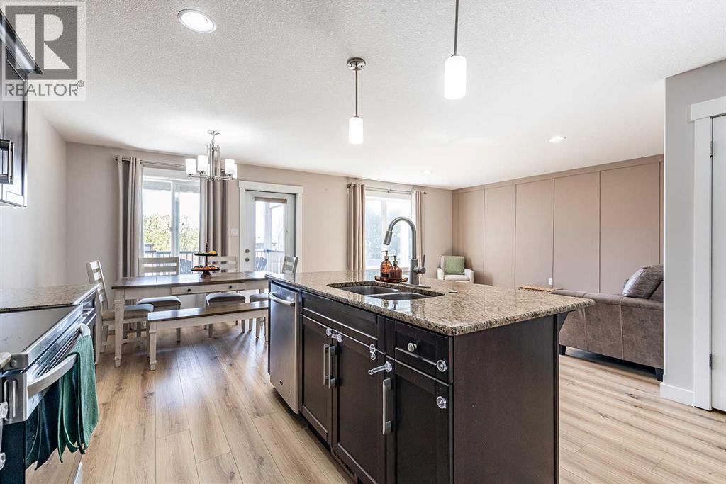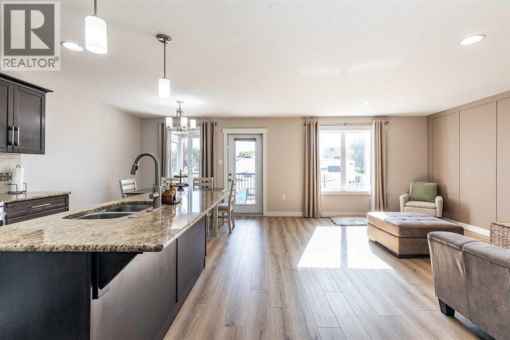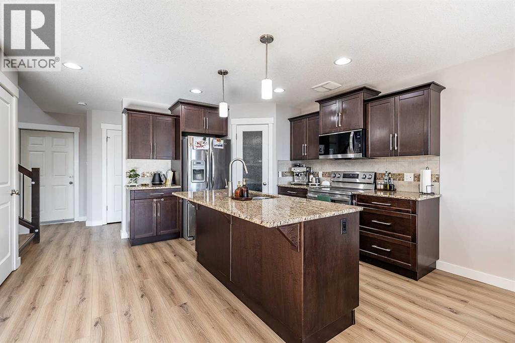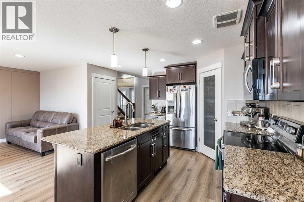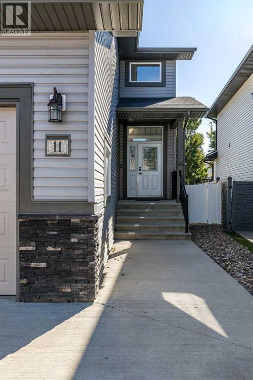 Welcome to one of the city's most family-friendly neighborhoods , with a classic two-storey layout and a fully developed basement. Welcome to 11 Sterling Link Southeast , a 1,719 square foot beauty close to parks, schools and walking paths on the south end of town. The home has great curb appeal with an extended front drive and a double attached garage in the front. The front foyer opens up to a great layout, the main floor is flooded with natural light with a fully equipped kitchen. Stainless steel appliances , granite countertops and and a corner pantry complete the kitchen that opens into the living space and access to the covered deck. The upper floor has 3 bedrooms including a great primary suite with ensuite and walk-in closet. The basement is fully developed with room for another bedroom if you need, but is currently a great spot for family time or to lay back and watch a movie or the game. The yard is a great size for the area with a shed included for extra storage. Come see if this home could be the one for you , contact your preferred agent today. (id:53676)