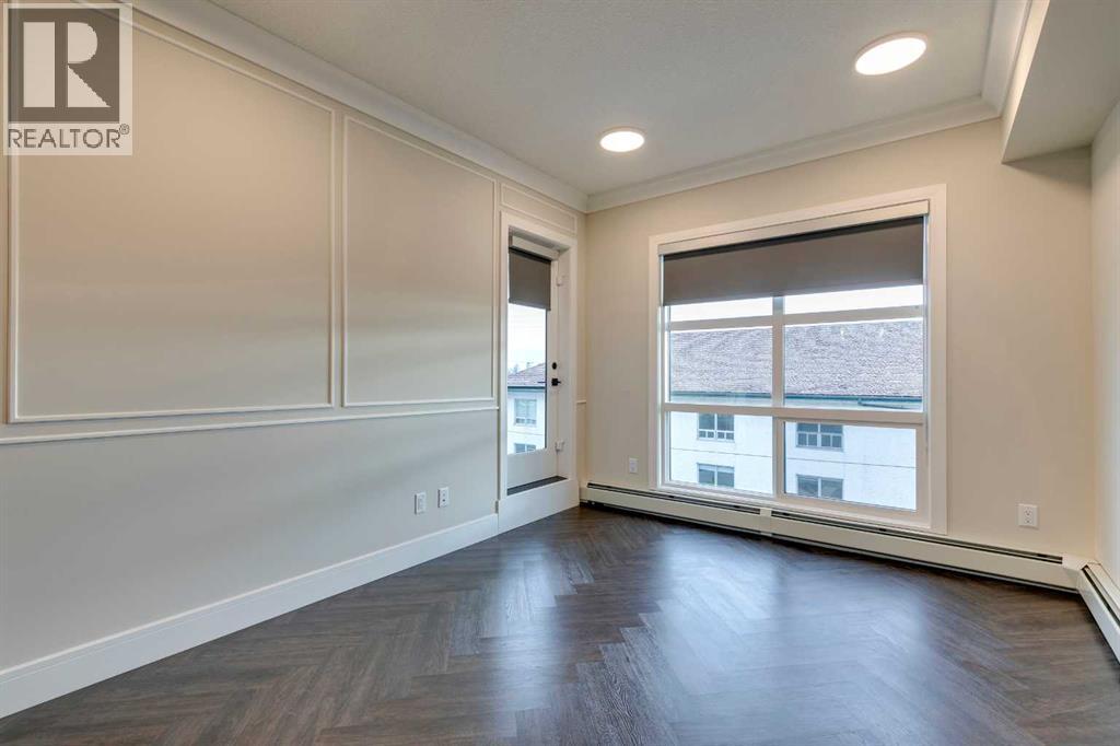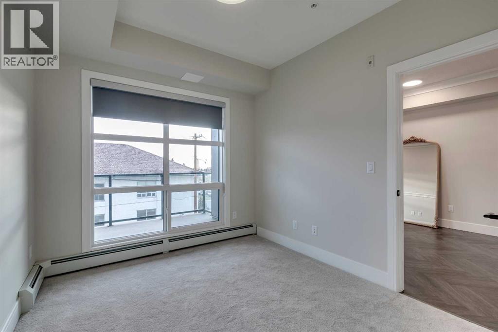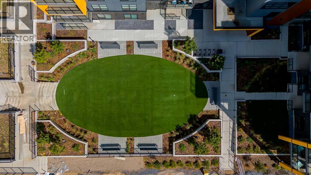 Welcome to the "VERDE" in Quesnay at Currie by Rohit Homes – a stunning 1 Bed + Den suite offering intelligently designed living in Calgary’s vibrant inner city. Featuring soaring 10’ ceilings, luxury vinyl plank flooring, and designer finishes curated by Louis Duncan-He, this home perfectly blends style and function. The open-concept layout includes a spacious kitchen with quartz countertops, ceiling-height cabinets, an elongated island, and stainless steel appliances. The central dining space flows seamlessly into the bright living area, while the den offers a flexible space for a home office, gym, or hobby room. Relax in the well-appointed primary bedroom, and enjoy warm summer evenings on your private balcony with a natural gas BBQ line. Additional highlights include in-suite laundry, secure underground parking, bike storage, and access to landscaped grounds and pathways. Built Green® certified, pet-friendly, and located minutes from downtown—Quesnay at Currie is urban living redefined. (id:53676)