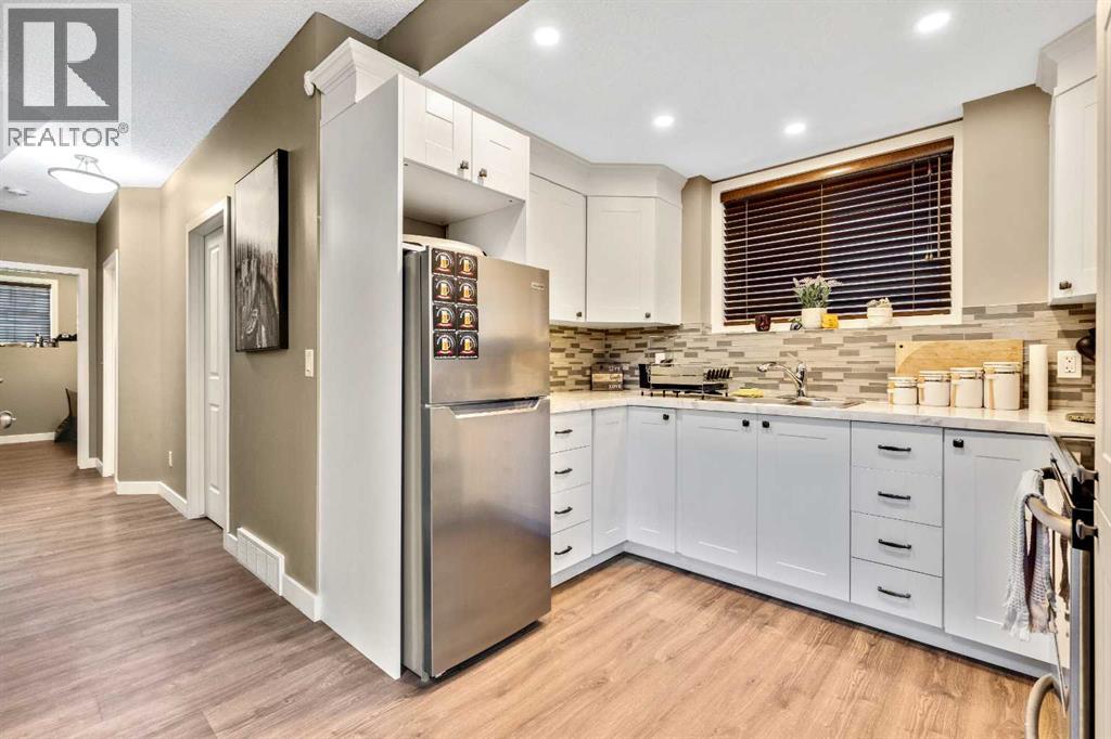 This open-style, two-bedroom bi-level home is in immaculate condition and uniquely situated on a spacious corner lot in the center of Coventry Hills. The lower illegal suite is in pristine condition, featuring its own separate walk-up entrance. Large bay windows on both levels allow for a significant amount of natural light. Do you own a trailer or RV? There's a poured concrete pad next to the garage, providing easy access from the alley for parking. The property also features an insulated, oversized double-car detached garage, ideal for mechanical or hobby enthusiasts, with a drop ceiling for storing miscellaneous or overflow items. Whether you enjoy entertaining or gardening, this backyard will impress any outdoor enthusiast with its meticulously maintained yard—lush, healthy green grass, an in-ground sprinkler system, a poured aggregate west-facing patio, garden boxes, and flower beds, and an enclosed fence. It looks stunning at first glance!The interior features a stunning maple kitchen equipped with a water filtration system, an ecobee thermostat, smart wired appliances, Lutron dimmer switches throughout the home, a security system + cameras (no contract), air conditioning, and a west-facing deck with drop-down shades. What more could you ask for? Recent updates include a new roof and siding, installed in 2025. (id:53676)