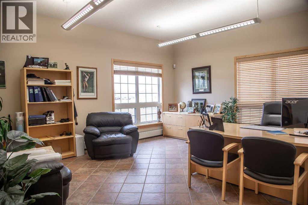 Could you imagine running your successful business all under one roof and yardsite on over 43 acres ,while still have plenty of space to grow your business? This property showcases above standard offices and shops. The main office building boasts over 7400 sq ft on the top level with a general reception area ,stunning fireplace, 16 private offices, staff kitchen,boardroom, four washrooms as well as a file room, heated with dual heating system, forced air on main as well as in-floor heat in the basement area which will be perfect for your expansion as your business grows. The heated steel frame concrete shop boasts over 20,000 sq ft finished with metal clad and concrete block construction and is home to nine overhead doors in the back ,seven overhead doors in the front allowing easy access for all the equipment ,plus ten man doors, this building has been divided into 8 bays,including a wash bay,two larger repair bays, two small repair bays, and the shop is equipped with two 5-tonne cranes as well as two 7-tonne cranes, add to this a 2000 sq. ft. office space including a boardroom,kitchen and meeting room. There is an additional 3200 sq ft cold storage building as well as a few other outbuildings. This property is on the main highway 35 frontage, giving optimal exposure. The rest of the grounds had gravel added giving easy development to expand. If you have been looking for a very well maintained property ,that offers all the square footage and space for your business to be successful and grow then you will want to make sure you do not pass this property by... (id:53676)