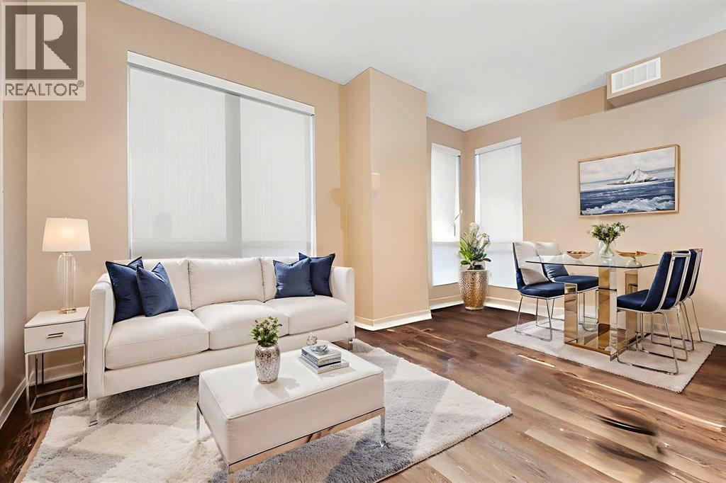 Perched on the 11th floor with sweeping, unobstructed views of the River Valley and Rocky Mountains, this bright corner unit combines comfort, functionality, and an unbeatable location. Featuring an open-concept layout, the home offers laminate flooring in the living and dining areas, creating a fresh and modern feel throughout the main living space. The kitchen is well-appointed with generous cabinetry, ample counter space, and a sunny window that floods the space with natural light. Two spacious bedrooms provide flexible living options, while a 4-piece bathroom with soaker tub, insuite laundry, and a titled indoor parking stall add everyday convenience. Residents of The Vantage enjoy access to a fitness centre, bike storage, and concierge services, all within walking distance to shopping, restaurants, the river pathway system, and downtown. Whether you're a first-time buyer, urban professional, or savvy investor, this unit offers exceptional value and incredible views in one of the city’s most desirable locations. (id:53676)