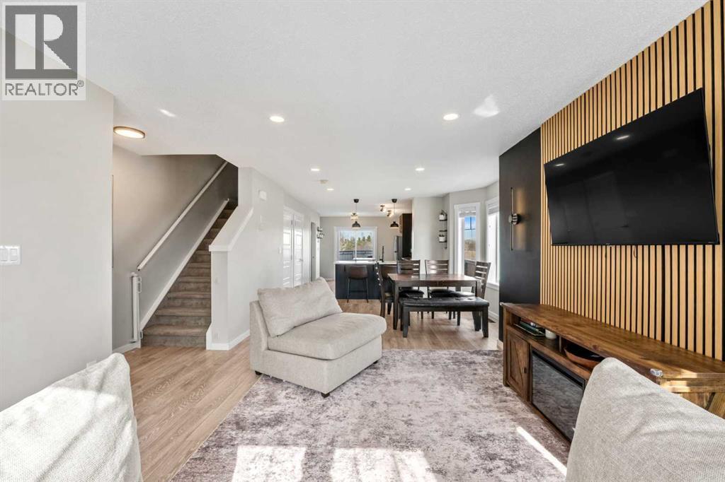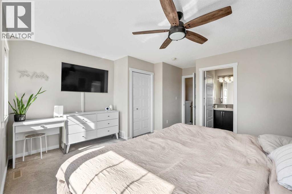 Welcome to a truly rare end-unit in Ravenswood. A property that stands out the moment you arrive and only gets better the more you take it in. Perfectly positioned beside open farmland with NO NEIGHBOURS BESIDE on one side OR BEHIND, this home offers a level of privacy and peace that is almost impossible to find in a townhome complex. From the moment you step inside, you’re greeted by an open, airy layout filled with natural light and a sense of calm that instantly feels like home. The SOUTH-FACING front yard welcomes in beautiful natural light throughout the day, while the expansive prairie views create a stunning and ever-changing backdrop from your main living areas. Imagine slow mornings with coffee as the sun rises over the fields… and evenings where the sky puts on a show you’ll never get tired of. And on those warm summer days? You’ll stay perfectly comfortable with central AIR CONDITIONING, giving you the best of both worlds—bright living without the heat. Beyond the beauty, this home was built with longevity and affordable, efficient living in mind. Featuring durable JAMES HARDIE plank siding, along with an EN furnace and windows, it offers peace of mind and lower long-term costs. The kitchen is designed for both everyday living and entertaining, featuring GRANITE countertops, STAINLESS STEEL appliances, modern cabinetry, and a functional ISLAND that brings everyone together. The spacious dining area flows seamlessly into the living space—perfect for hosting or simply enjoying your own quiet retreat. Upstairs, you’ll find two generously sized primary bedrooms, each complete with their own 4-piece ensuite, offering flexibility for guests, roommates, or a growing family. And then there’s the FULLY DEVELOPED BASEMENT, professionally completed with permits, adding even more living space with a third bedroom, a beautiful 3-piece bathroom with glass walk-in shower, and a cozy rec space perfect for movie nights, guests, or a private retreat. Step outside to your FULLY FENCED BACKYARD, ideal for your four-legged family members or little ones to play safely, all while enjoying the rare benefit of no rear neighbours. As an added bonus, residents of the complex enjoy access to a private ON-SITE PET WASH—making cleanup after walks and outdoor adventures easy and convenient.Located just minutes from Kingsview Market, you’ll have easy access to shops, dining, services, and everyday essentials—making this home as convenient as it is peaceful. If you’ve been waiting for something that feels different from everything else on the market… this is it. (id:53676)
