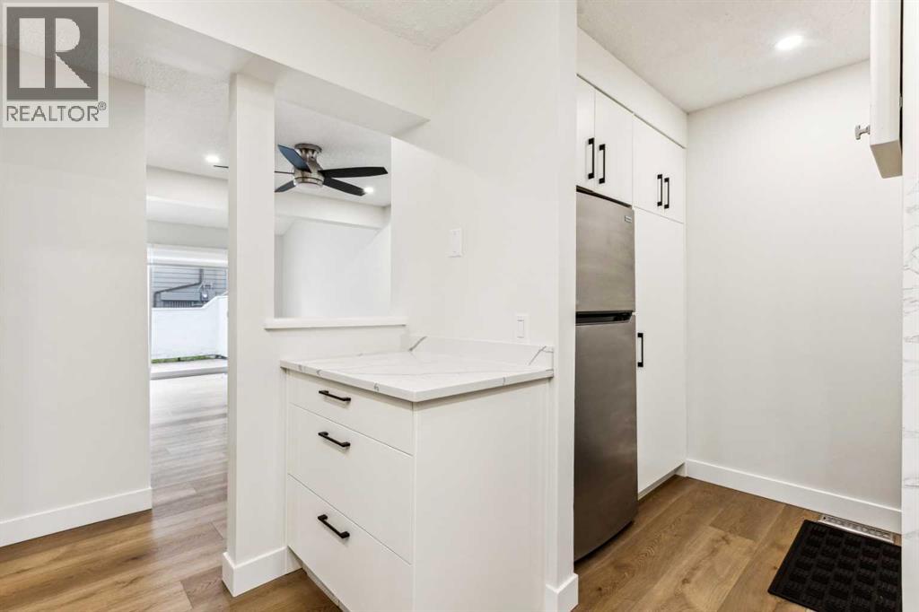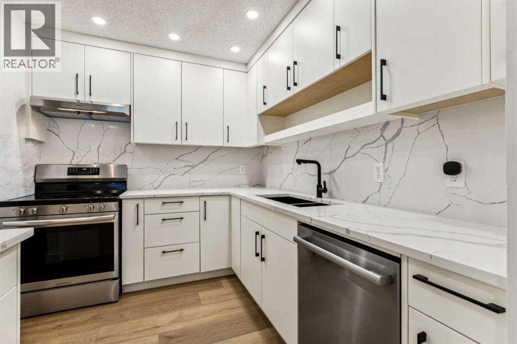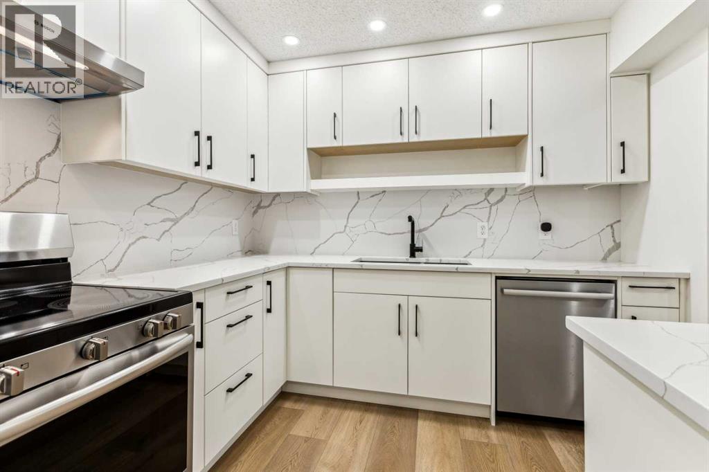 Welcome to this stunning, fully renovated 3-bedroom bungalow style townhouse nestled in the heart of Oakridge. This bright and modern unit offers an open-concept layout with vaulted ceilings and luxury vinyl plank flooring throughout. The beautifully updated kitchen boasts brand-new full height cabinetry, quartz countertops and backsplash and all new stainless steel appliances—perfect for cooking and entertaining. The spacious living and dining area flows seamlessly out to your private patio, ideal for BBQs and summer nights.The roomy primary bedroom features custom built closet organizers. Two additional bedrooms are perfect for family, guests, or a home office. The sleek and modern bathroom has been updated, and the in-suite laundry with BOSCH washer/dryer plus extra storage options.Additional features include all new baseboards and trims, new lighting fixtures, plumbing fixtures, fresh paint throughout, new window coverings, newer high efficiency furnace and a dedicated covered parking stall right outside your door. Located steps away from Glenmore Reservoir, beautiful green spaces, and some of Calgary’s top schools, this home is also conveniently close to shopping, restaurants, and the Southland Leisure Centre. Easy access to Stoney Trail, Glenmore Trail, and public transit makes commuting a breeze.Move in and enjoy all the modern comforts of this stylish Oakridge home! (id:53676)