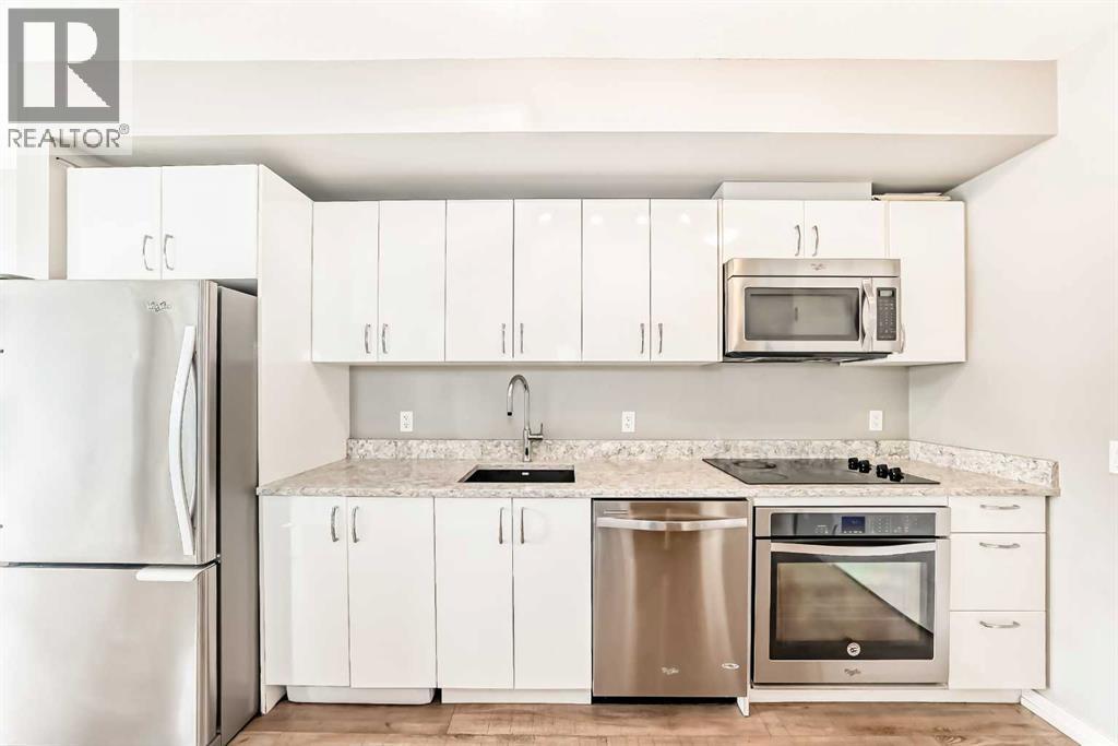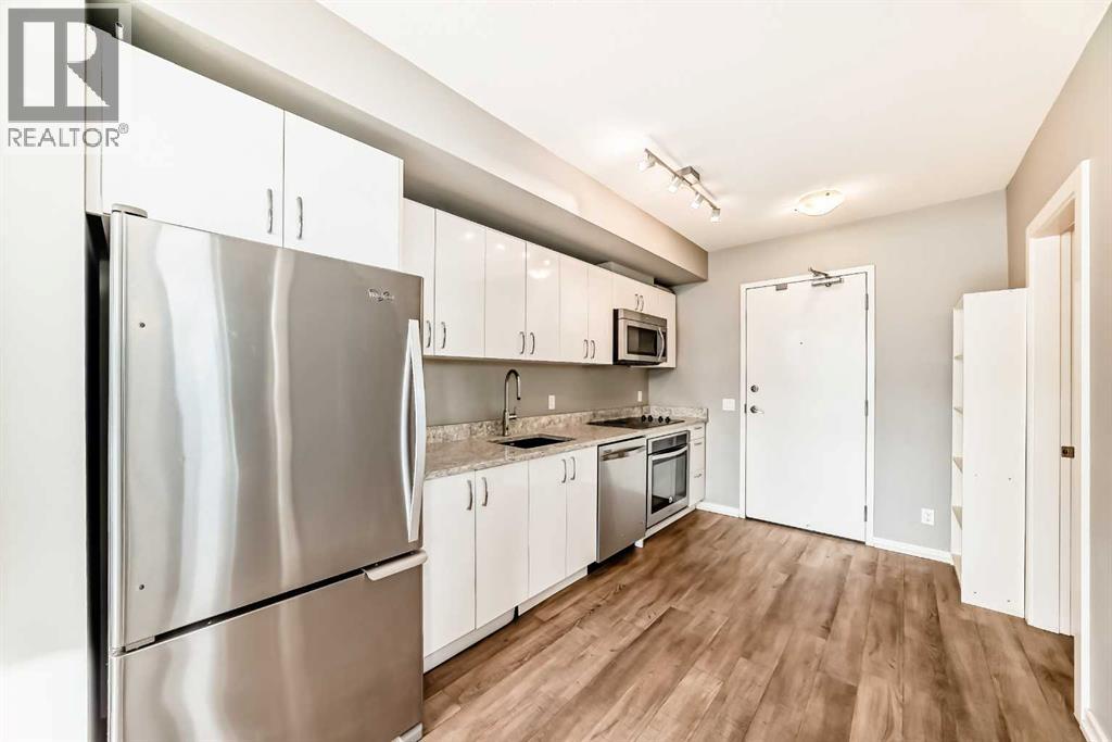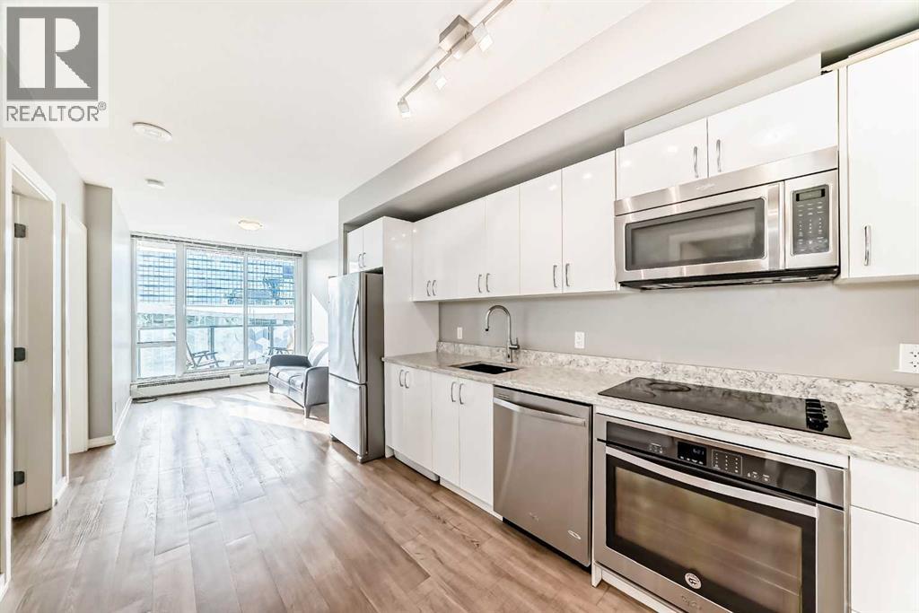 Welcome to this wonderful 2-bedroom, 1-bath apartment nestled in the vibrant inner-city neighborhood of Downtown East Village. This open-concept unit features stylish flooring throughout. The spacious living room extends to an inviting balcony, perfect for relaxation while enjoying breathtaking city and river views. The modern kitchen is equipped with sleek cabinetry and appliances, while two sizable bedrooms are filled with natural light. A well-appointed bathroom completes this functional layout. For added convenience, underground bicycle storage is available. This apartment also offers a range of amenities, including a party room, fitness center, 24-hour security, a rooftop terrace, and more. Ideally located within walking distance of everything East Village has to offer—Central Library, C-Train, Studio Bell & Arts Centre, Bow River Pathways, Real Canadian Superstore, and a variety of restaurants, coffee shops, and bars. Book your private showing today! (id:53676)