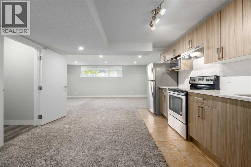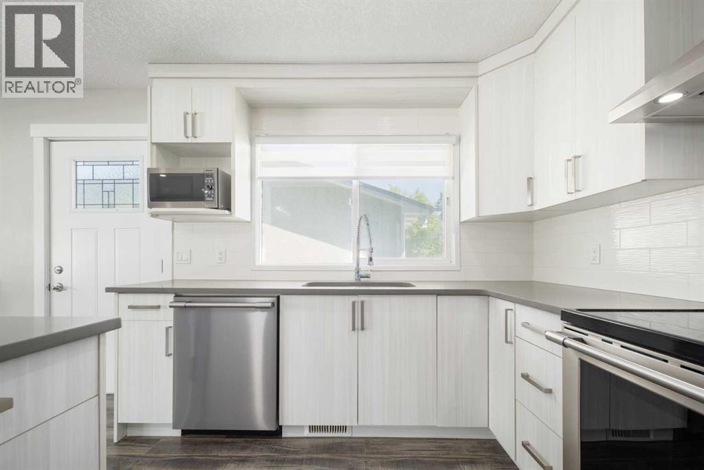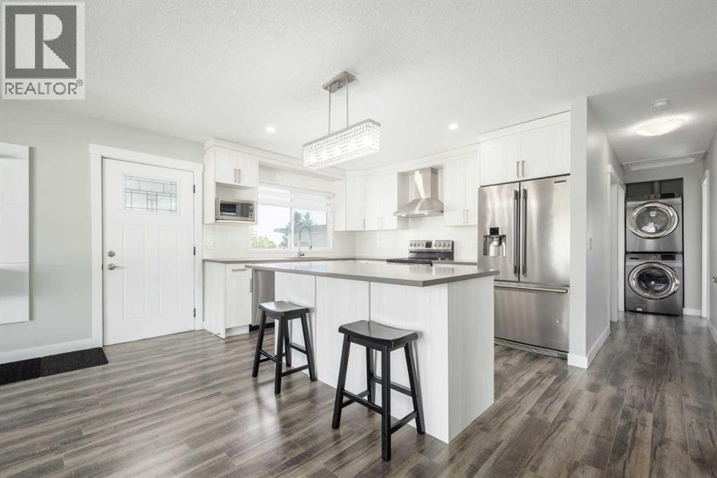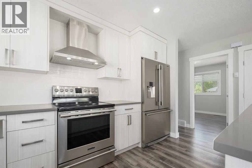 This beautifully updated home offers incredible value and flexibility, perfect for both homeowners and investors alike. Set on a quiet street with easy access to transit, schools, shopping, and parks, this property has been thoughtfully renovated from top to bottom in 2018 (including a new roof) for peace of mind and modern comfort. The main level boasts +1,000 sq ft of bright, stylish living space with laminate plank flooring, large windows that brighten the home with natural light and a cozy wood-burning fireplace that anchors the main living area. The kitchen features a large central island w/breakfast bar seating, pristine off-white cabinetry with silver hardware, dual sink with window overlooking the backyard and SS appliances including french door fridge w/bottom freezer, electric stove, OTR hood fan, built-in dishwasher & microwave, perfect for any home chef. A door leading to the side deck and into the backyard makes hosting summer BBQs a breeze. The main layout also includes three generously sized bedrooms, a full 3pc bathroom (with glass shower) and a convenient 2pc ensuite in the primary bedroom. The lower level features a fully finished basement suite (illegal) with its own separate entrance, ideal for extended family or potential rental income. This suite includes large windows, updated SS appliances (fridge, stove, OTR hood fan & microwave), private laundry (side-by-side washer & dryer), and an efficient layout for comfortable, independent living. 2 good-sized bedrooms (one w/ walk-in closet) a shared 4pc bathroom (w/ tub/shower combo) & large rec room (customizable to your liking) nicely finish off the lower level. Outside, enjoy summer evenings on the newer patio, perfect for gatherings, while the paved carport offers stylish and functional covered parking for the winter months. With all the major updates complete, this home is move-in ready and a smart option in a location that truly delivers. Don't miss your opportunity to own this gem! Schedule yo ur viewing today! (id:53676)