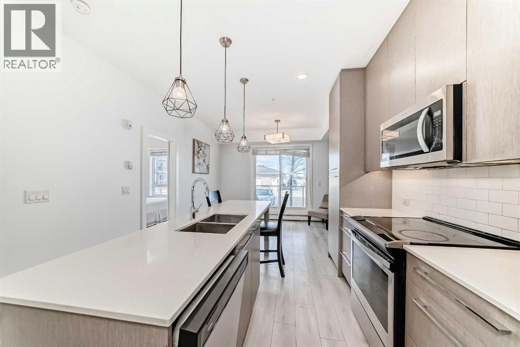 **Back on the market - Buyer's unable to secure financing** | MOVE IN READY | 2 BED | 2 BATHS | TITLED UNDERGROUND PARKING, STORAGE | LOTS OF AMENITIES| Welcome to 1104, 76 Cornerstone Passage NE. Discover the ultimate blend of style, functionality, and affordability in this stunning Main Floor Condo. This incredible property offers accessibility and convenience with the Titled Underground Heated Parking and Storage. 2 Spacious Bedrooms with 2 Full Bathrooms, Laminate Flooring and Tile Bathrooms for a touch of elegance, In-suite Laundry with Full-Size Washer and Dryer, Upgraded Stainless Steel Appliances, Quartz Counter Tops and ample Kitchen Cabinets for storage. The addition of high ceilings and a bright open space further elevates the appeal of this home. High ceilings create a sense of spaciousness and airiness, making the living areas feel more expansive and inviting. The Legends Complex offers a plethora of outstanding amenities for its residents; Fitness Centre and Yoga Room for staying active, Dog spa and pet-friendly community (upon board approval), Theatre Room, Kids' Playroom, and Party Event Room for entertainment and Community Garden. Cornerstone is a newer community in Calgary with easy access to Airport, Cross Iron Mall, Cosco and Stoney Trail. This incredible condo is available for immediate possession. Don’t miss out on this prime opportunity! (id:53676)