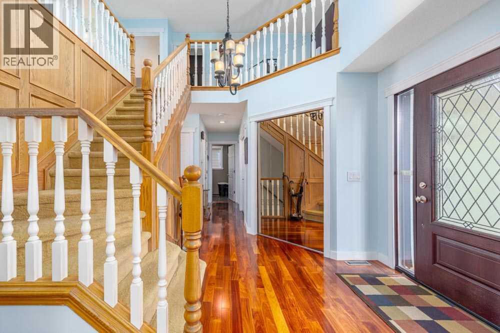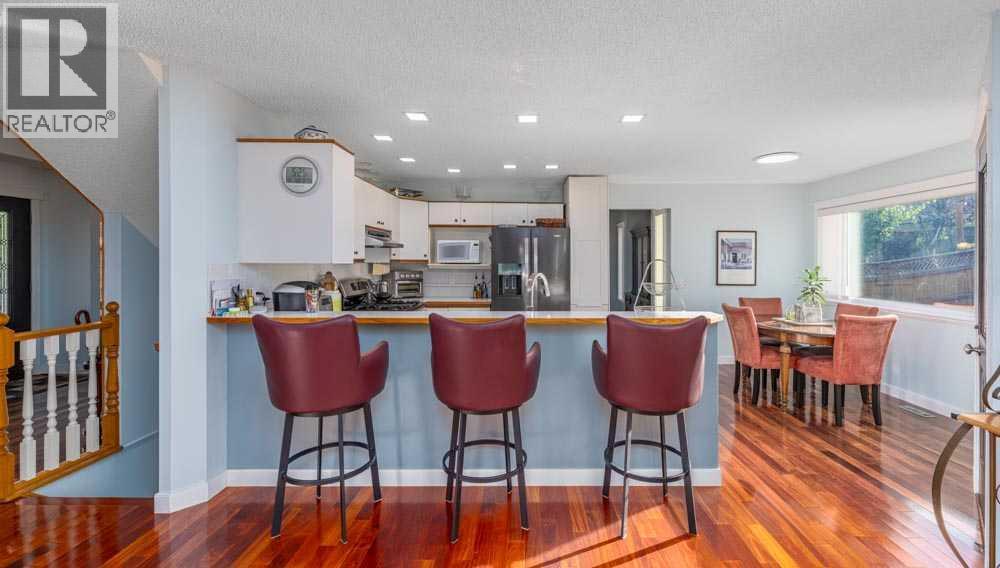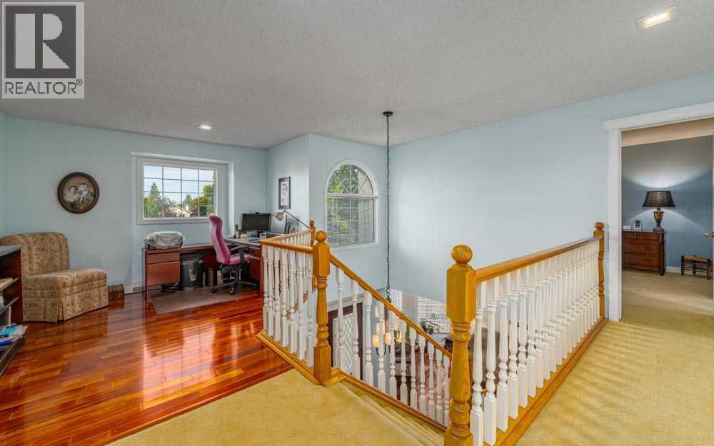 Welcome to Deer River Estates, one of Calgary's finest hidden gems. This charming and exclusive neighborhood is known for its character, private access to Fish Creek Park, and it has even been home to a few NHL legends over the years. This 3-bedroom family home provides approximately 3,200 sq ft and is designed for comfort, functionality, and modern family living. Every detail has been carefully considered, with premium upgrades including new windows, a tankless hot water system, central air conditioning, a high-efficiency two-stage furnace, and rich cherry hardwood floors and much more. Flexible living spaces cater to every family's needs, such as unique upper loft perfect as a den, playroom, or home office. The functional U-shaped kitchen overlooks the living room with a cozy wood-burning fireplace, an eat-in area, and bar seating all bathed in natural light and offering views of the west-facing private fenced backyard. The upper level hosts a spacious primary suite measuring an impressive 11.5 x 19.5, complete with a walk-in closet and a 5-piece ensuite bathroom. An additional 2 bedrooms and full bathroom and the loft complete this upper level. The fully finished basement features an open rec room, a designated gym that can be converted into an additional bedroom, and a utility room with ample storage and a workbench offering flexibility to suit your family's needs. Outside this home has a unique feeling of privacy by facing a community greenspace and also the backyard backs onto a large greenspace with access to extensive walking trails and an off-leash area for pets. Freshly painted and move-in ready, this home is ready for its next chapter a place to create memories, celebrate milestones, and grow together as a family. (id:53676)