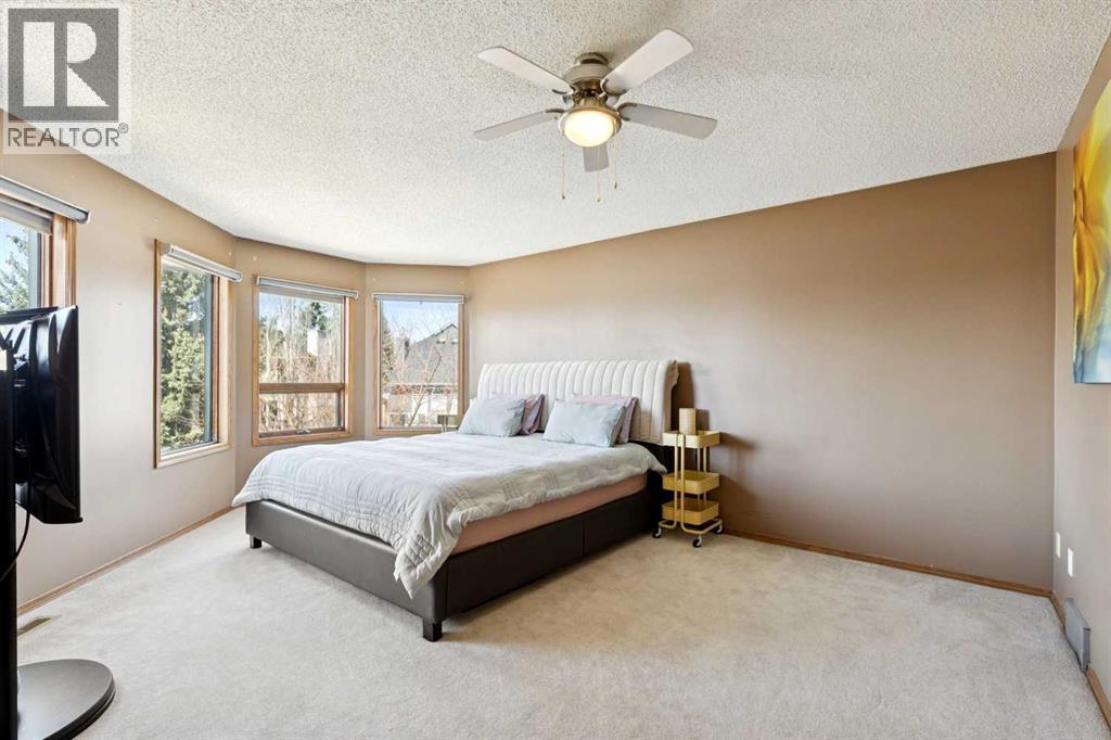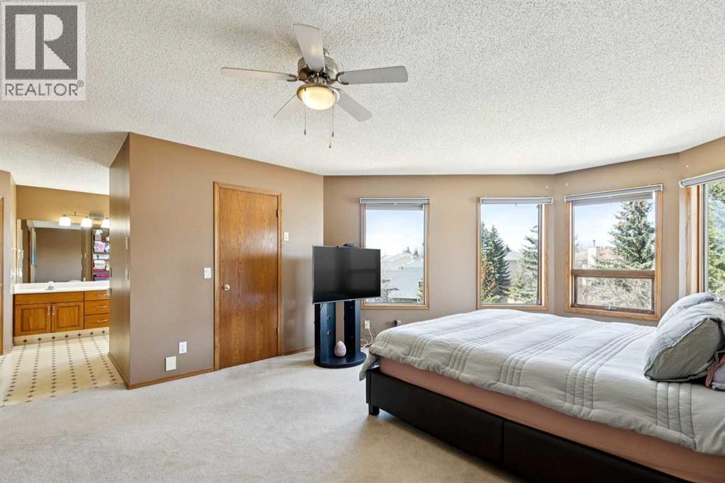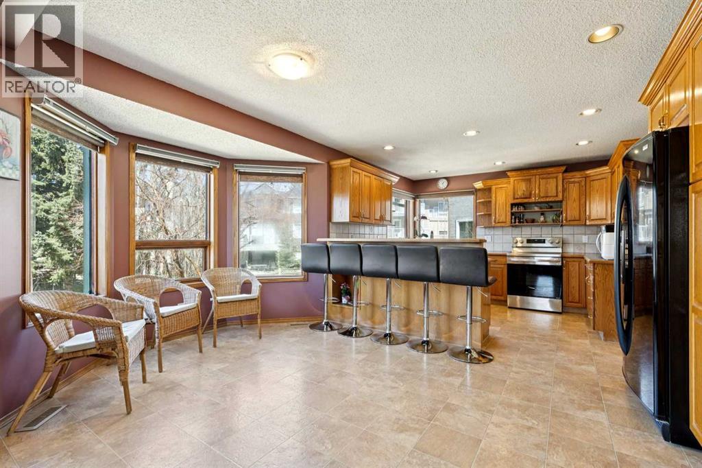 Located in the prestigious estate area of Scenic Acres, this 2,444 sq. ft. two-storey home offers 5 bedrooms (3+2) and a fully developed walkout basement on a massive 8,730 sq. ft. pie-shaped lot. Enjoy the convenience of a triple garage (double plus tandem) and the beauty of a quiet court location with a sunny west-facing, park-like backyard—fully fenced with underground sprinklers, multiple trees, and lush gardens. Inside, vaulted ceilings and hardwood floors enhance the traditional layout, featuring a bright living and dining room, and a spacious oak kitchen with stainless steel appliances. Off the kitchen, step onto a wrap-around deck or relax in the main-floor family room with a cozy fireplace. Enjoy partial mountain views and even the northern lights on clear nights. Upstairs, the primary suite includes a walk-in closet and 5-piece ensuite with jetted tub, complemented by two additional bedrooms and a 4-piece main bath. The walkout basement expands the living space with a large recreation area, two more bedrooms, and another full bathroom—perfect for guests, teens, or extended family. Recent updates include complete Poly-B removal, two newer furnaces, and two hot water tanks. Ideally situated near parks, pathways, schools, shopping, and the LRT, with easy access to Crowchild and Stoney Trail—this home offers the perfect blend of comfort, functionality, and location. (id:53676)