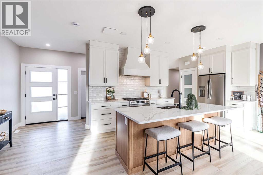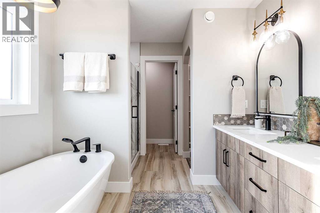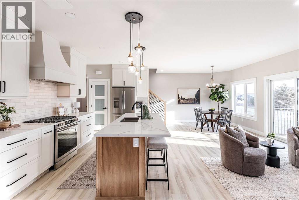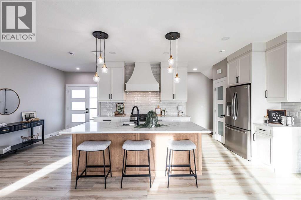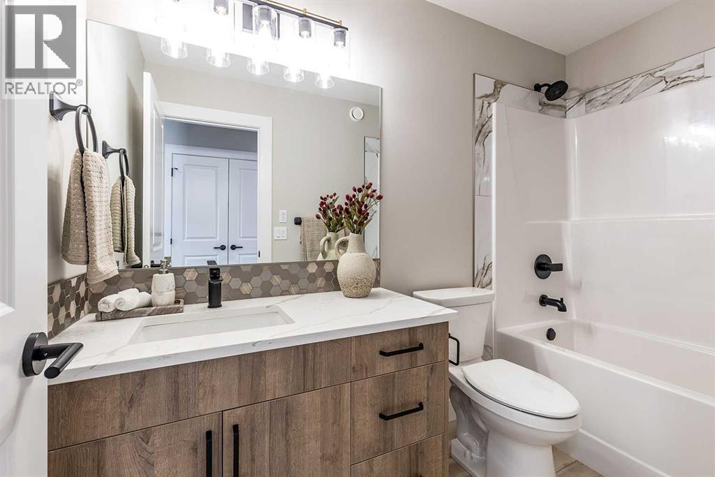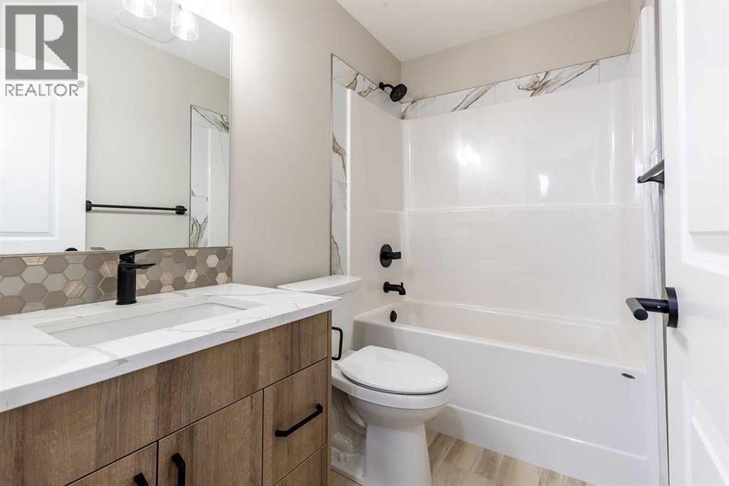 Welcome to your future home in the beautiful SW Southridge neighbourhood! This brand new, never occupied 1,659 sqft two storey by Adorah Homes offers the perfect blend of modern design and thoughtful functionality. This is your chance to secure a fresh, untouched home in a desirable location close to schools, parks and walking paths. The main floor welcomes you with a bright, open concept layout featuring durable and stylish vinyl plank flooring throughout the great room, dining area, and kitchen. The kitchen is a showstopper with its custom maple cabinetry, quartz countertops and a large functional stained maple island. Step outside to your covered east facing back deck-with pine soffit to the underside of the roof deck vault, an ideal spot for morning coffee or evening BBQs. Upstairs, the Primary is designed to impress with a luxurious ensuite complete with a relaxing soaker tub, double vanity, tiled shower, and a walk-in closet. Two additional bedrooms, a full 4 pc bath, and convenient upstairs laundry with a pull down rod and cabinets to complete the upper level. The fully finished basement adds even more flexibility to the home, offering a large family room with a built in modern entertainment unit and dry bar, a fourth bedroom, and an additional 4 pc bathroom. A finished, heated double car garage with floor drain and driveway provide plenty of parking and storage space. Don’t miss the chance to own a brand new home in one of the city’s most family friendly neighbourhoods. With construction now complete, you can look forward to moving into a home where everything is fresh, modern, and waiting for you! (id:53676)