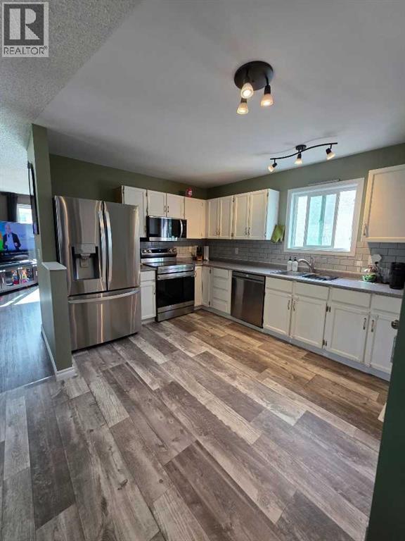 Welcome to this warm and inviting family home with wide open spaces and good sized bedrooms, perfect for comfortable living and making lasting memories. Boasting 5 spacious bedrooms and 2 bathrooms, this residence offers ample space for growing families or hosting guests. The primary bedroom features a walk through closet that joins with the upstairs bathroom. The huge family room is ideal for relaxing, entertaining, or spending quality time together. Enjoy plenty of natural light throughout, creating a bright and airy atmosphere in every room. Step outside to a great backyard, perfect for kids to play, gardening, or weekend barbecues. This home is a true blend of space, warmth, and functionality—ready for your family to move in and make it their own. Updates include: some fresh paint 2025, seamless eaves 2021; windows, doors and siding in 2019, furnace in 2019 . Laminate and vinyl plank flooring in 2020. Definitely a must see! (id:53676)