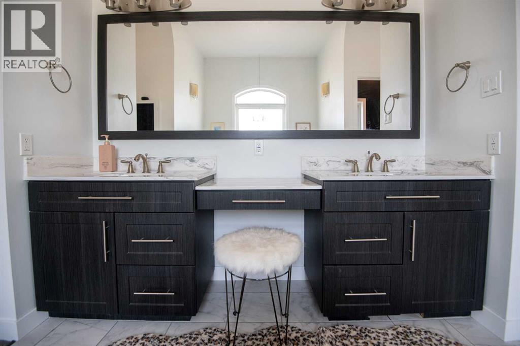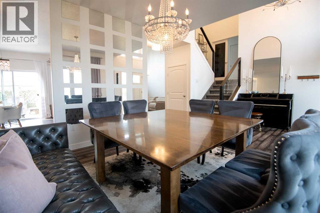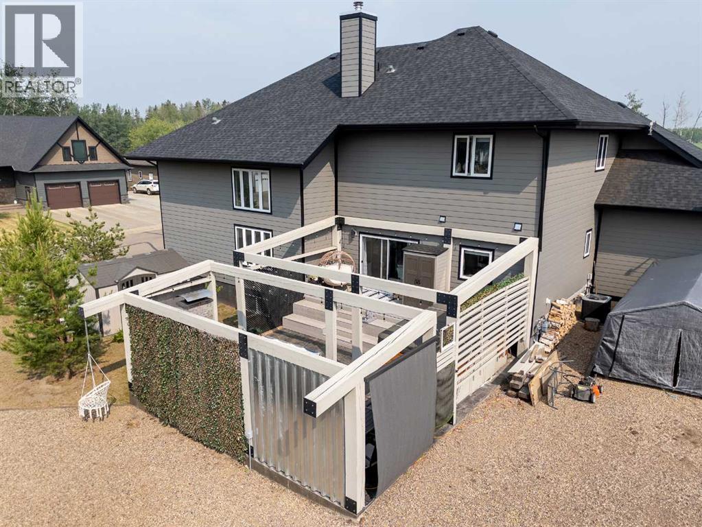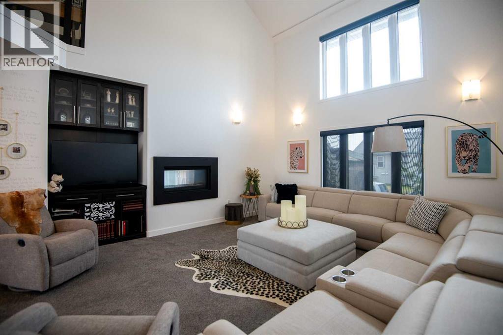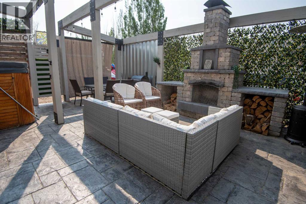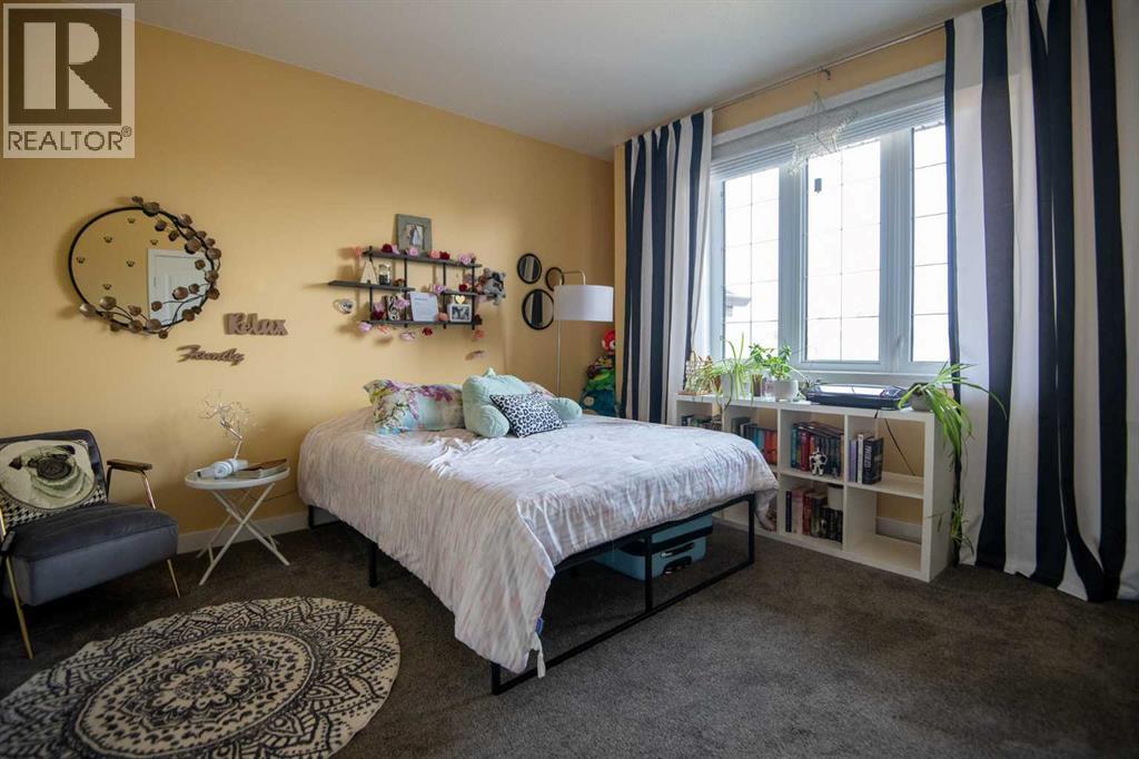 Welcome to this beautifully designed 2,576 sq ft home offering 6 bedrooms and 3.5 bathrooms across a spacious, functional layout. The private primary suite occupies its own floor and features two walk-in closets, a luxurious ensuite with a jetted tub, separate shower, and double vanity. Upstairs, you’ll find three generously sized bedrooms and a full bathroom with a double vanity—perfect for busy family mornings. The basement includes two more bedrooms, a stylish bathroom, and a dedicated theater room that’s perfect for entertaining. The main floor boasts a modern kitchen with quartz countertops, stainless steel appliances, and an induction cooktop. There's also a convenient laundry room with a sink, plus a cozy living space with a gas fireplace and smart home upgrades throughout. Electric blinds in the living room and a wired backup generator add both comfort and peace of mind. Step outside to your own backyard oasis—featuring a large stamped concrete patio with a fireplace, and two sheds for extra storage. (id:53676)
