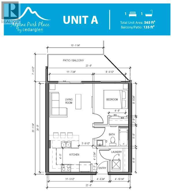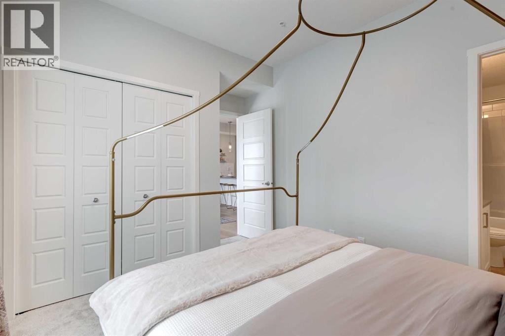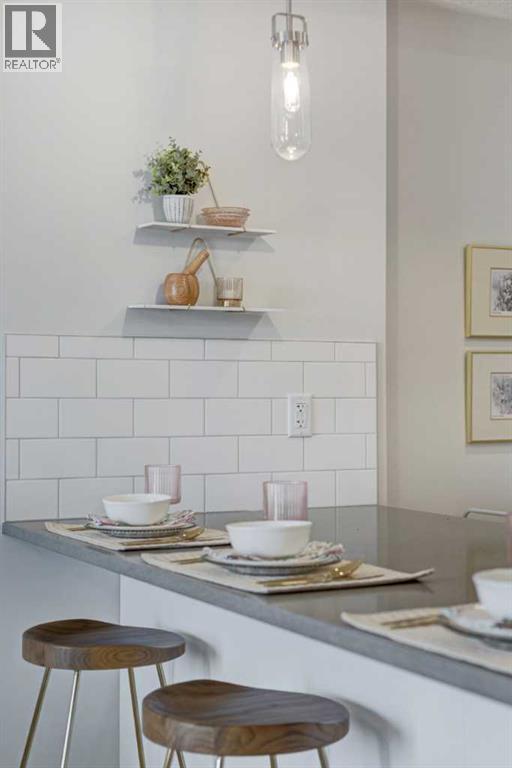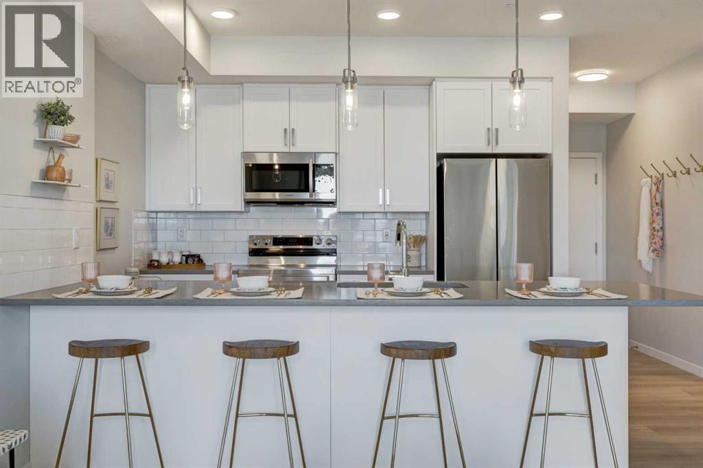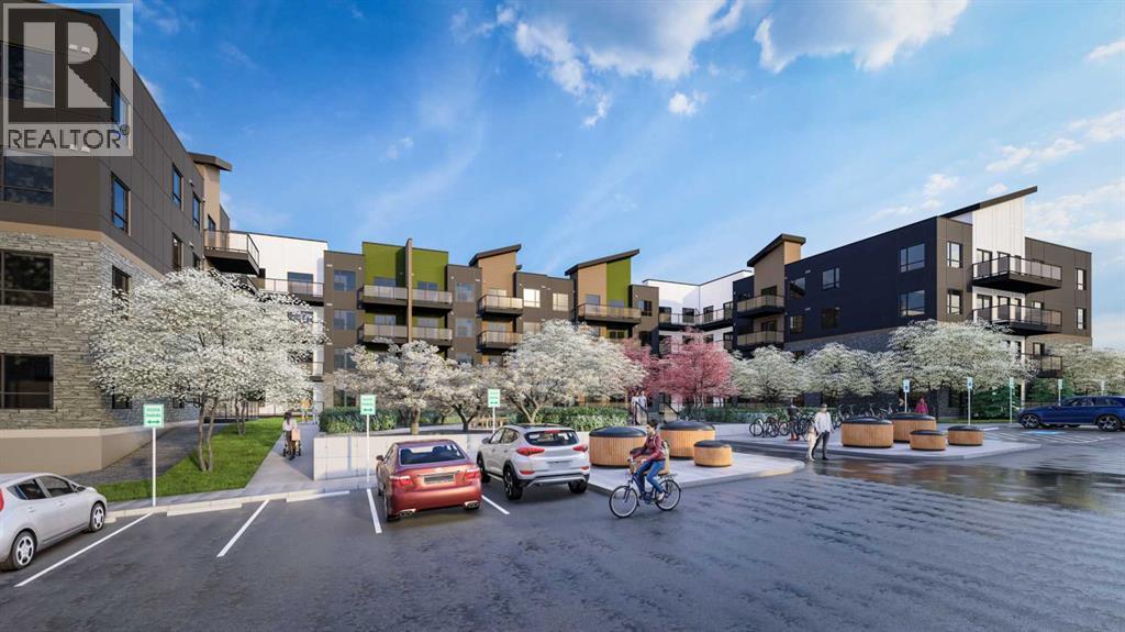 INTRODUCING ALPINE PARK PLACE, IN BEAUTIFUL SOUTHWEST CALGARY. BUILT BY CEDARGLEN LIVING, WINNER OF THE CustomerInsight BUILDER OF CHOICE AWARD, 5 YEARS RUNNING! BRAND NEW "A" unit with high-spec features. You will feel right at home in this well thought-out, 514. RMS sq.ft. (565 sq.ft. builder size). 1 bed, 1 bath home with open plan, 9' ceilings, LVP flooring throughout common areas, carpets in the bedrooms and closets, Low E triple glazed windows, BBQ gas line on the patio, Fresh Air System (ERV), and so much more. The kitchen is spectacular with full height cabinets, quartz counters, undermount sink, rough-in water line to the fridge and S/S appliances. The island is extensive with built in flush breakfast bar, which transitions into the spacious living area, perfect for entertaining. The spacious bedroom has a large bright window (triple pane windows) and sizeable closet. Right beside your bedroom is a 4pc bath with quartz counters, and undermount sink. Nearby is the spacious laundry/storage room, this is a must see (washer & dryer included). Highlights include: Hardie board siding, designer lighting package, sound reducing membrane to reduce sound transmission between floors, clear glass railing to balconies and 1 titled surface parking stall included (storage lockers available for purchase). A once in a lifetime community in Southwest Calgary. PET FRIENDLY COMPLEX, PRE-CONSTRUCTION OPPORTUNITY, PURCHASER CAN STILL MAKE SELECTIONS, and PHOTOS ARE OF A DIFFERENT SHOW SUITE FOR REFERENCE ONLY, FINISHING'S/PLAN WILL DIFFER. ESTIMATED COMPLETION RANGE IS JUNE 2026-JUNE 2027. VISIT THE SHOW SUITE TODAY FOR MORE INFO & FALL PROMOTION! (id:53676)