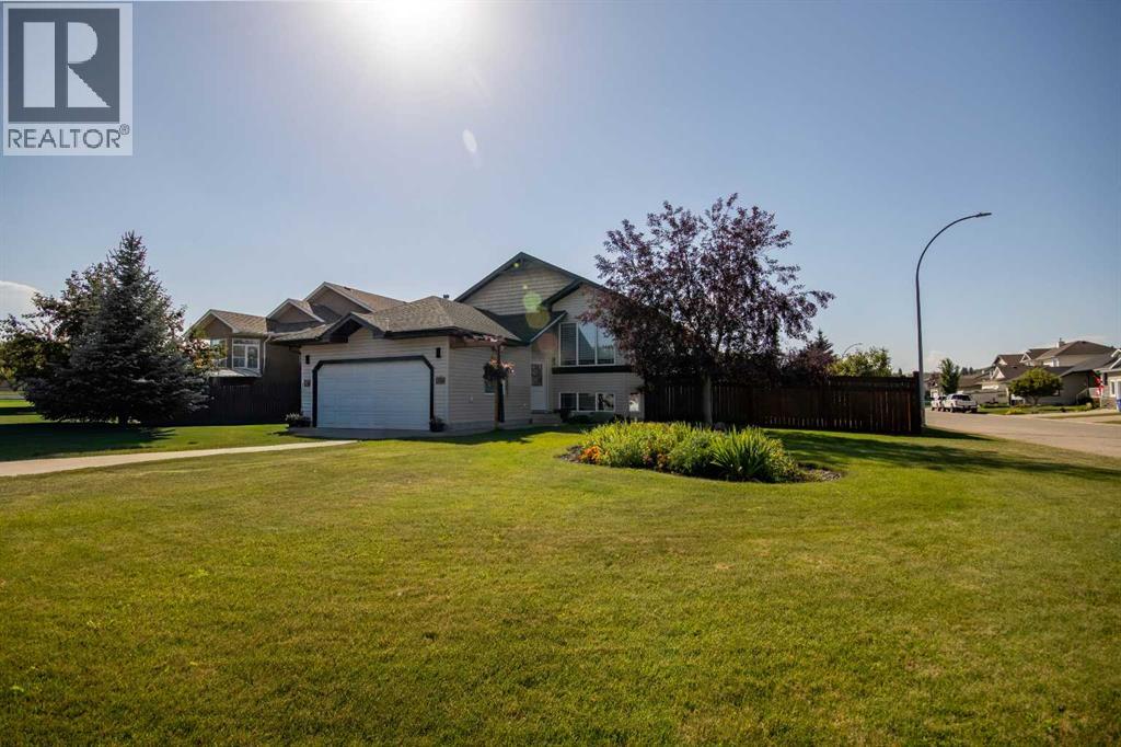 Beautifully renovated 2004 Laebon built bilevel with 1,216 sq. ft. plus a finished basement, and heated double attached garage. Pride of ownership shows with new flooring, lighting, fresh paint, quartz counters, Gemstone exterior lights & more. The bright, open layout offers a spacious primary with dual closets, plus two large bedrooms in the lower level with in-floor heat. Step outside to a beautiful, family-centered backyard with two decks, lower patio, hot tub, fire pit, raised flowerbeds & functional landscaping. Extras include central air, gas BBQ hookup, 8’x10’ shed, & water softener. Located in a quiet Sundre neighborhood close to schools, hospital, shopping, arts & endless recreation — just 1 hour to Calgary or Red Deer. (id:53676)